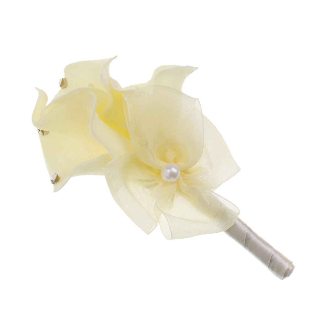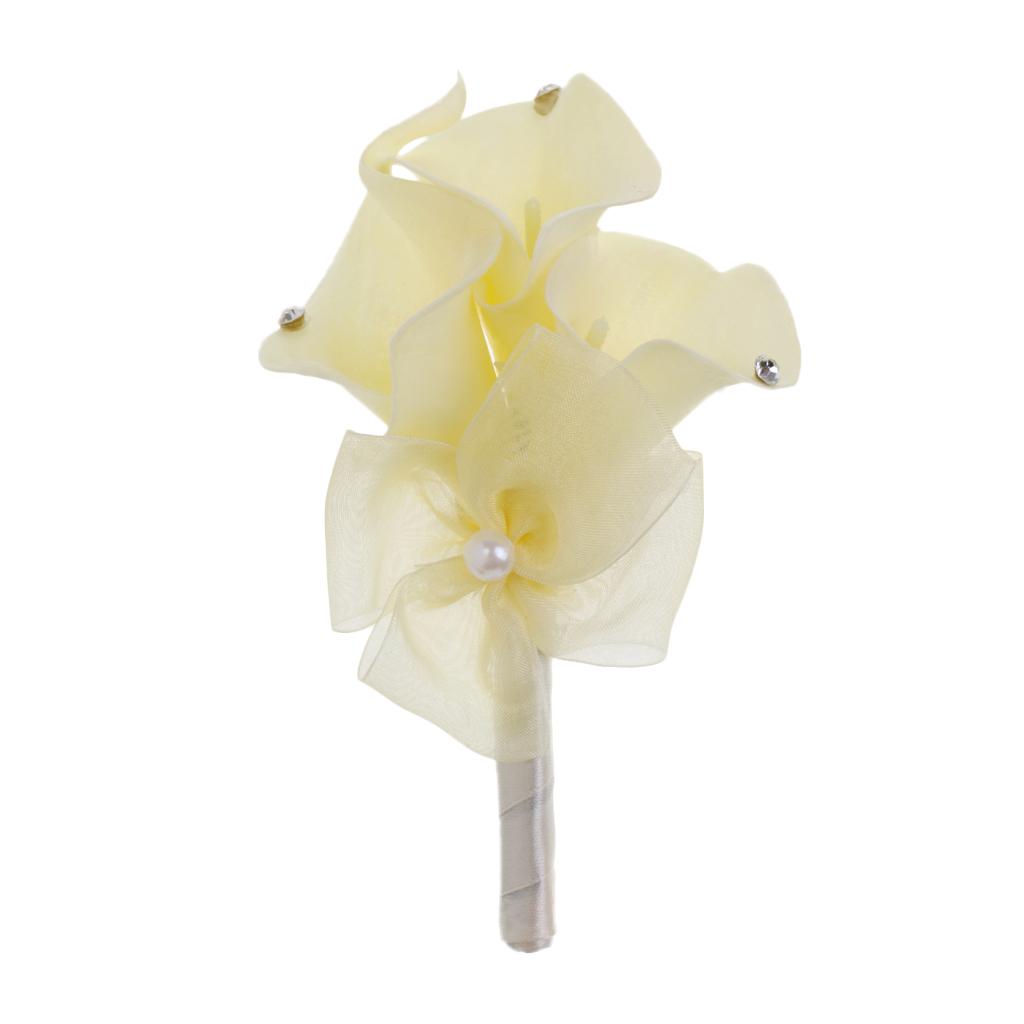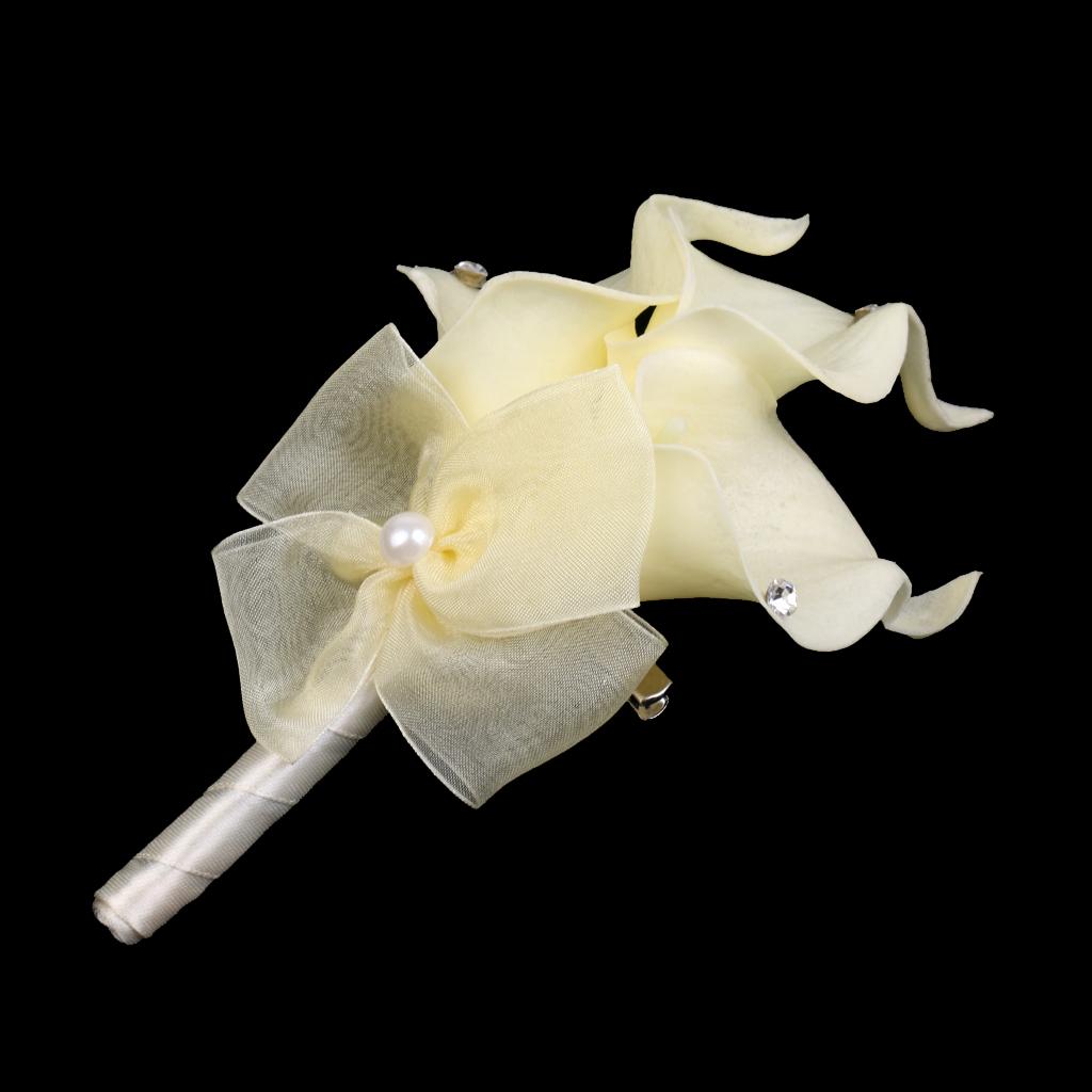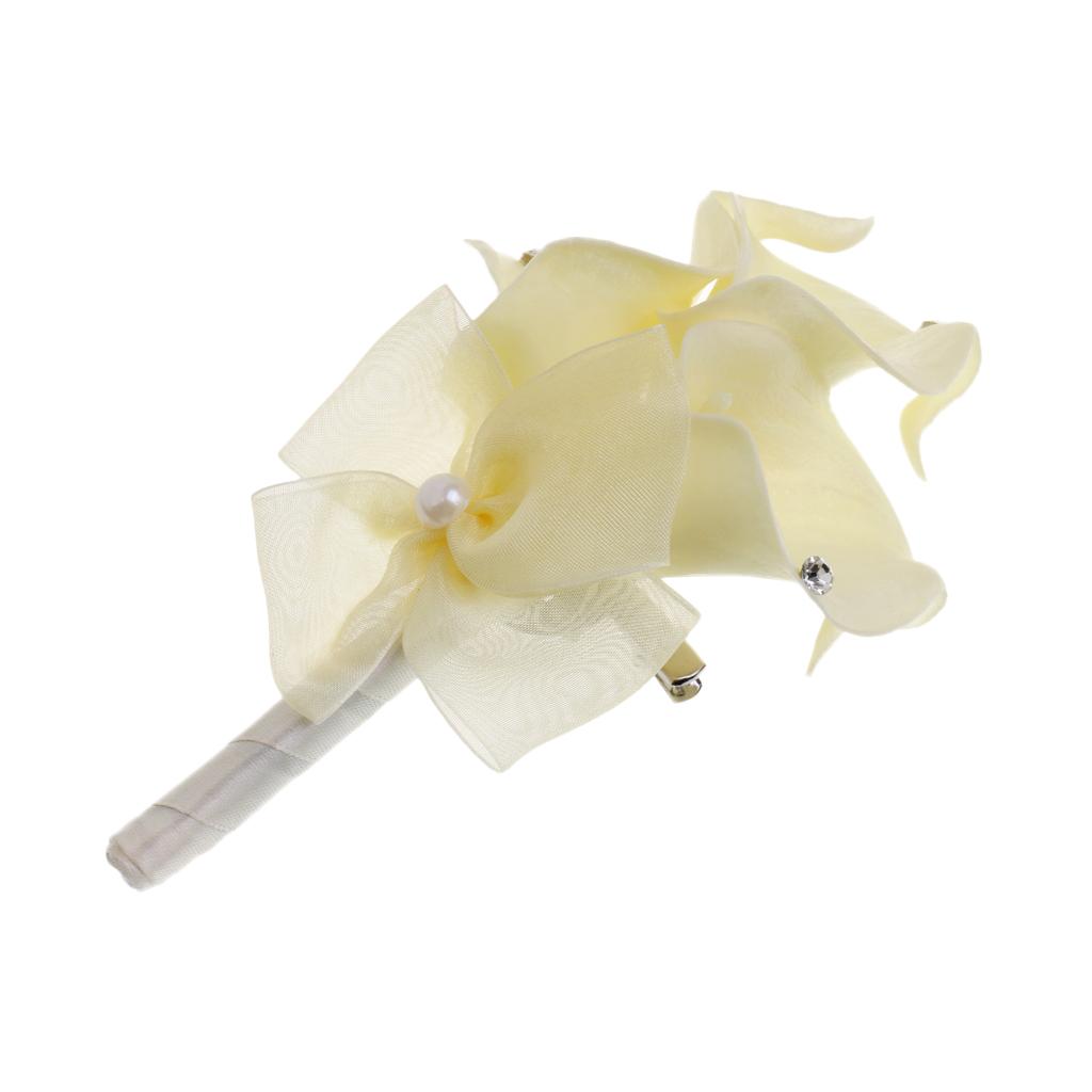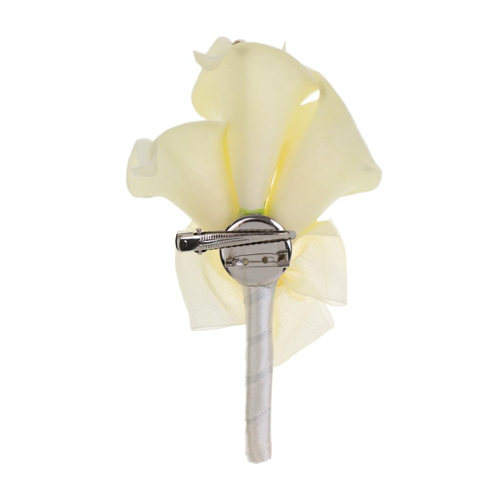 Wedding Party Calla Lily Artificial Flower Boutonniere Corsage Brooch Beige