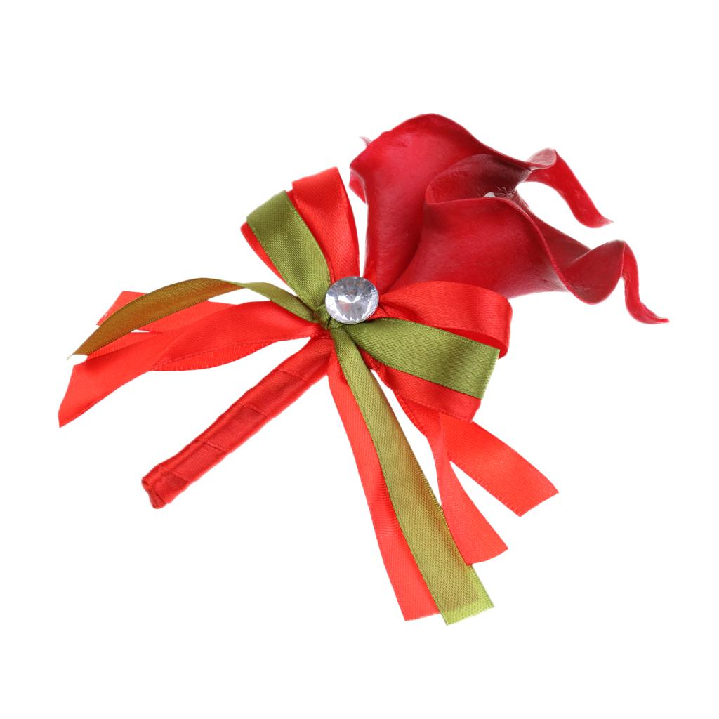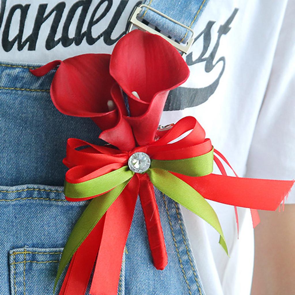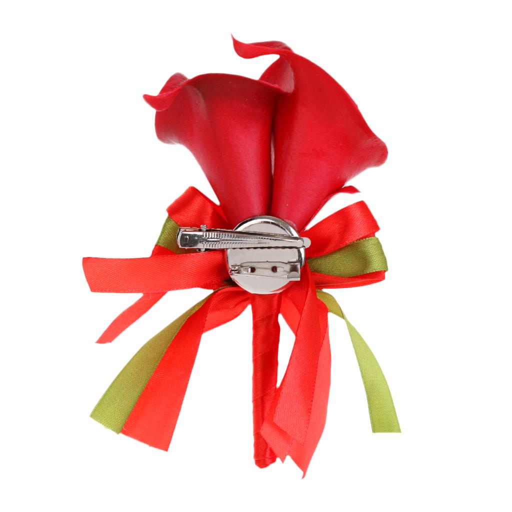Wedding Party Calla Lily Artificial Flower Boutonniere Corsage Brooch Red