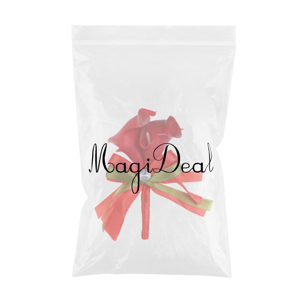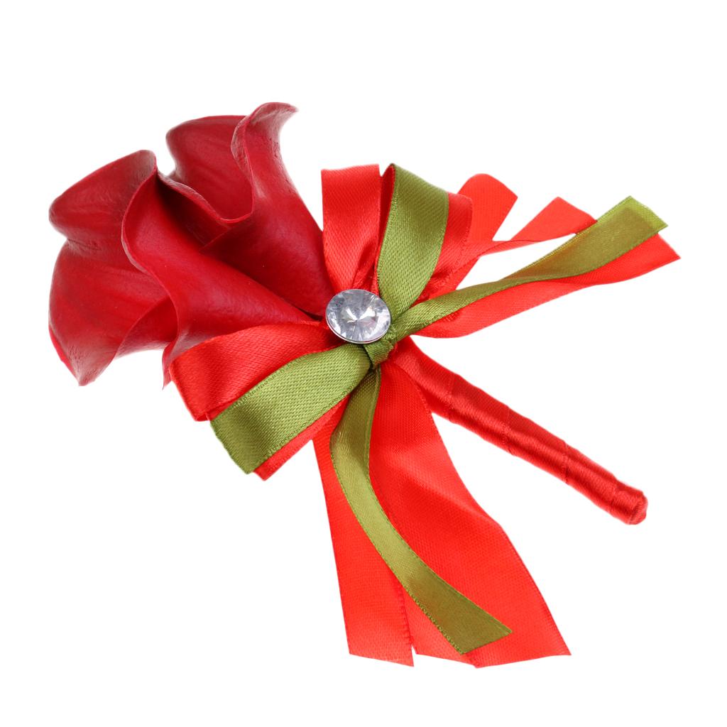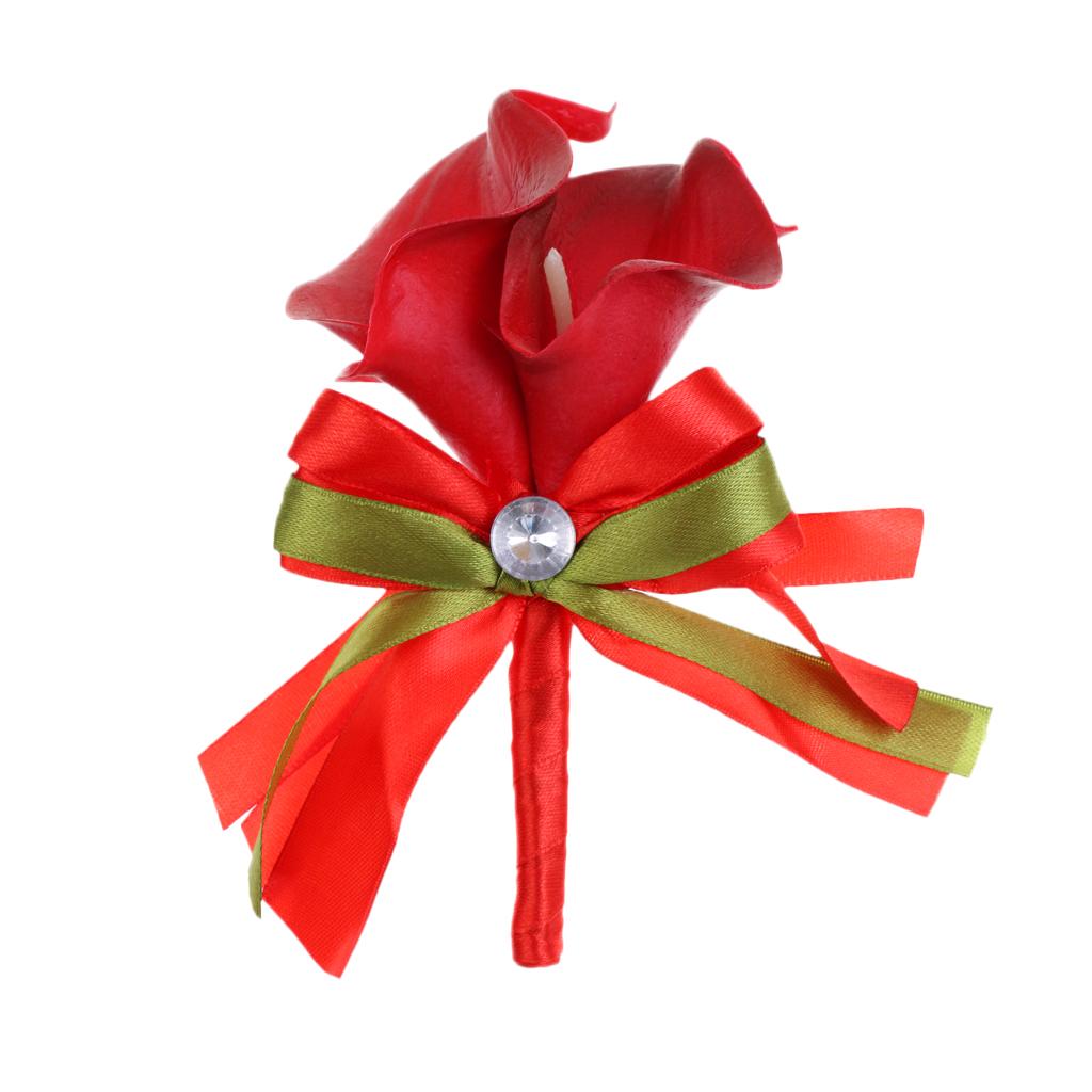Wedding Party Calla Lily Artificial Flower Boutonniere Corsage Brooch Red