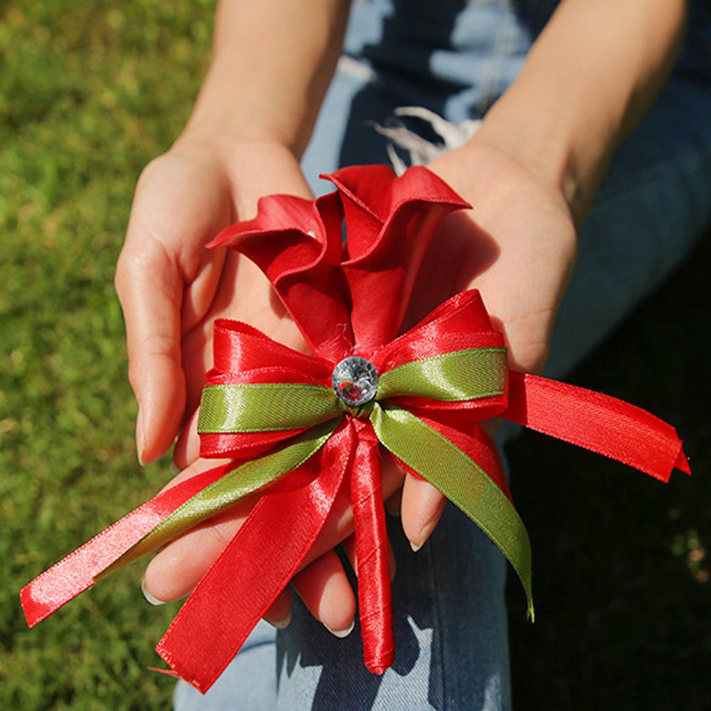 With satin ribbon, faux pearl or crystal rhinestone decoration.