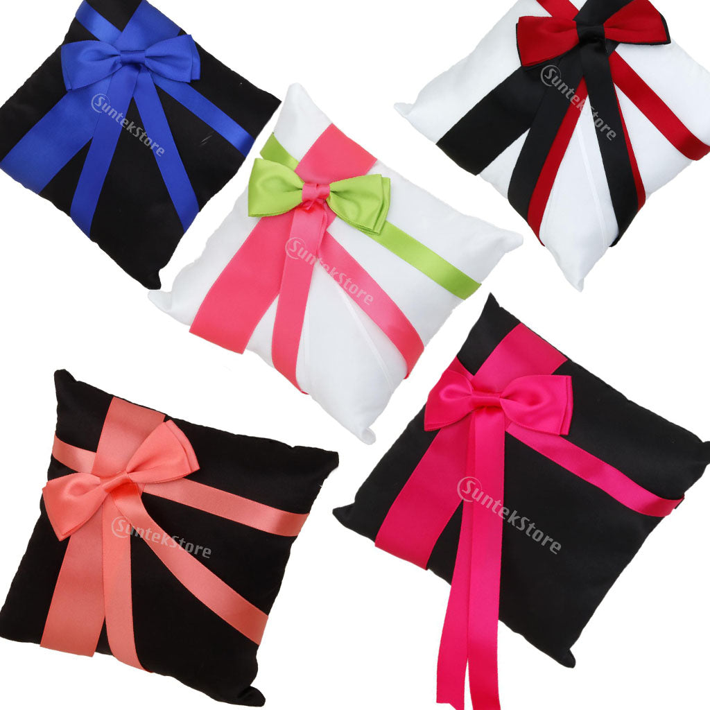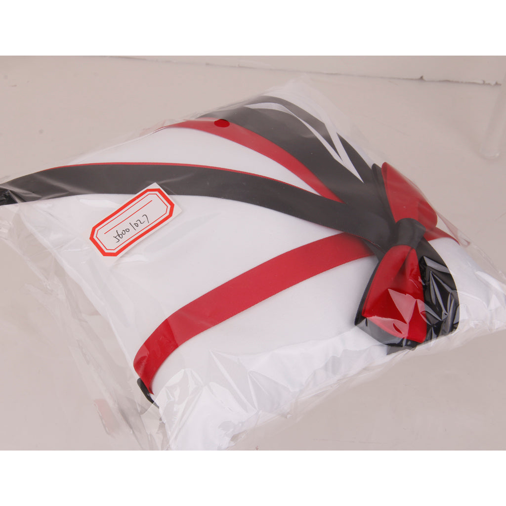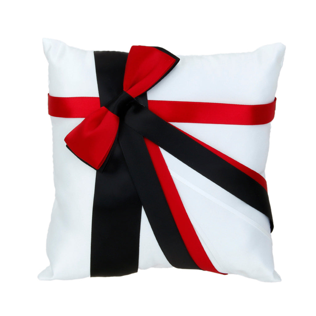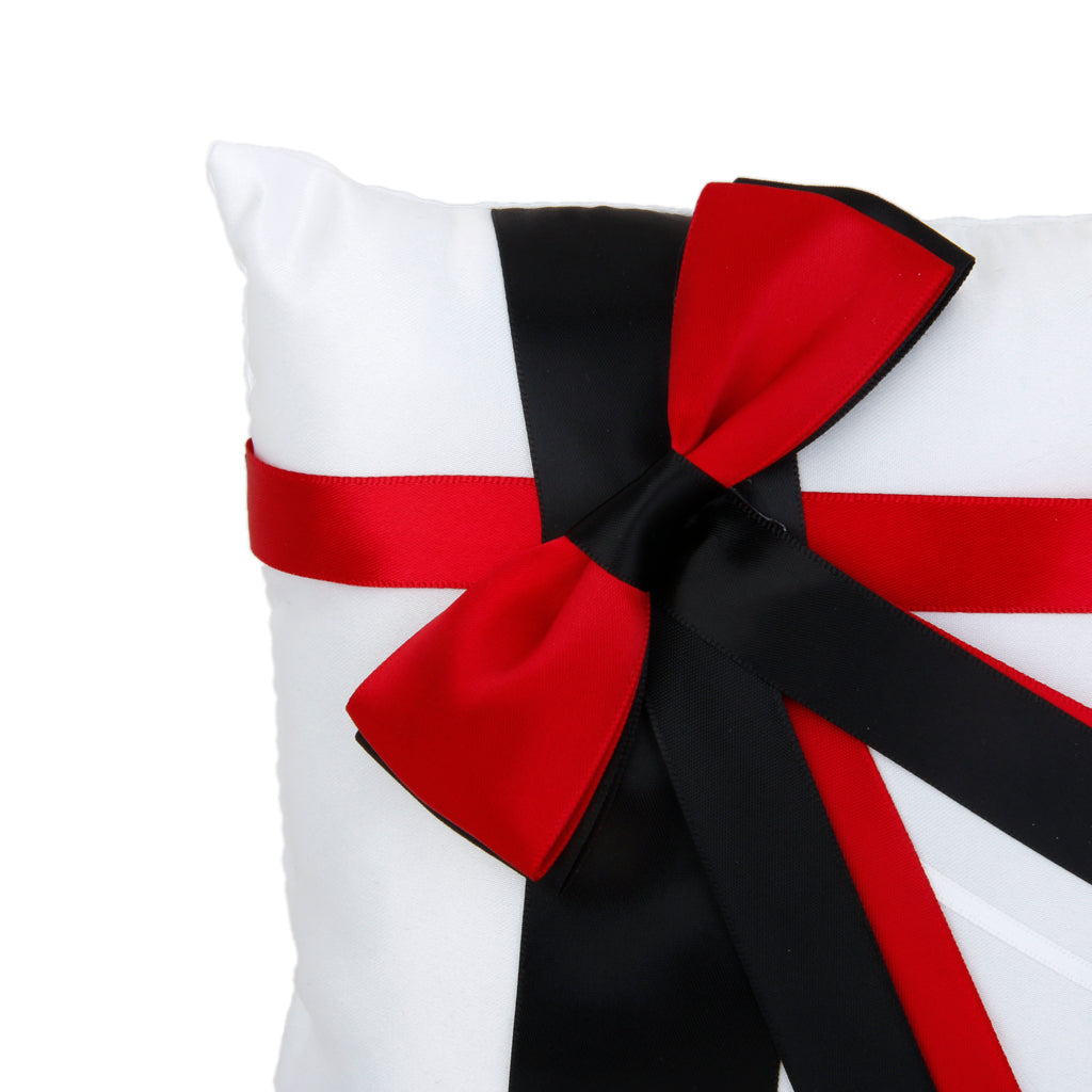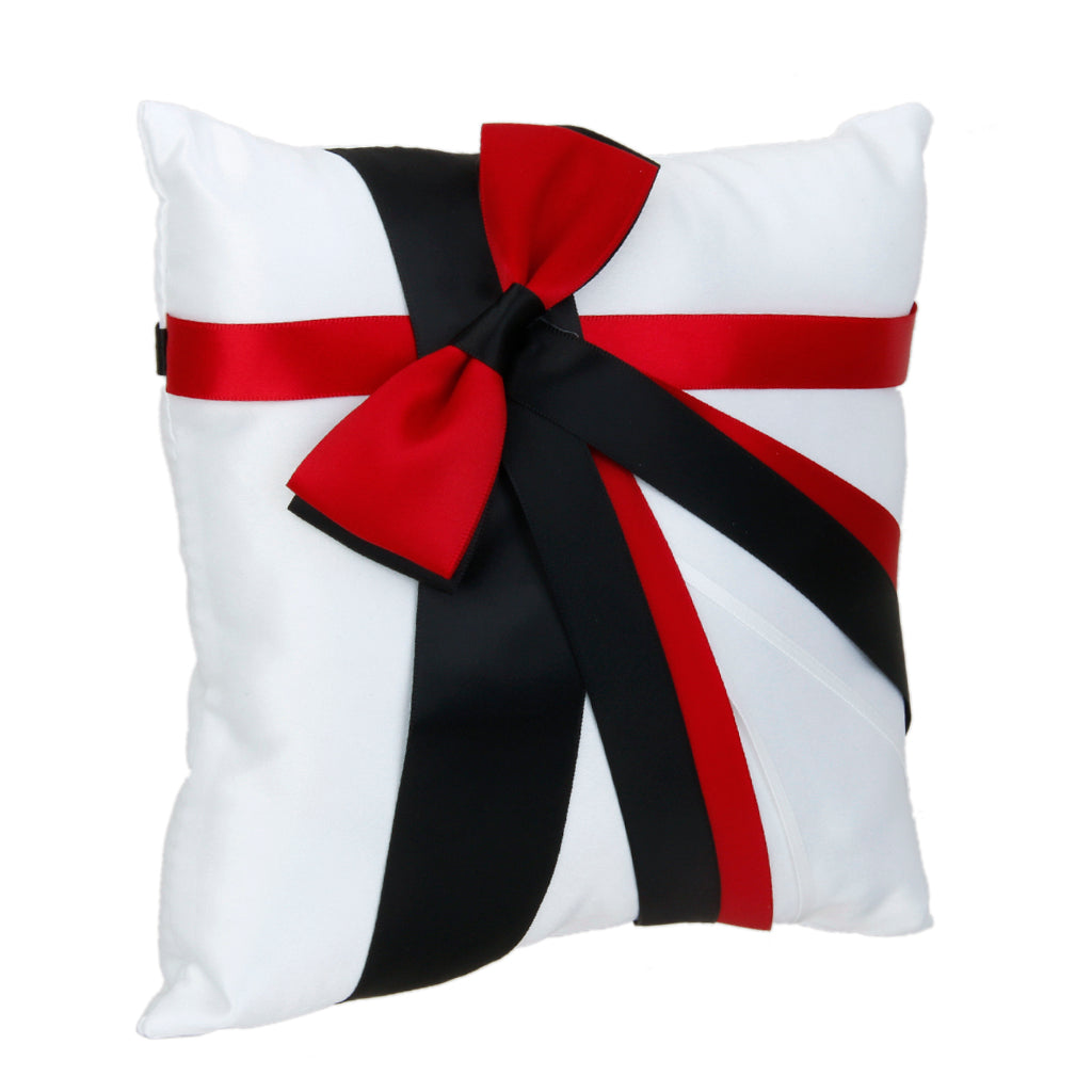 Wedding Ring Pillow Bearer Cushion with Black Red Ribbon 20cmx20cm White