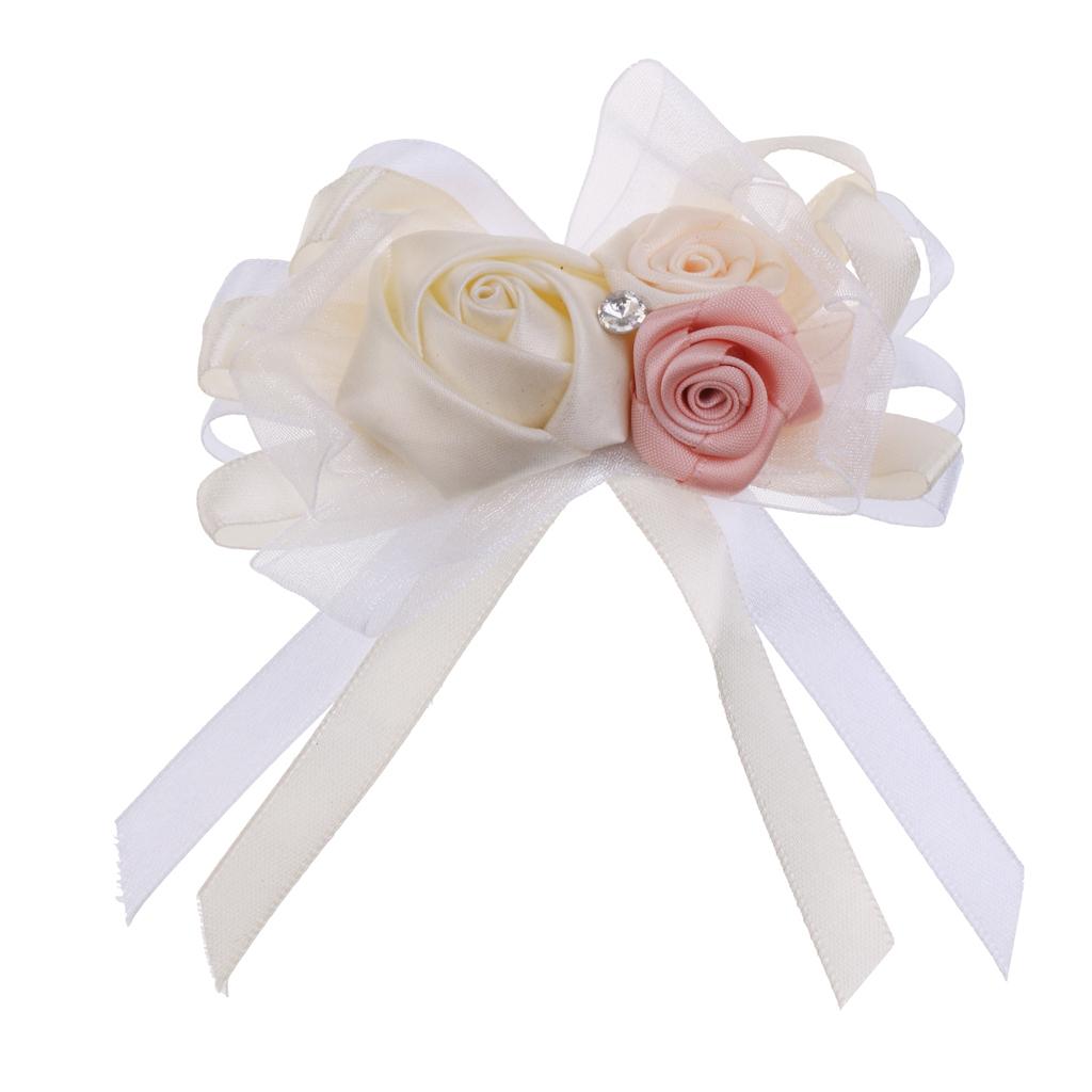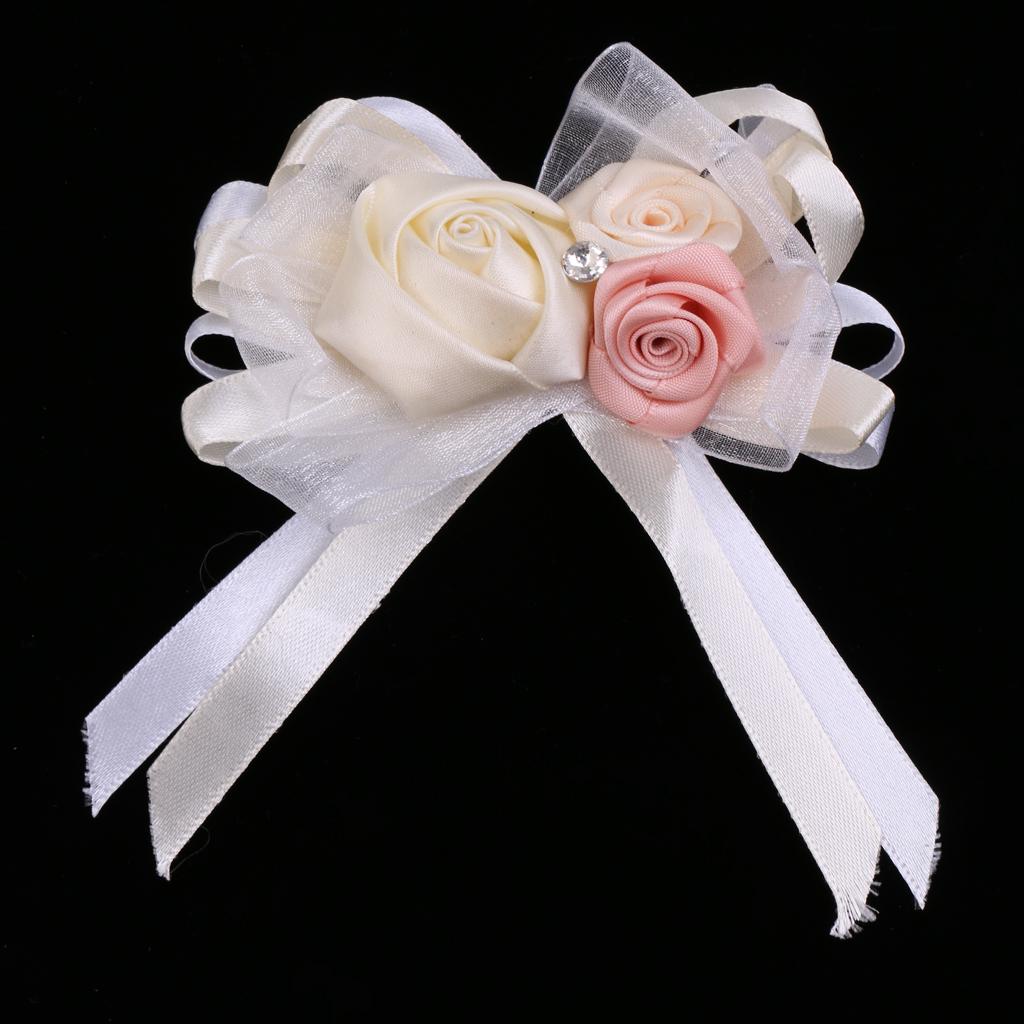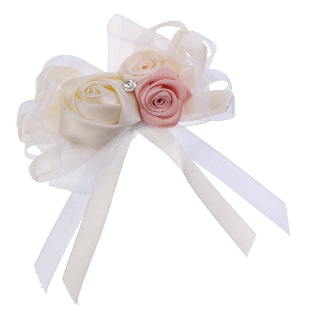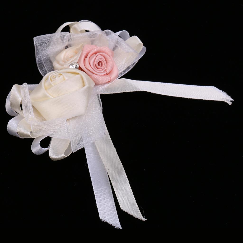 Silk boutonniere corsage with rose rhinestone decoration for romatic wedding ceremony and prom.