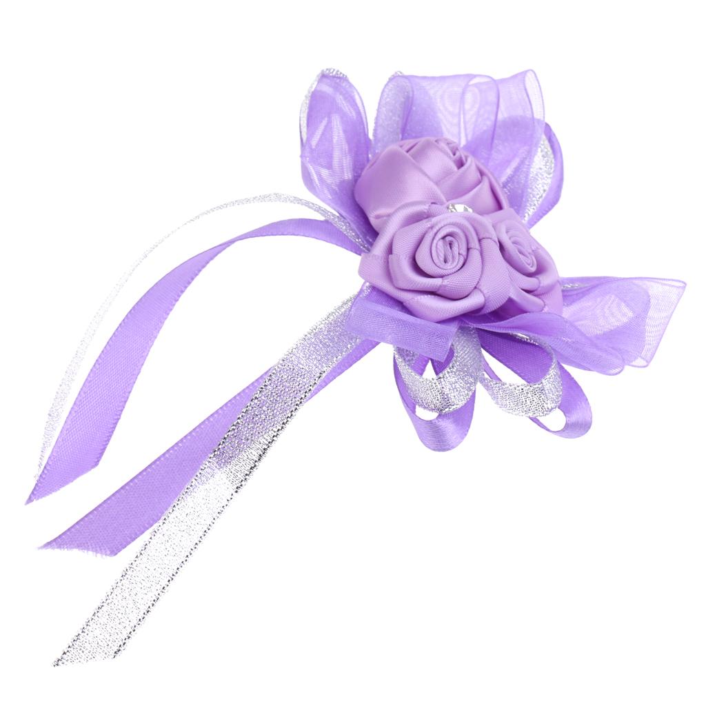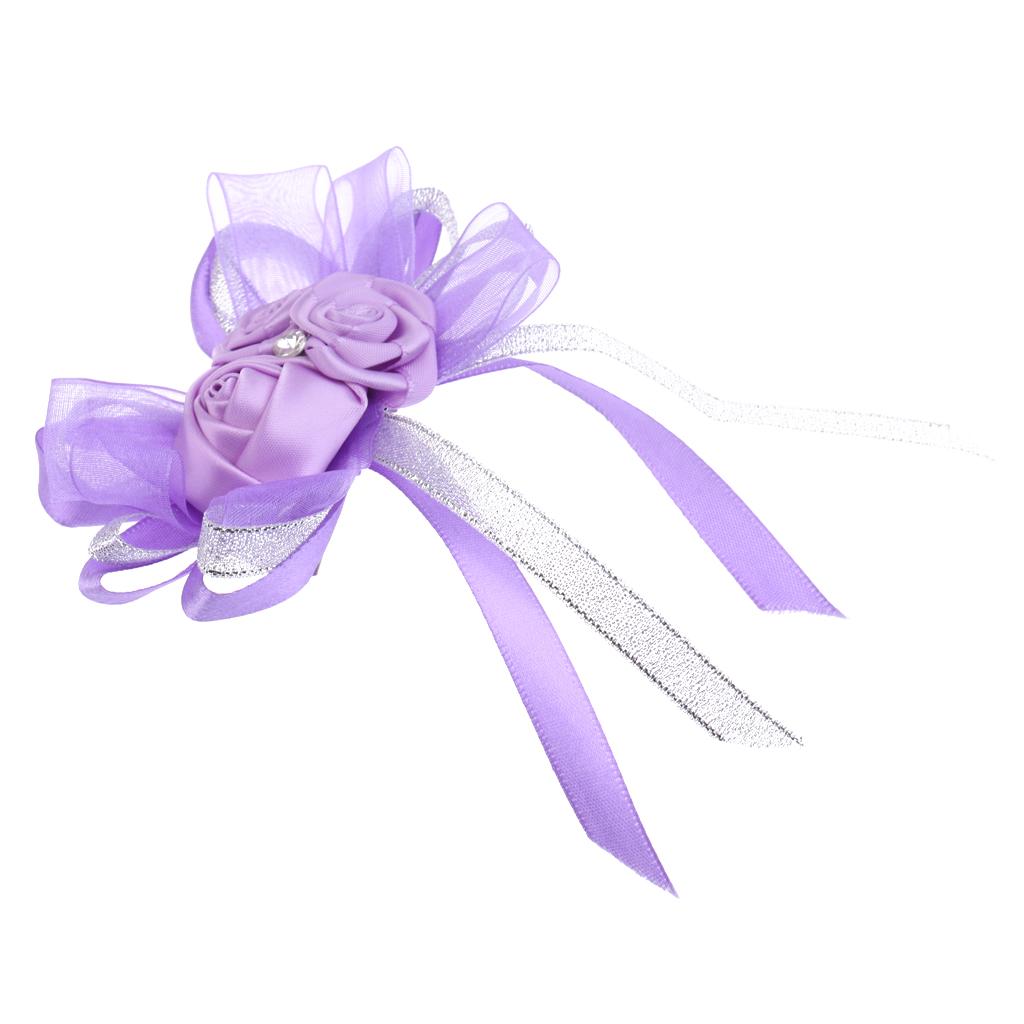 Wedding Rose Rhinestone Flower Boutonniere Broach Bride Corsage Light Purple