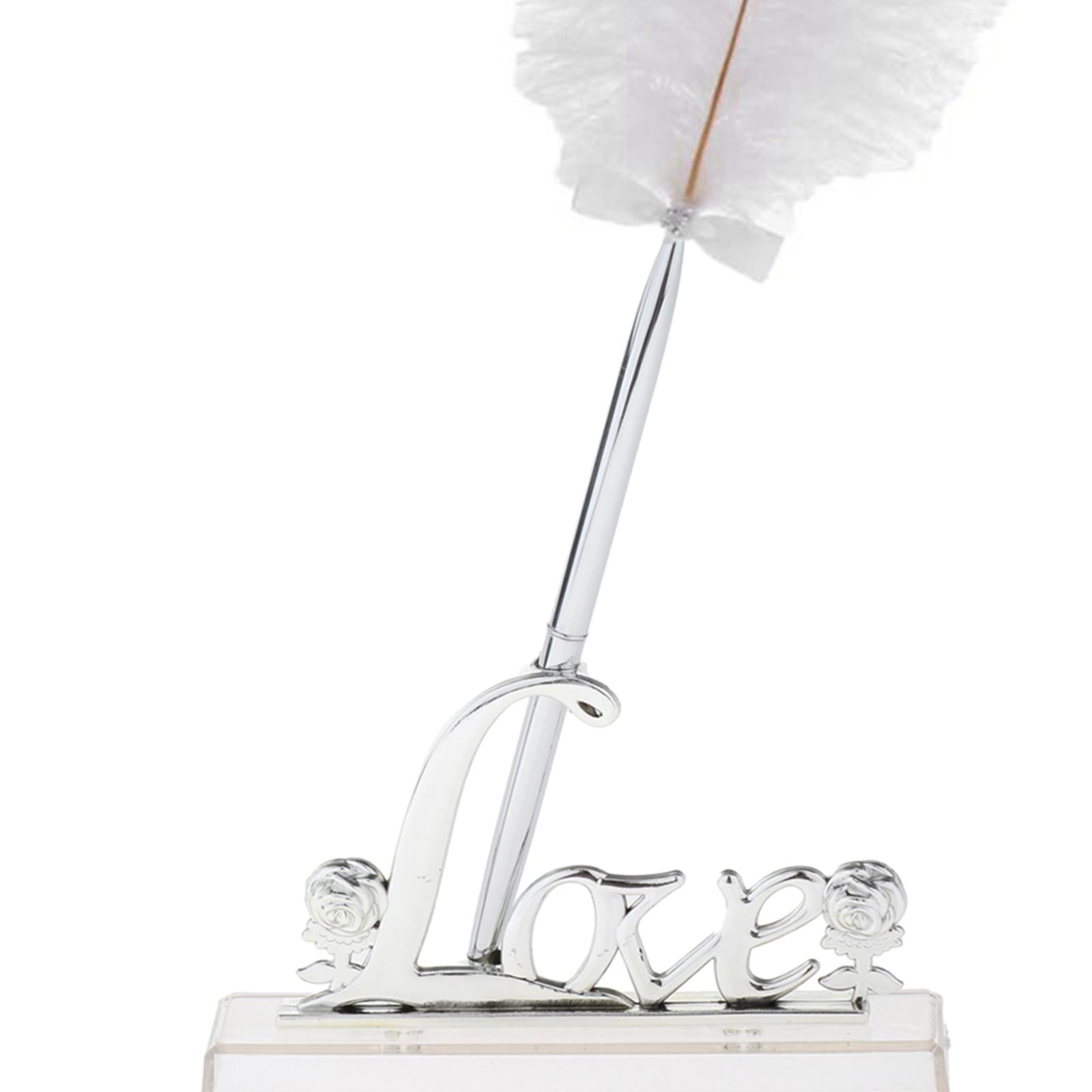 Silver & White Wedding Signing Pen and Holder for Guest Signature