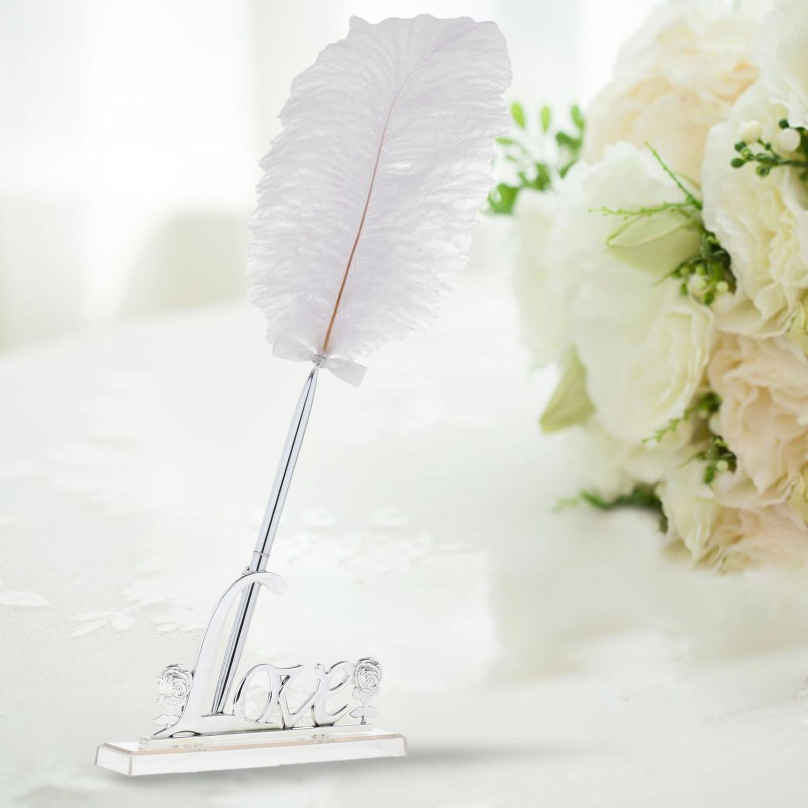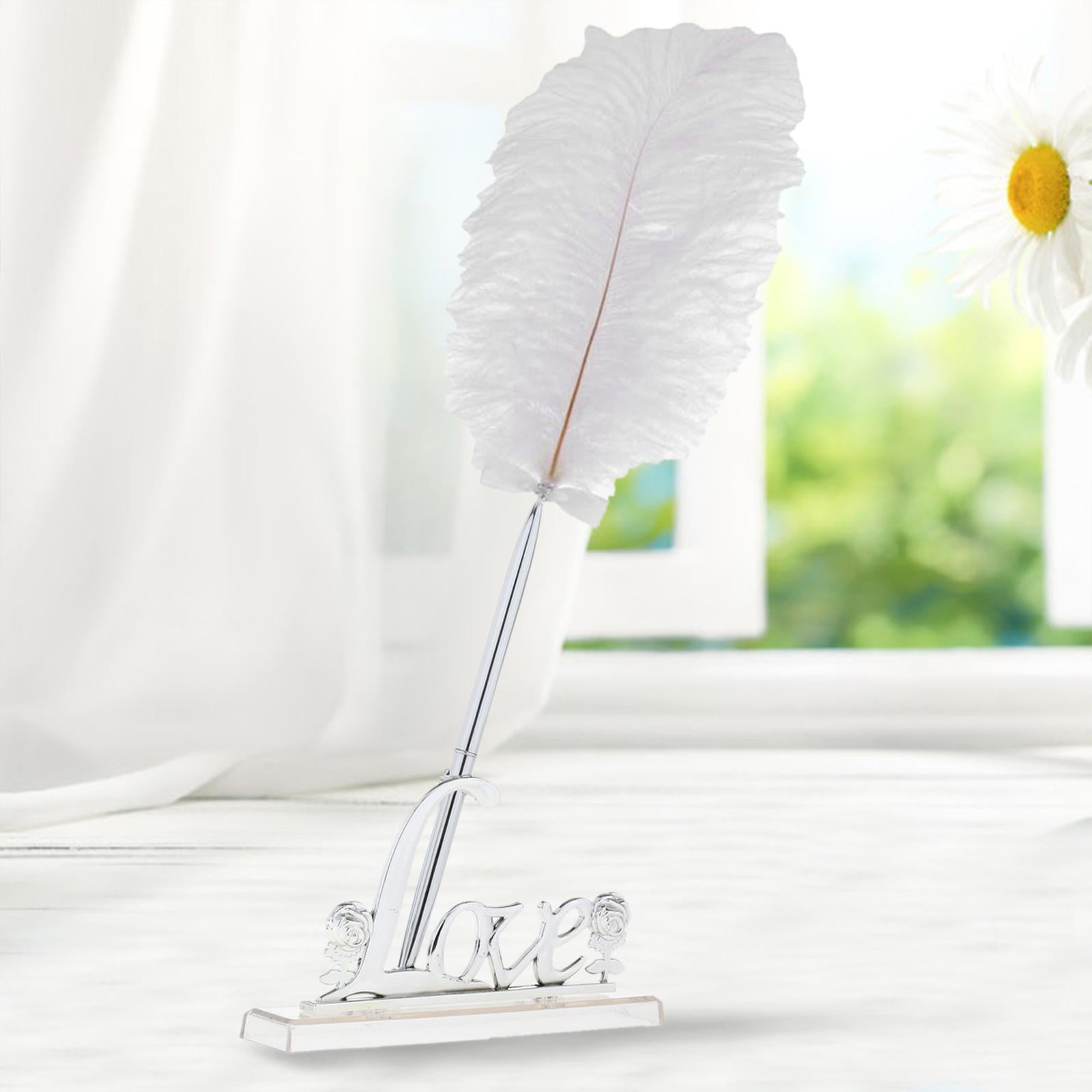 Unique design, with white ostrich feather on the pen, delicate and elegant