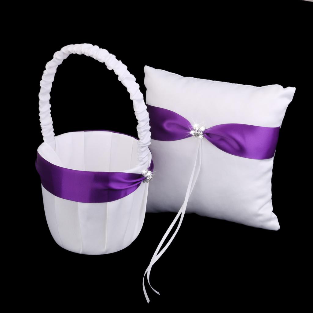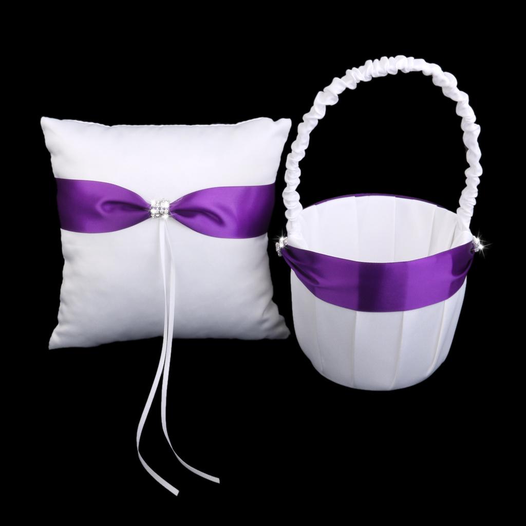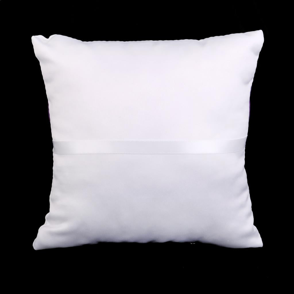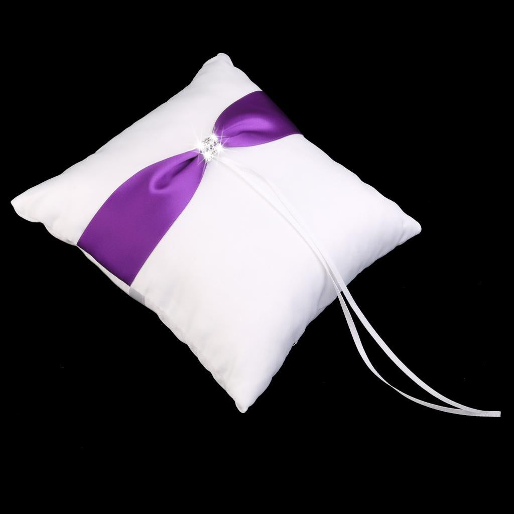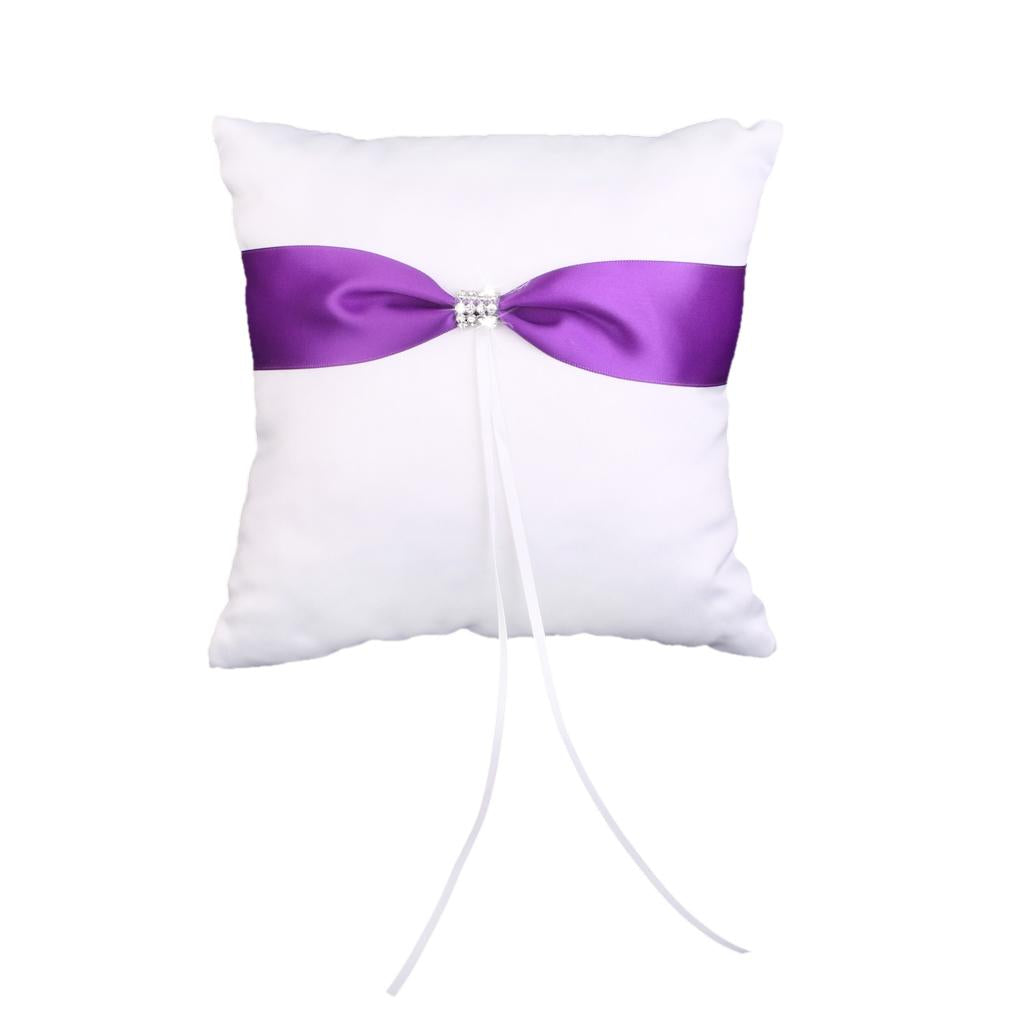 Wedding White Satin Ring Bearer Pillow Purple Ribbon & Diamante Decor