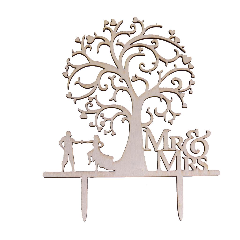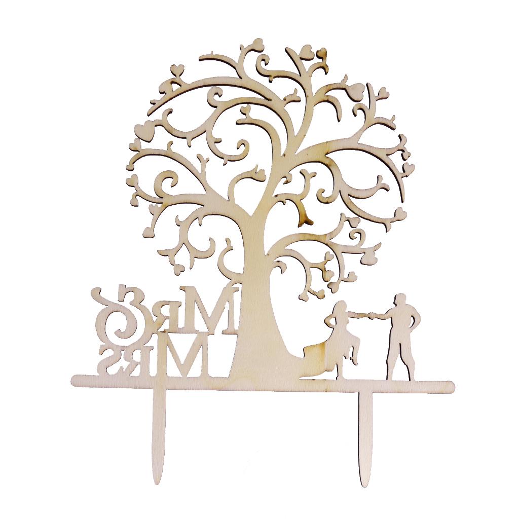 Wedding Wood Cake Topper Tree Couple Bride and Groom Mr & Mrs Wedding Favors