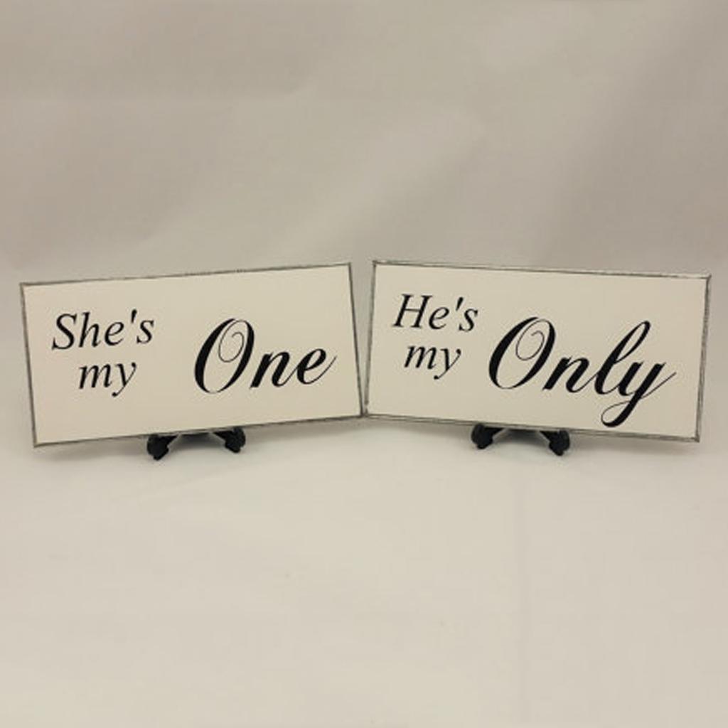 • Wedding Signs, Plaque,She's My One He's My Only, Wedding Decor, Engagement Signs, Photo Props
