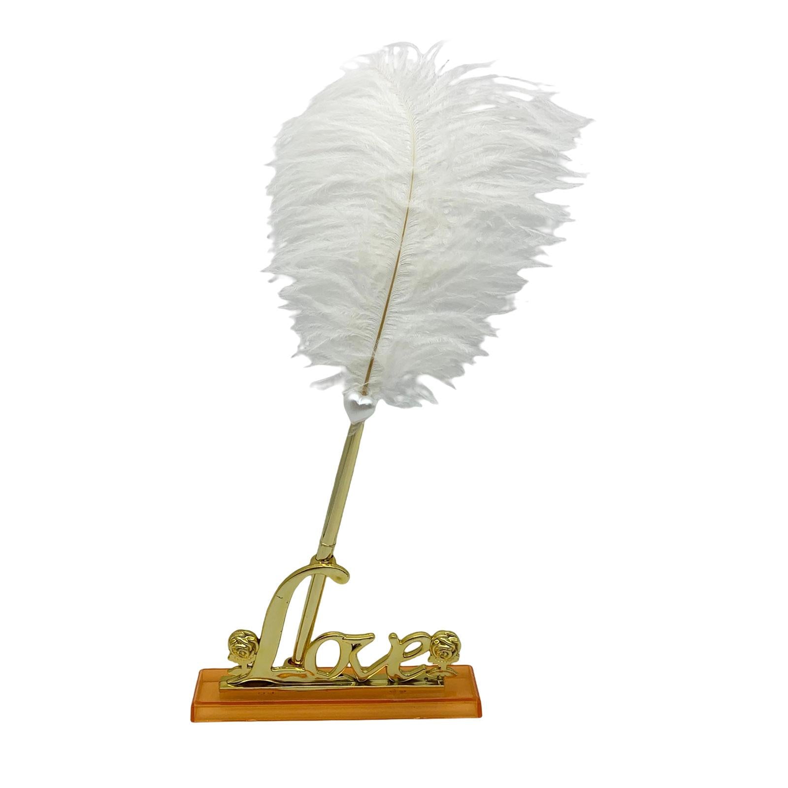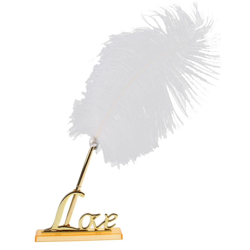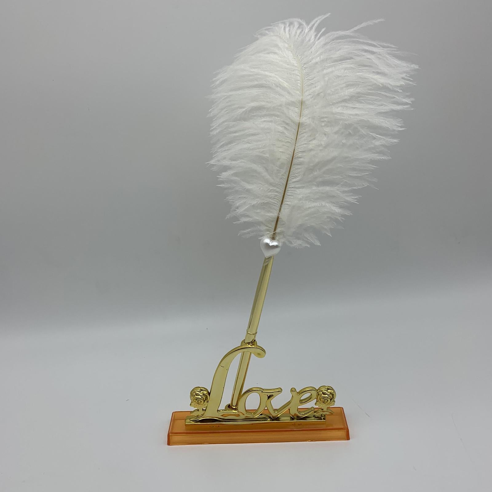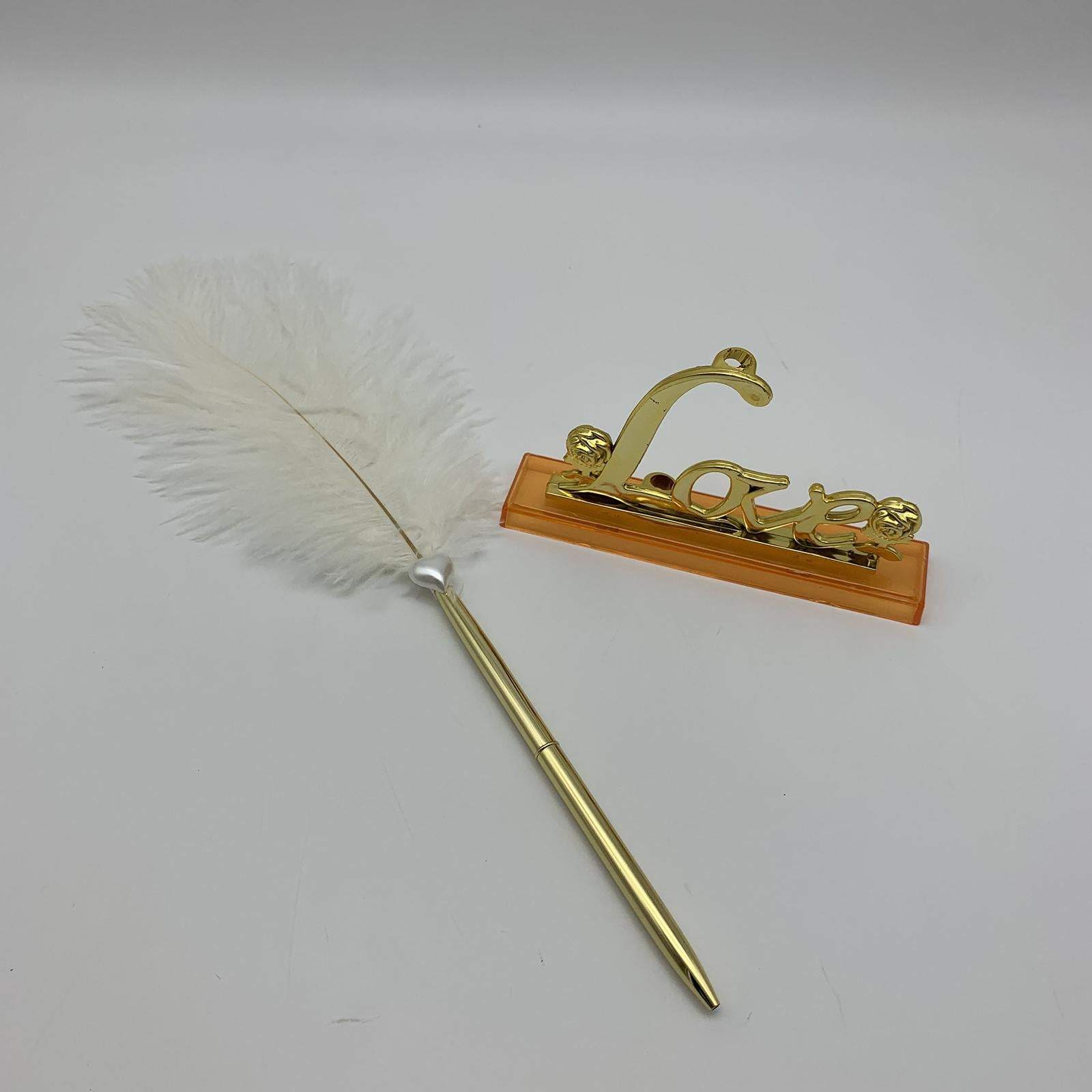 White Feather Signing Pen with Gold Plated Metal Love Holder Wedding Pen Set