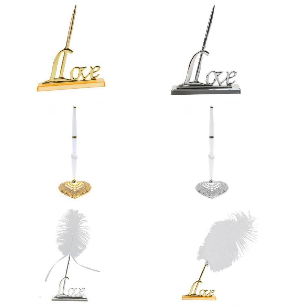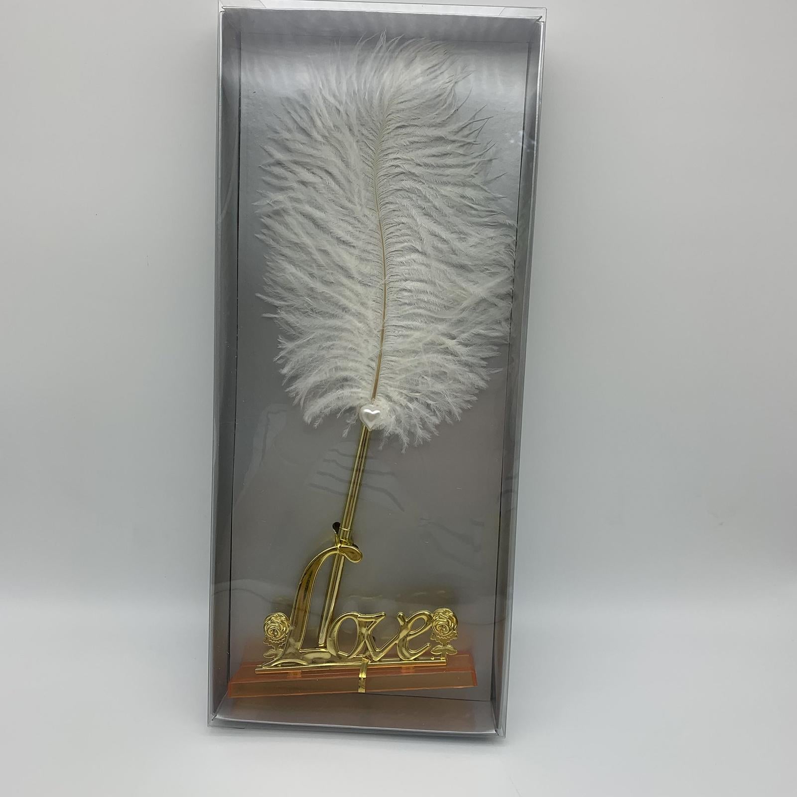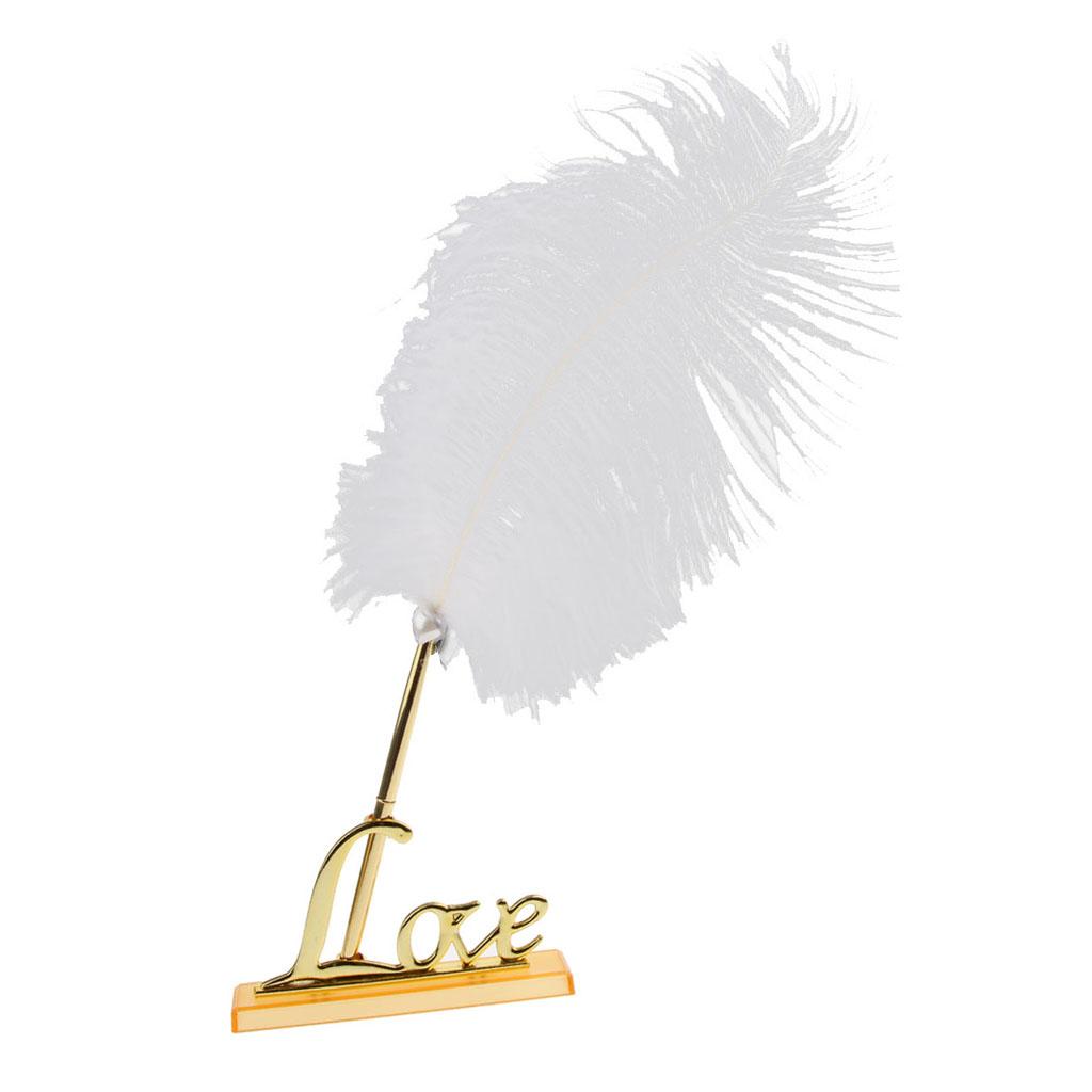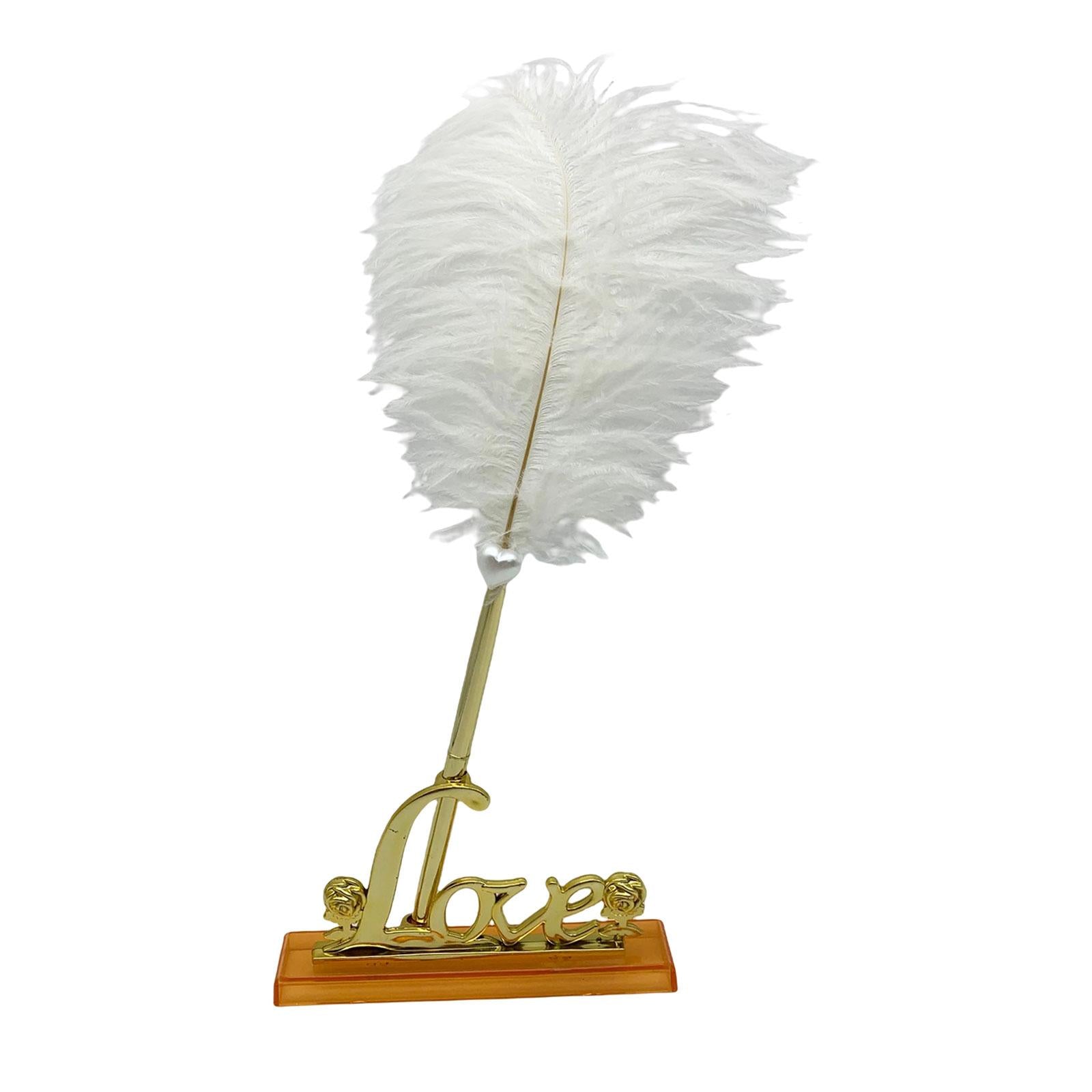 White Feather Signing Pen with Gold Plated Metal Love Holder Wedding Pen Set