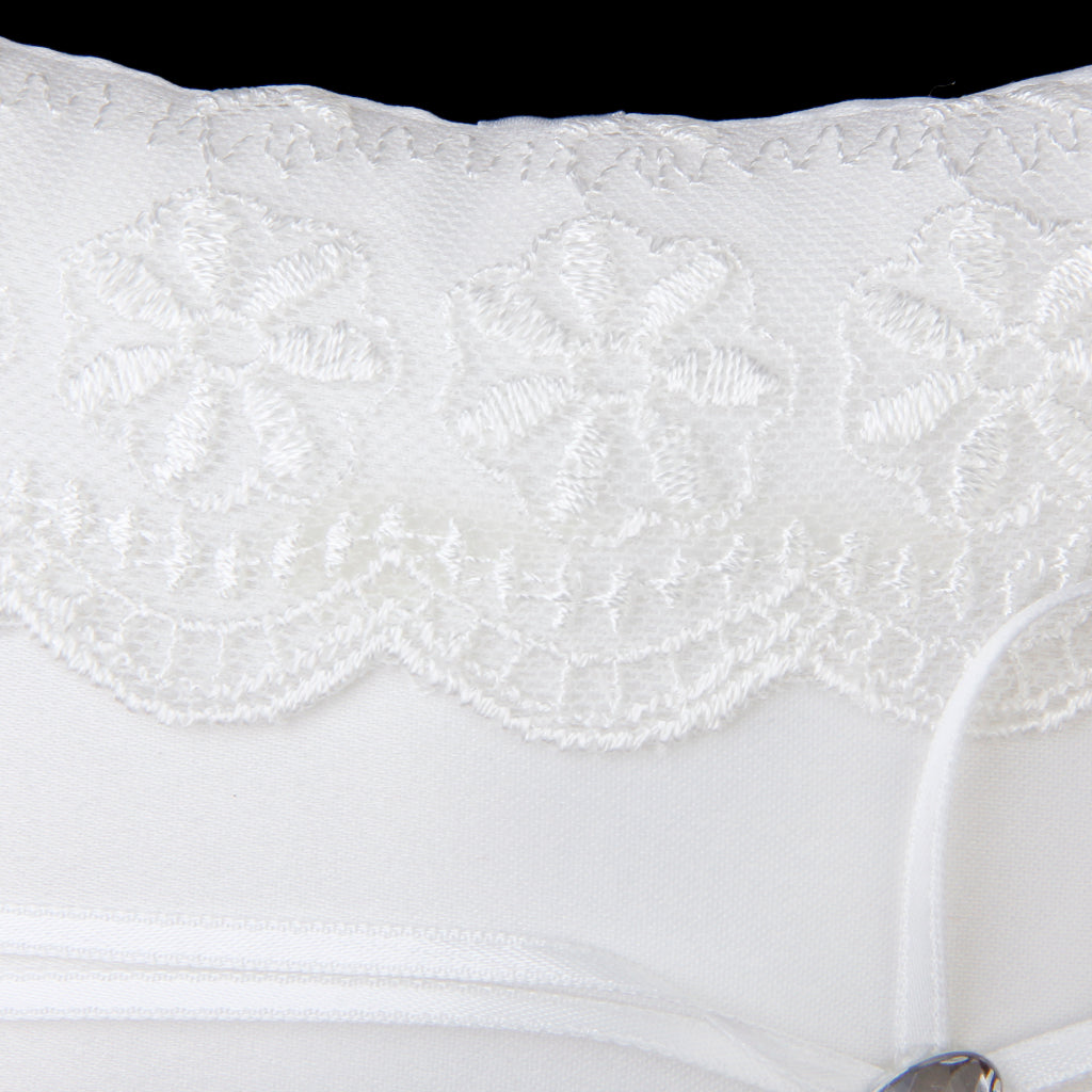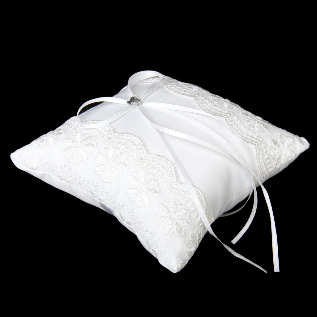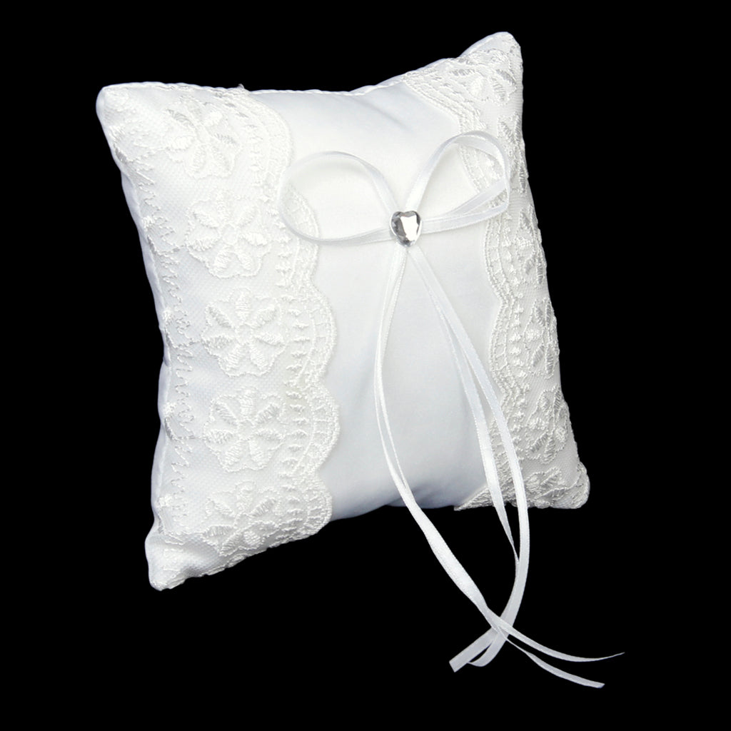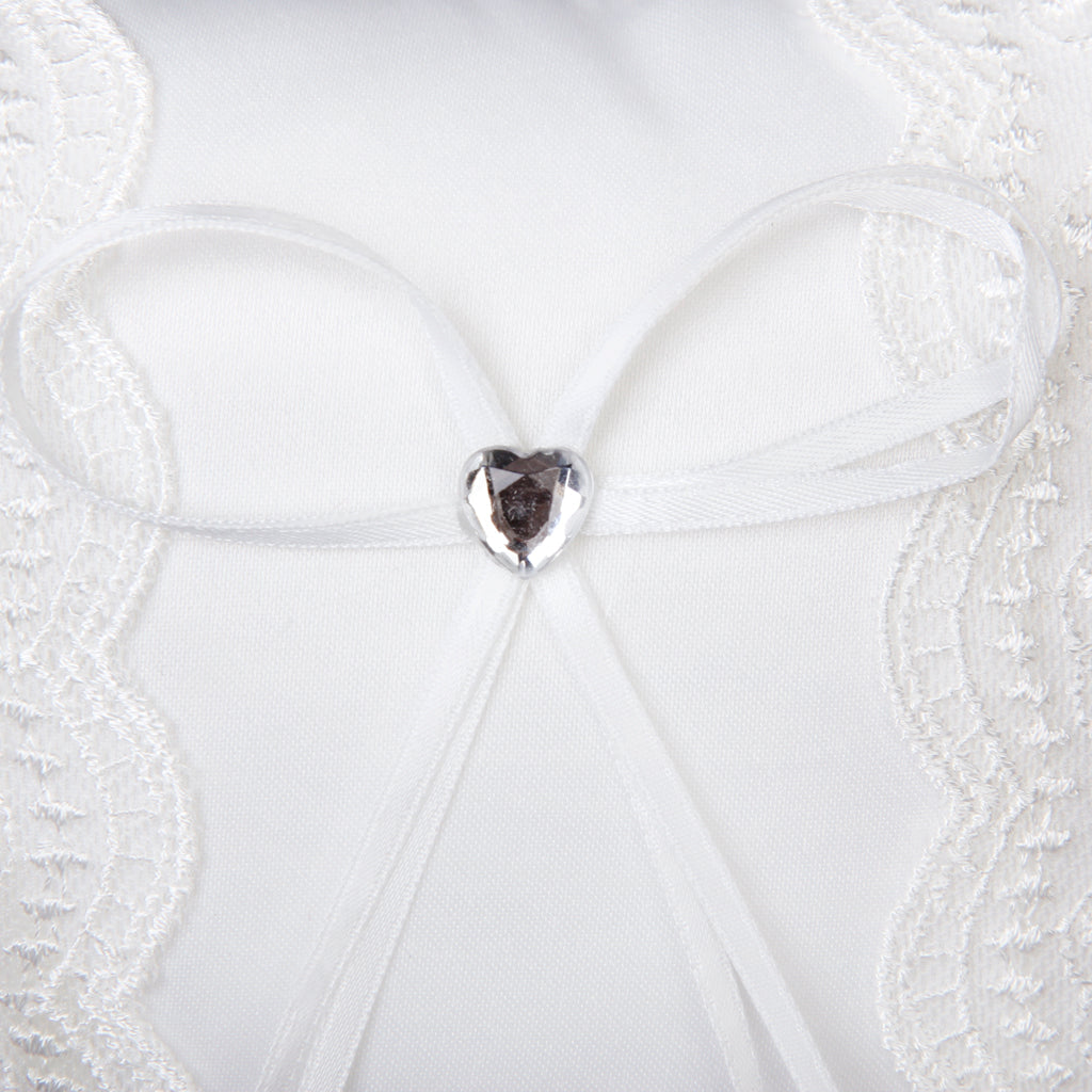 White Lace Embellished Wedding Ring Pillow Cushion 15cmx15cm