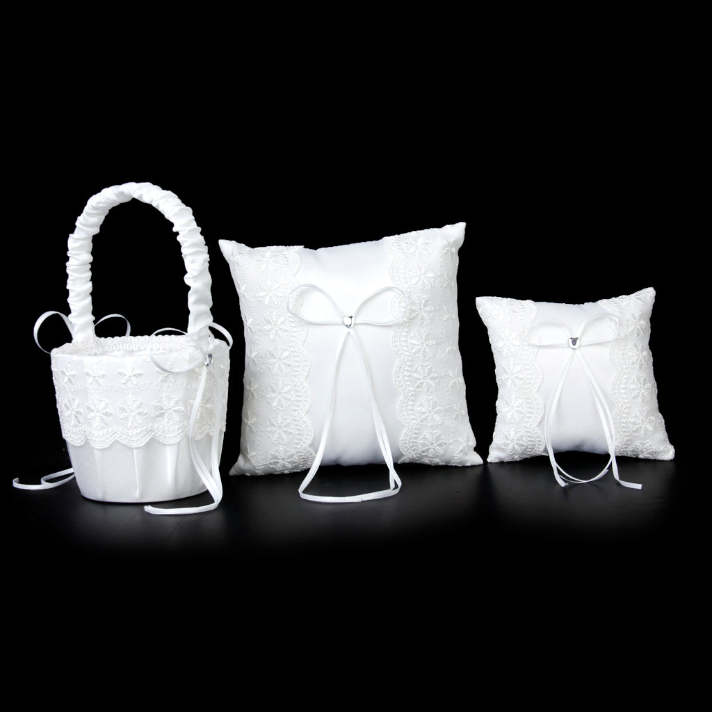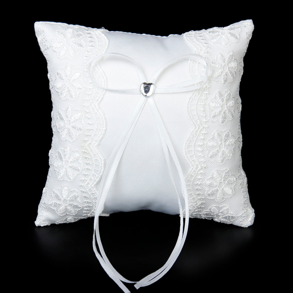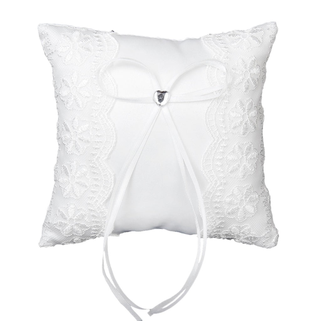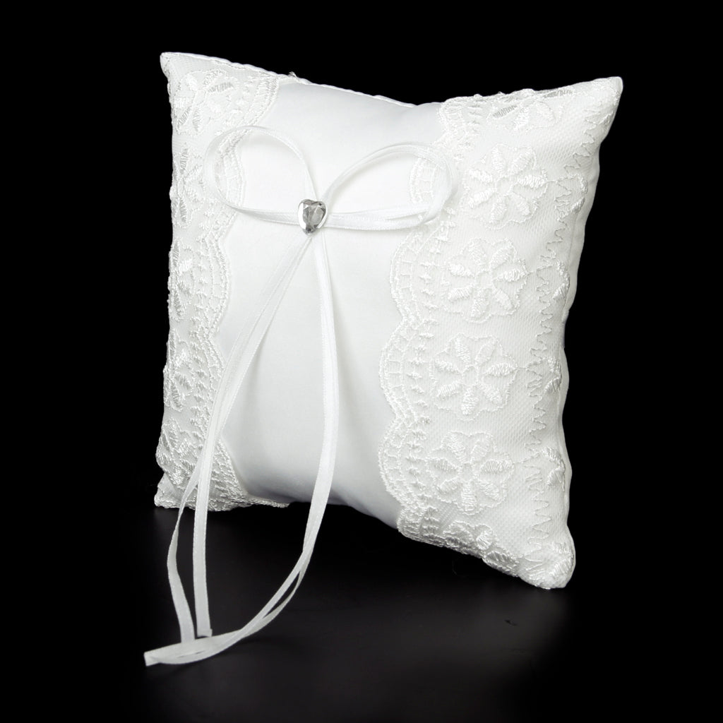 White Lace Embellished Wedding Ring Pillow Cushion 15cmx15cm
