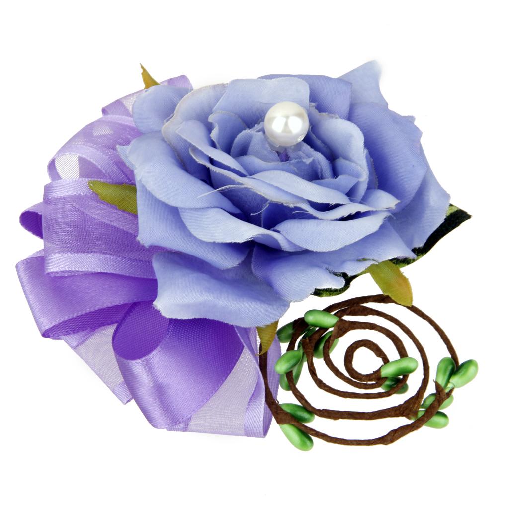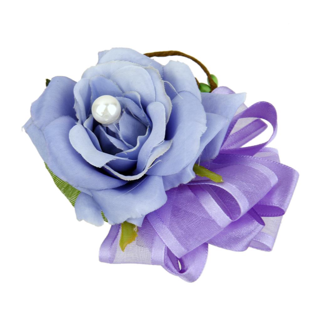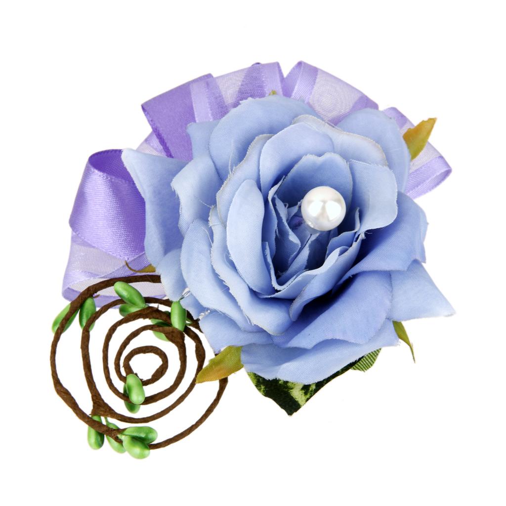 Women Faux Pearl Polyester Boutonniere Corsage Brooch Pin For Wedding Formal Party Supplies Blue