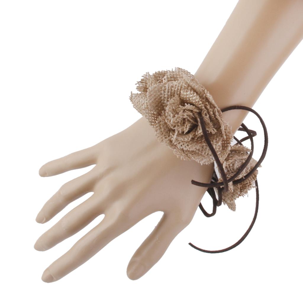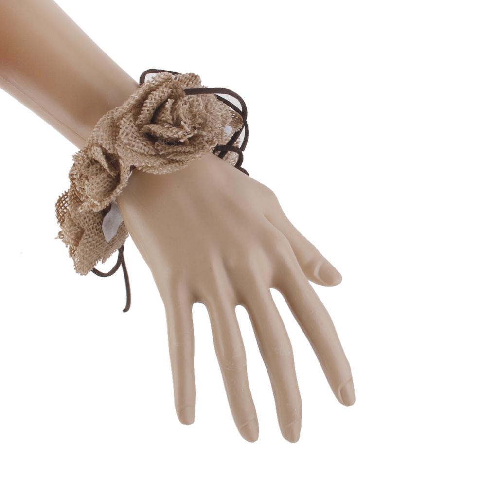 Wrist Corsage Bracelet Burlap Rose Flower Rustic Wedding Party Bridal