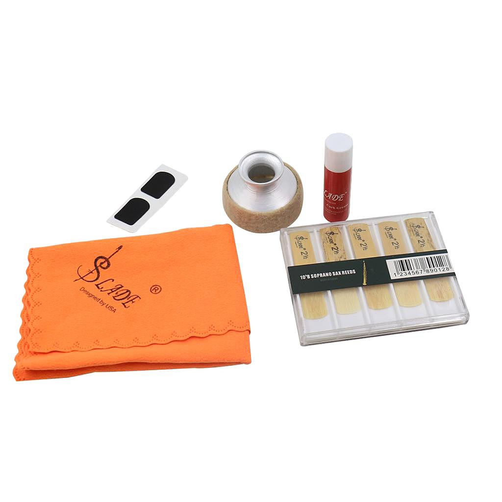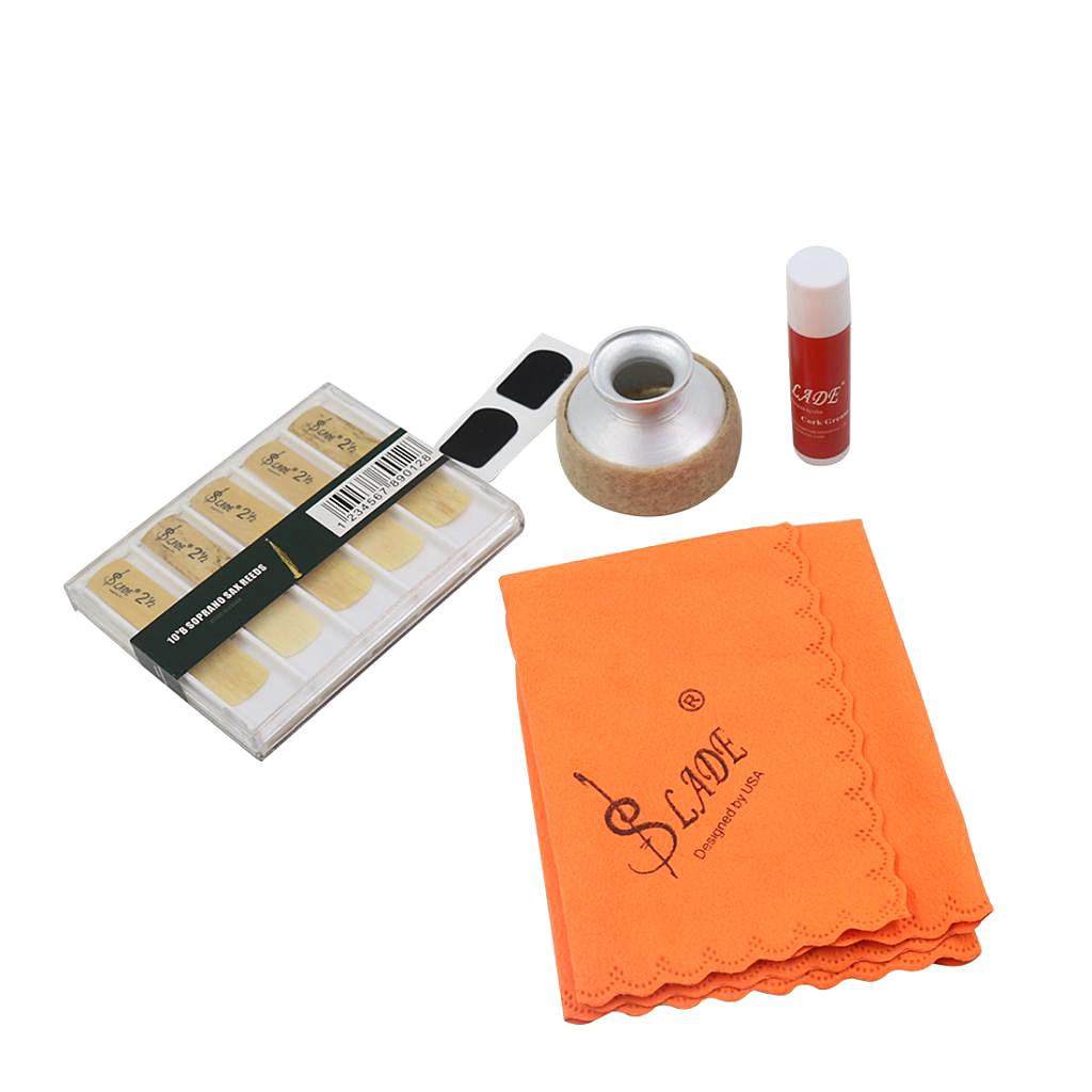 5 in 1 Soprano Saxophone Parts Reeds+Mute+Tooth Pad+Cork Grease+Cleaning Cloth.