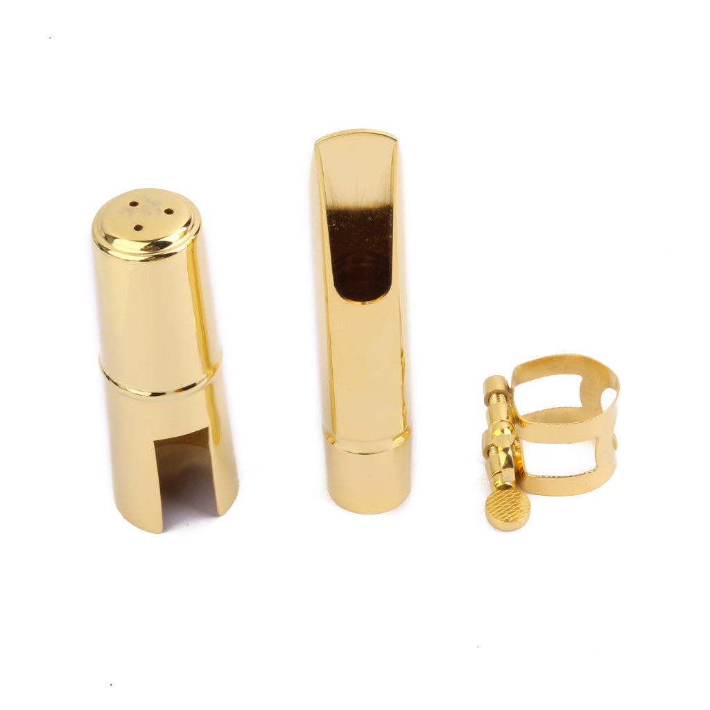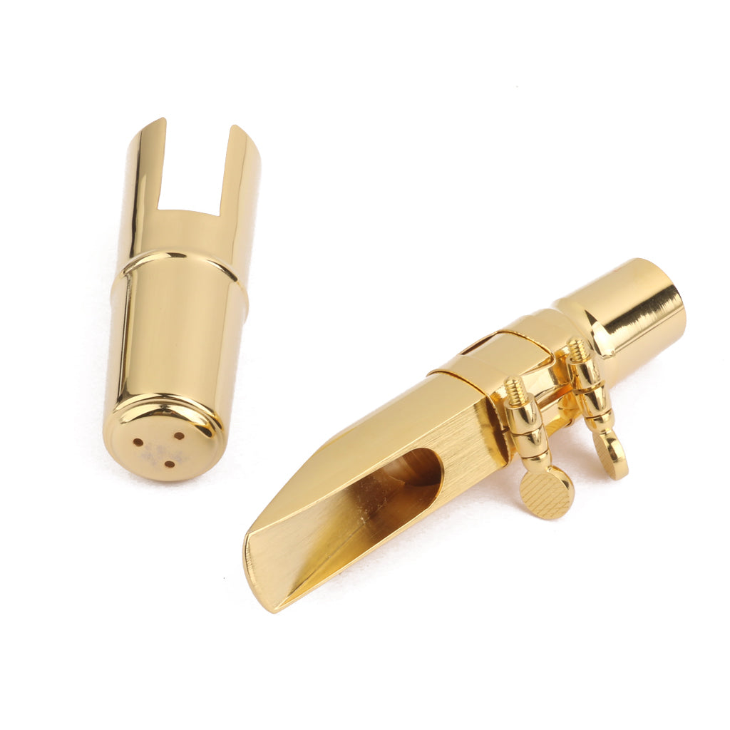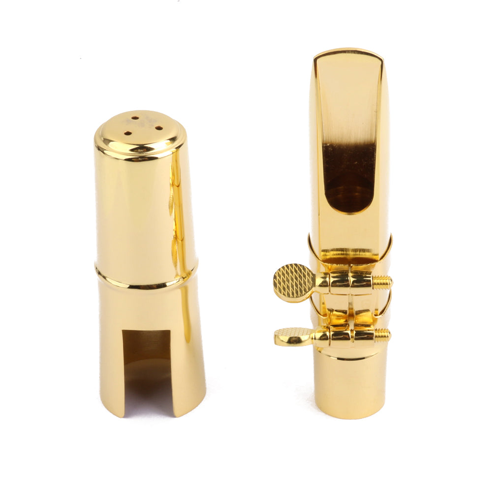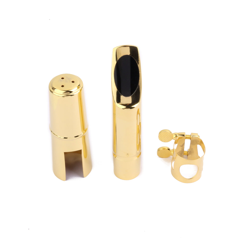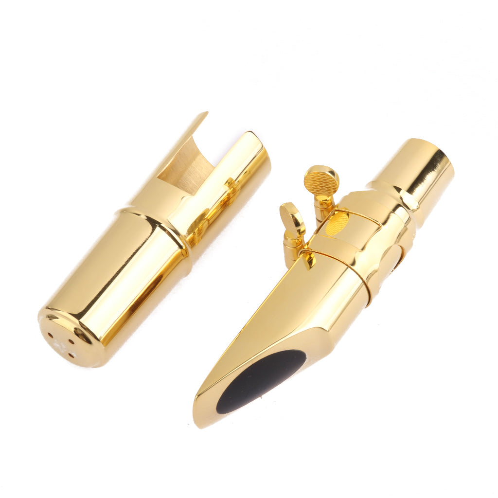 Alto Sax Saxophone Mouthpiece #5 Metal with Cap and Ligature Golden Plated