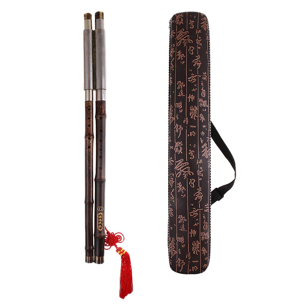 Chinese Double Tube Bamboo Flute Bawu Pipe Concert Flute Bau Tune G with Case Ethnic Folk Musical Woodwind Instrument