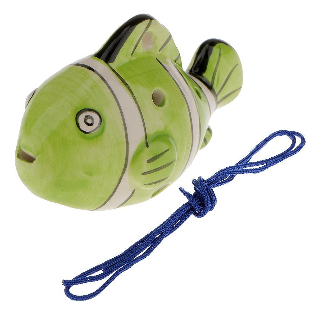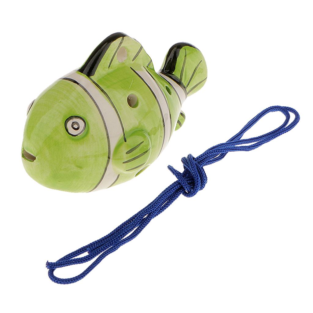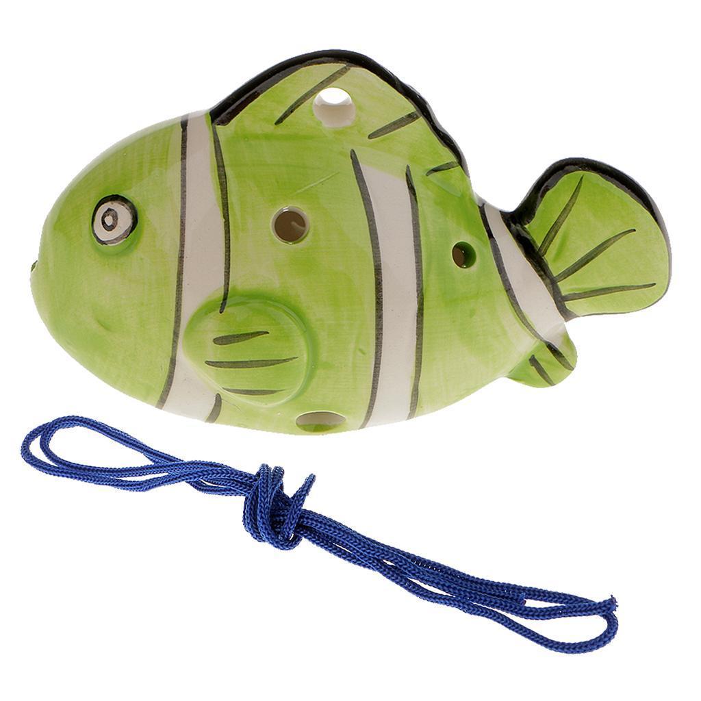 Instrument Fish Shape 6 Holes Ocarina Ceramic Musical Strap Light Green