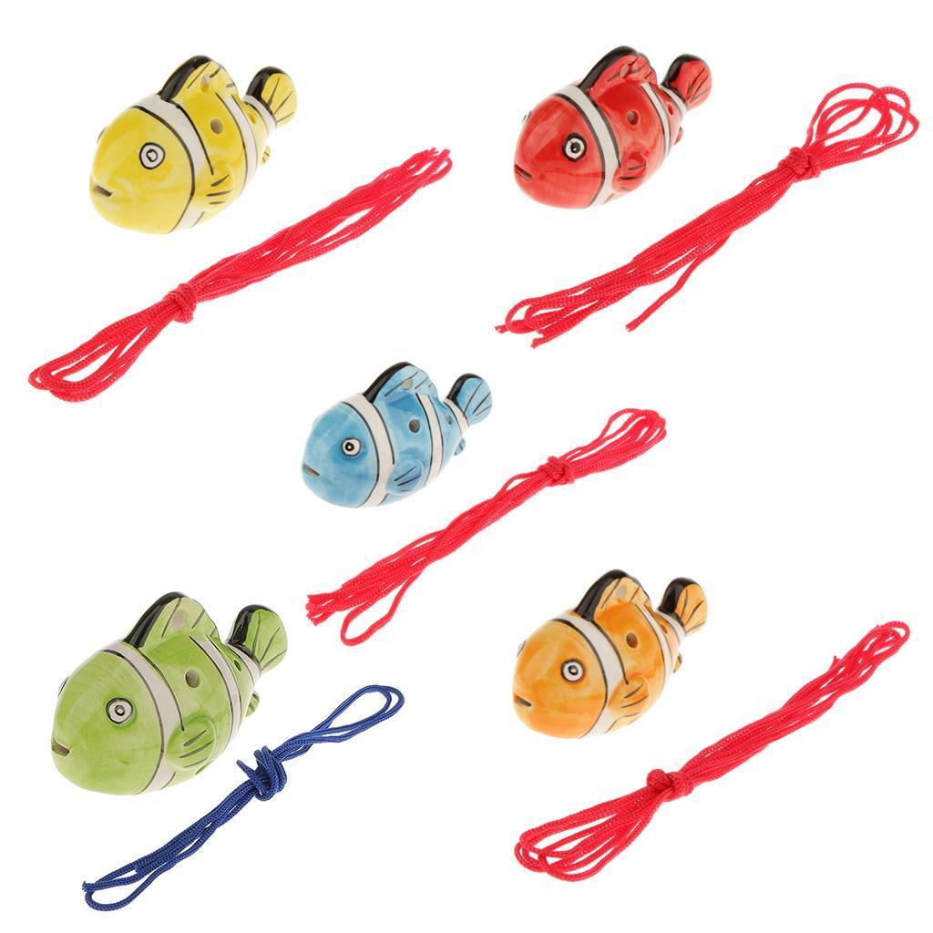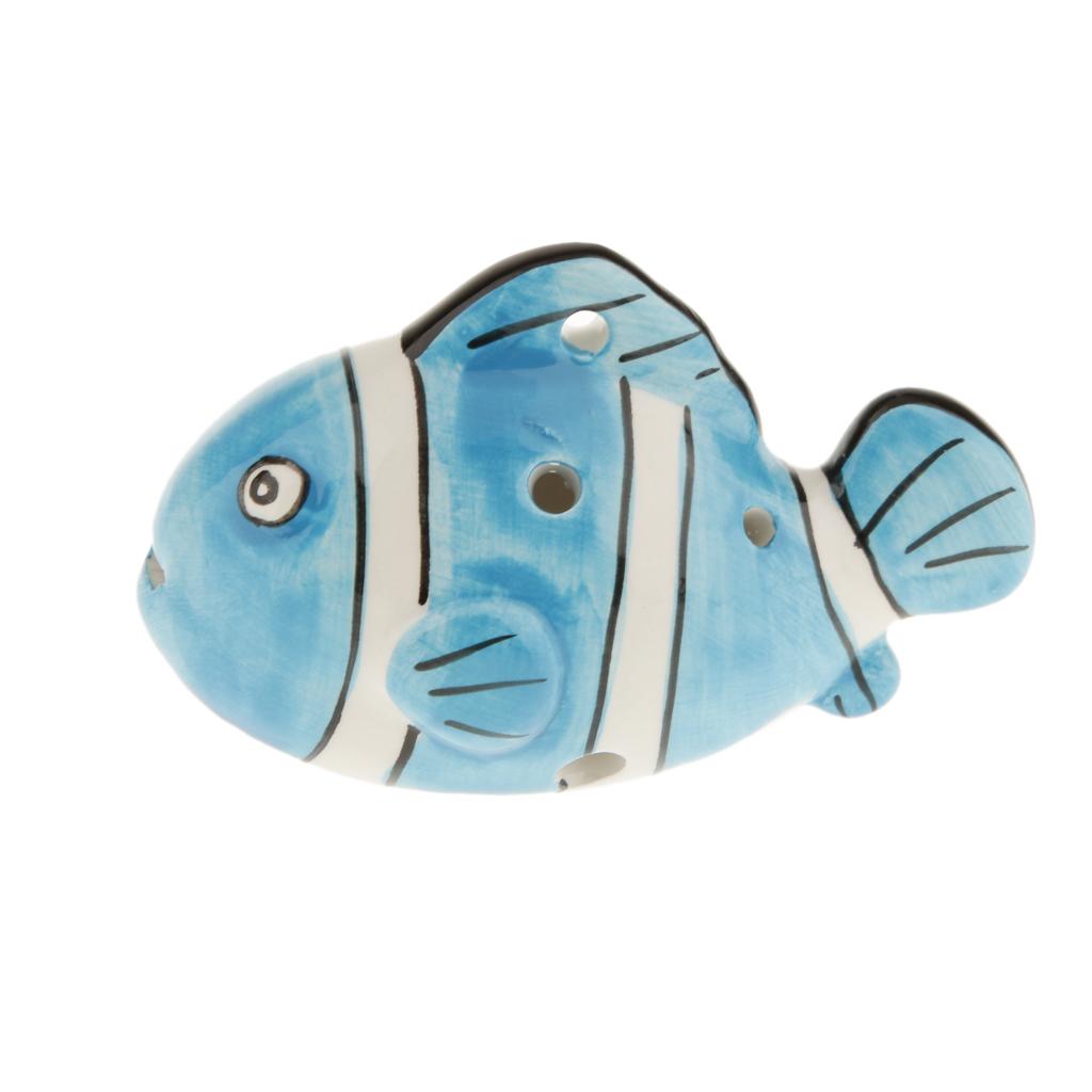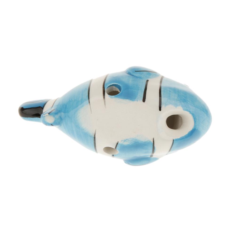 Instrument Fish Shape 6 Holes Ocarina Ceramic Musical Strap Light Green