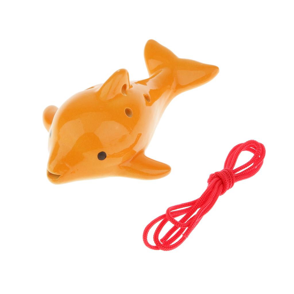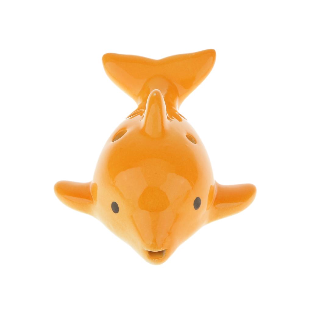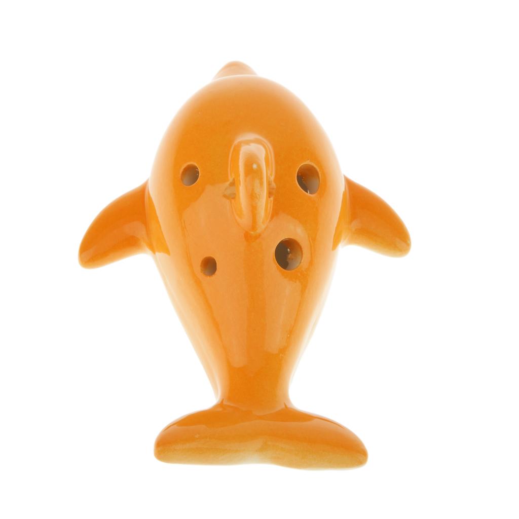 Portable Instrument Dolphin 6 Holes Ocarina Ceramic Orange Musical Strap