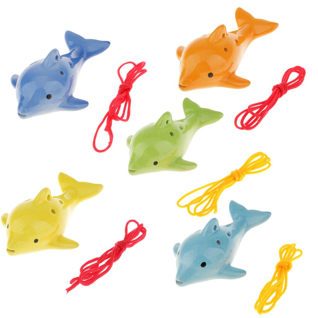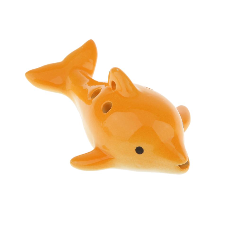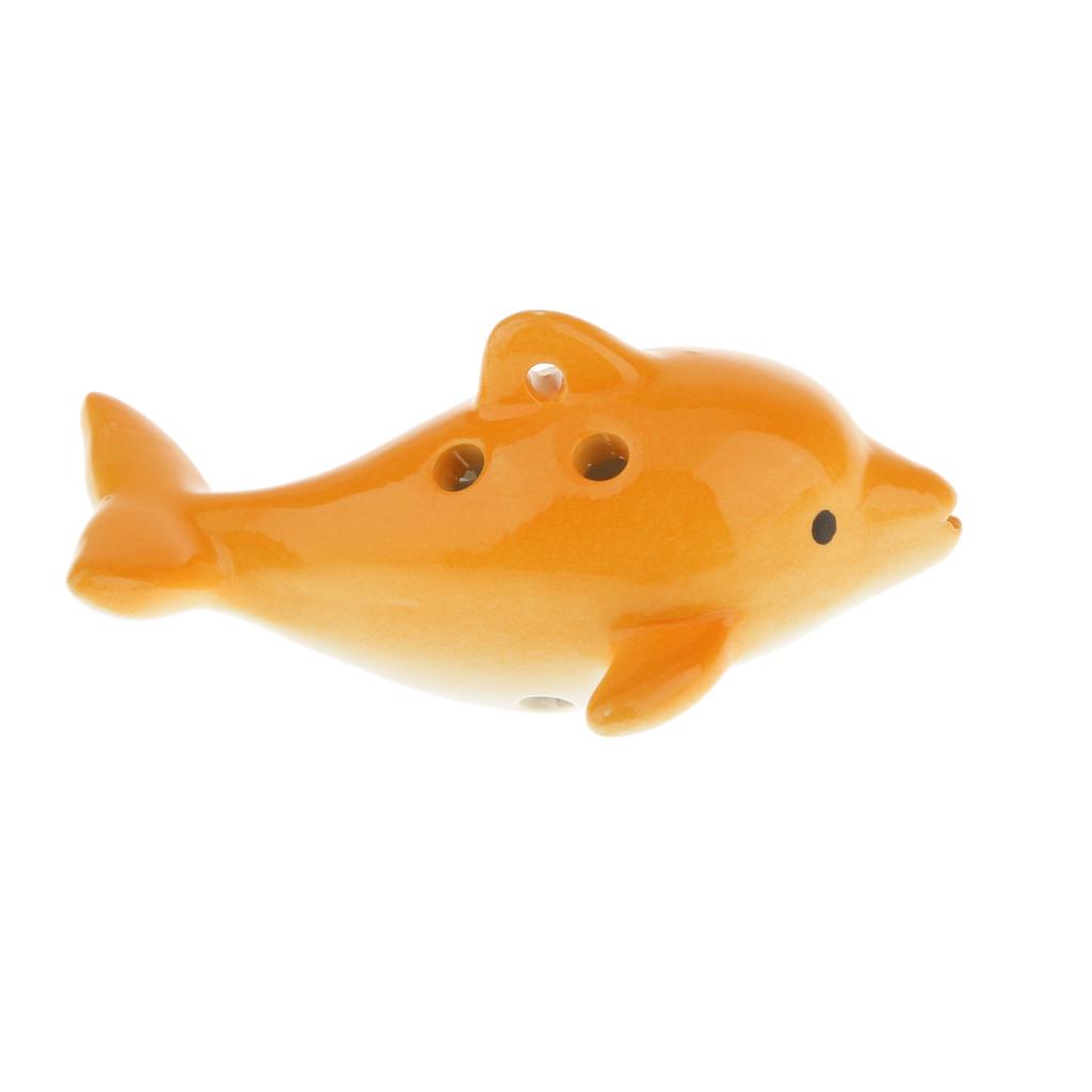 Portable Instrument Dolphin 6 Holes Ocarina Ceramic Orange Musical Strap