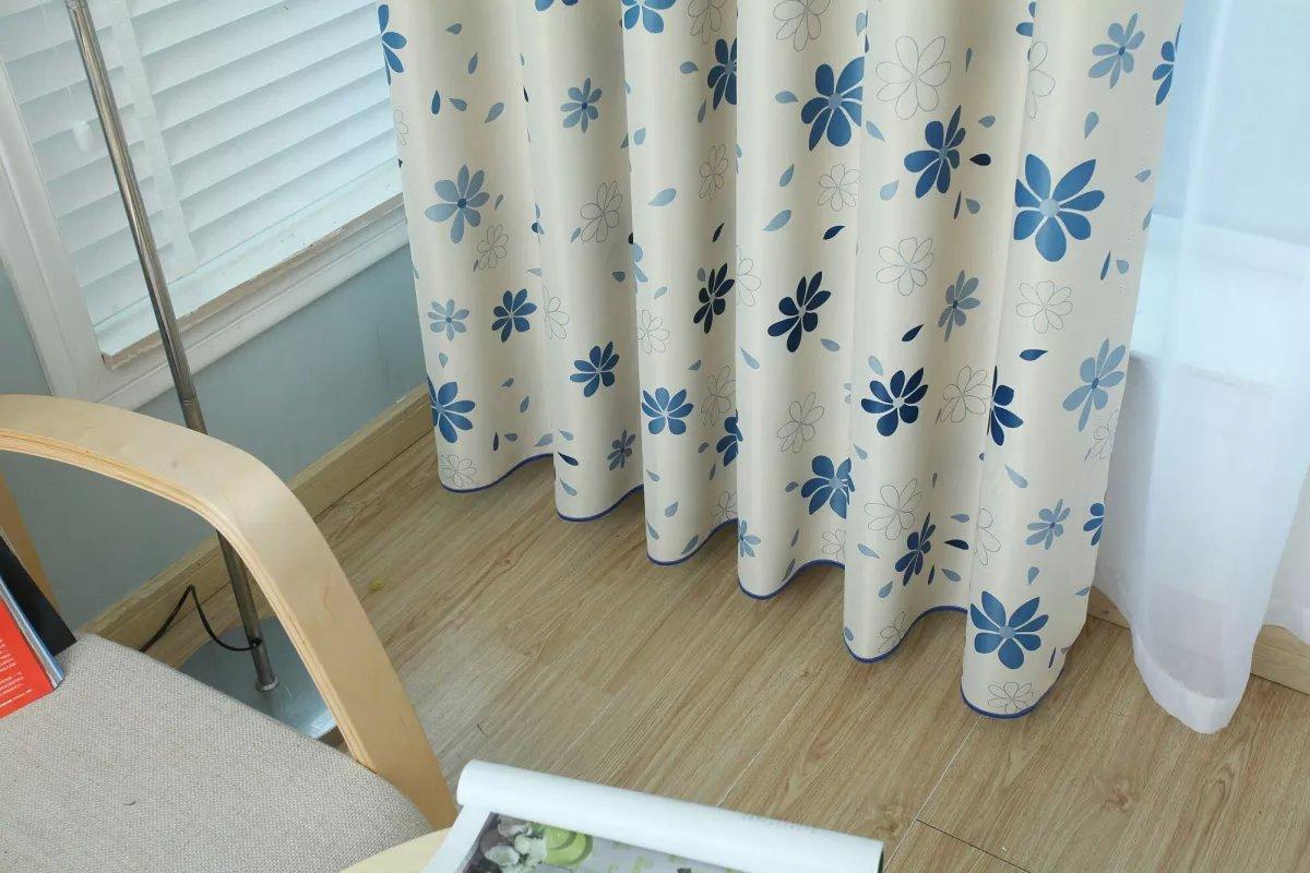100x250cm Grass Sevenleaf Pattern Window Curtain Panel Eyelet Drape Blue