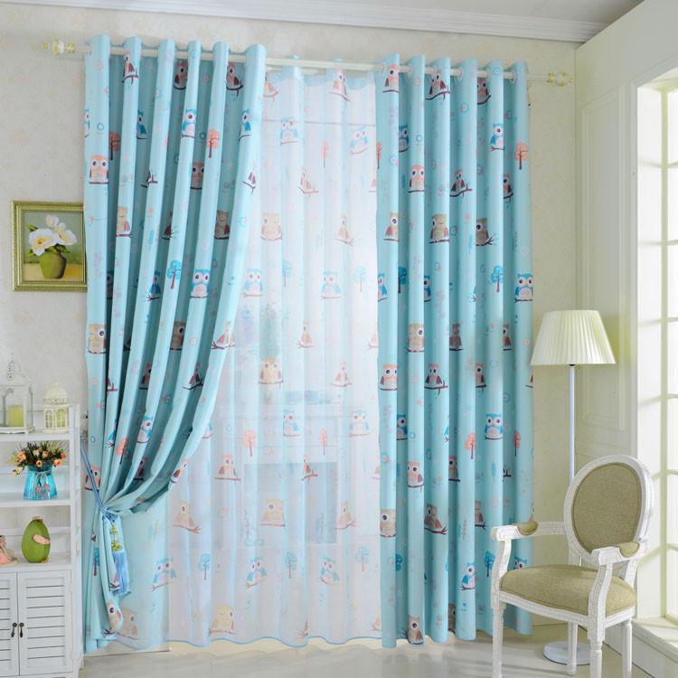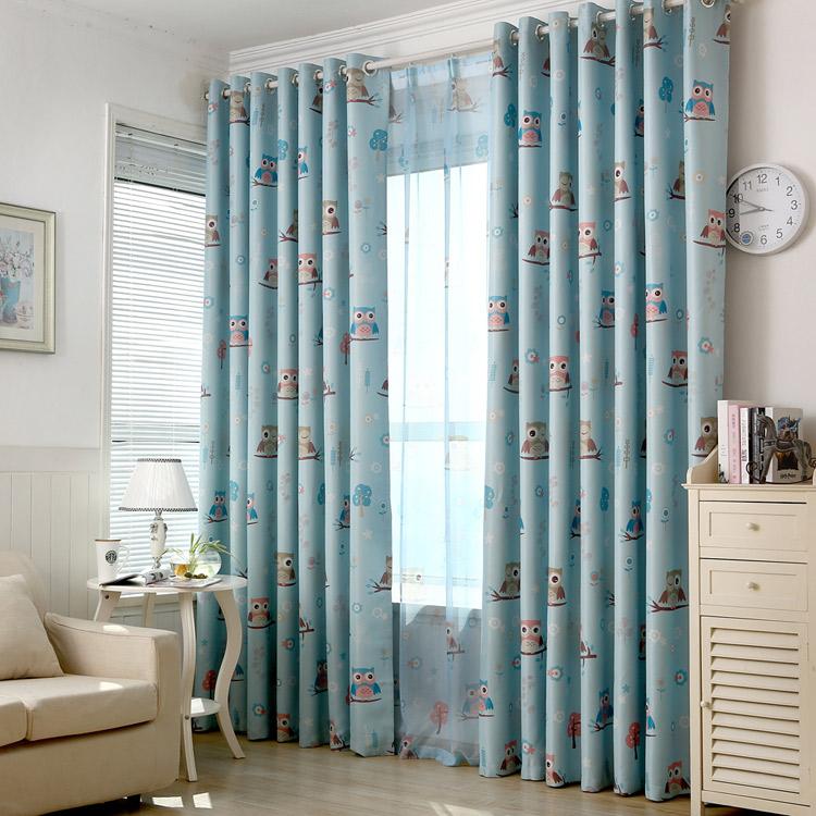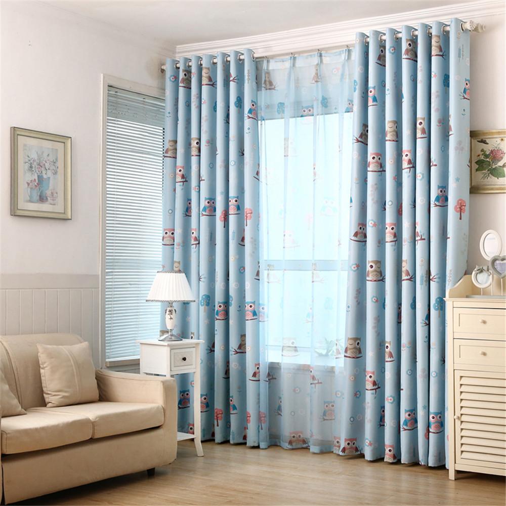 100x250cm Owl Pattern Window Room Shade Panel Blackout Cloth Curtain Blue
