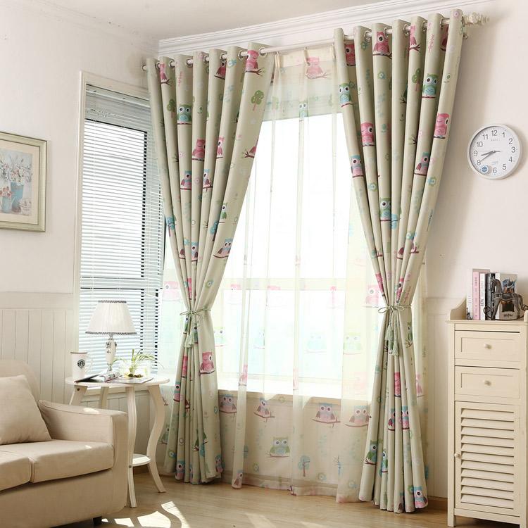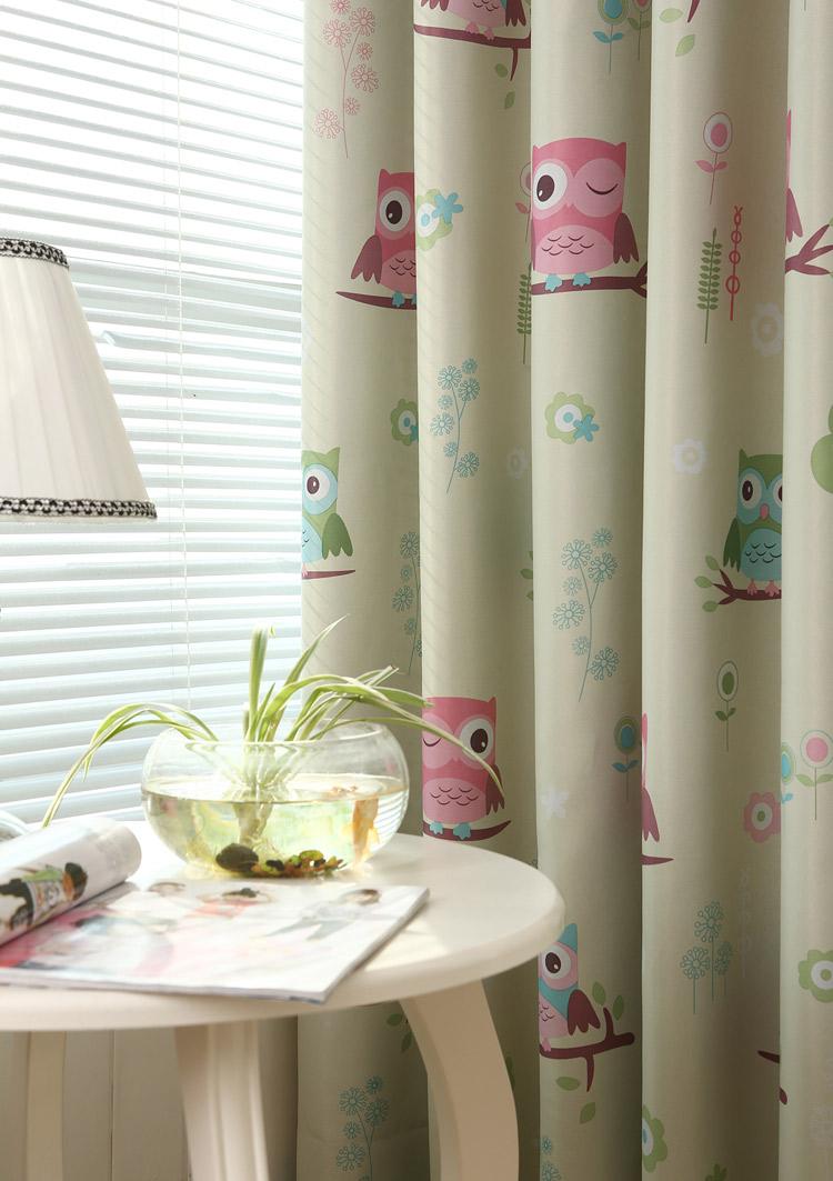 100x250cm Owl Pattern Window Room Shade Panel Blackout Curtain Drape Green