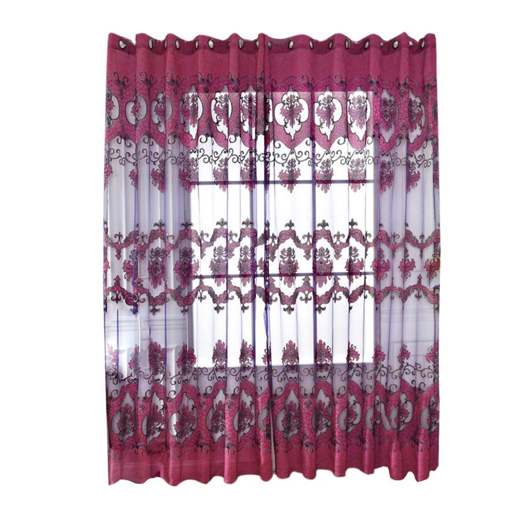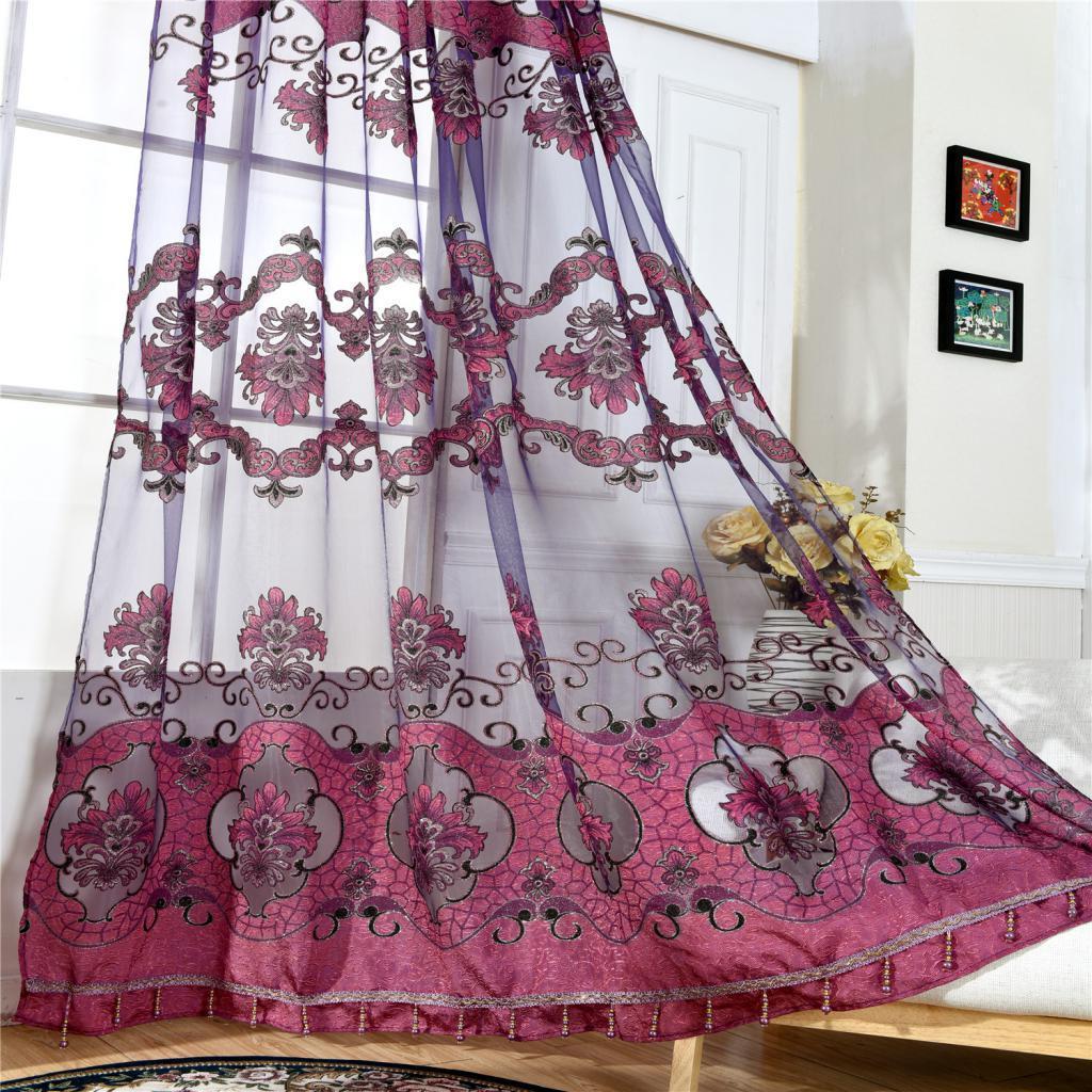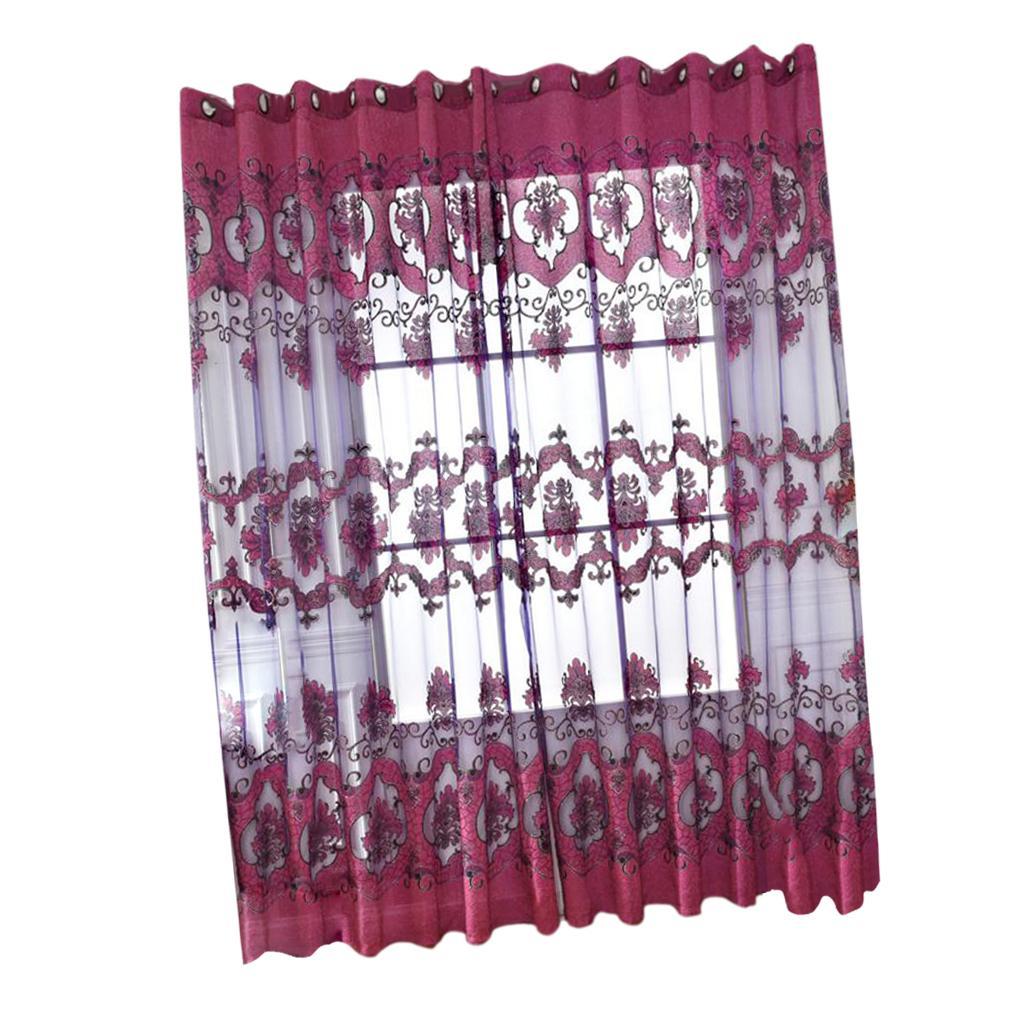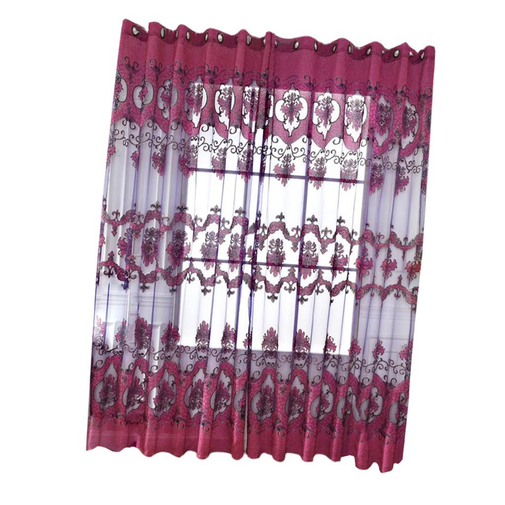 100x250cm Window Curtain Drape Blinds Gauze Voile Curtain Fuchsia with Beads