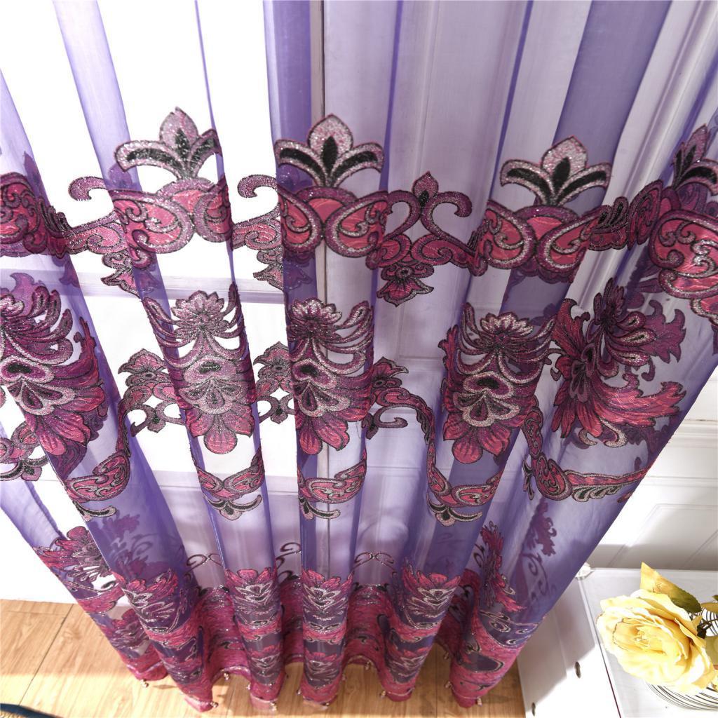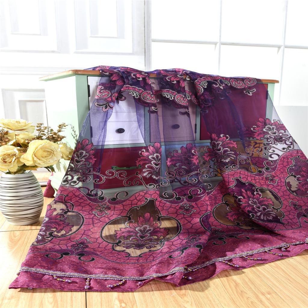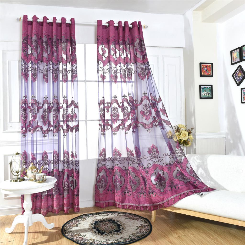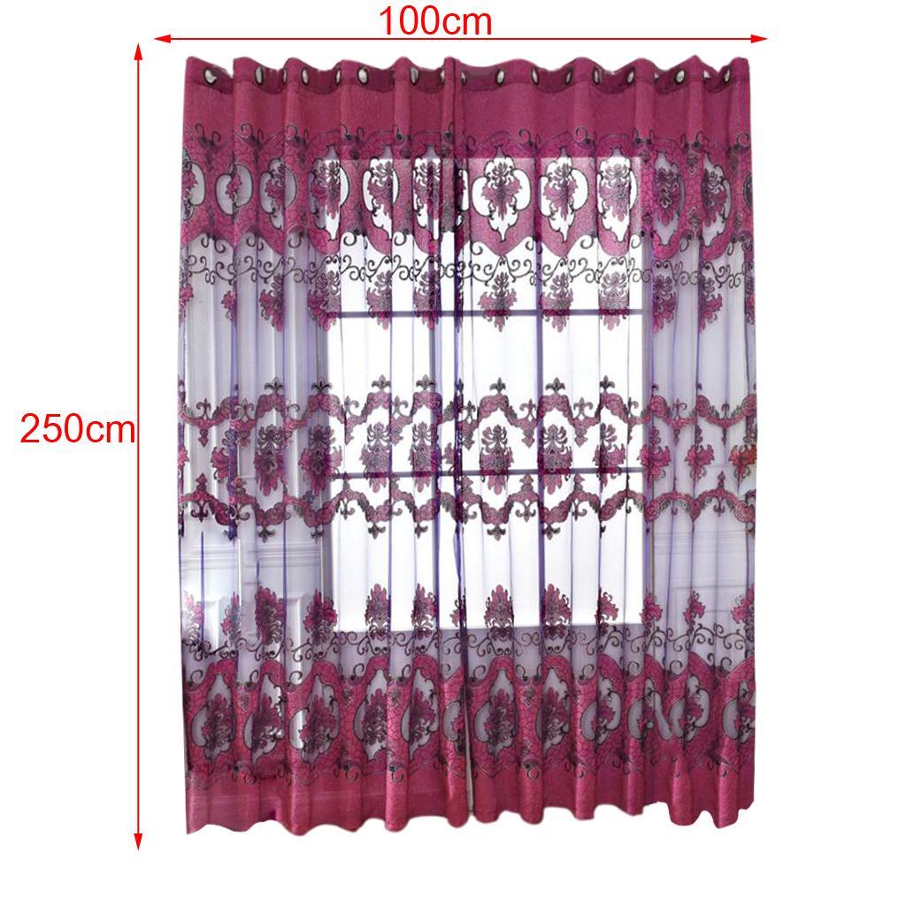 100x250cm Window Curtain Drape Blinds Gauze Voile Curtain Fuchsia with Beads