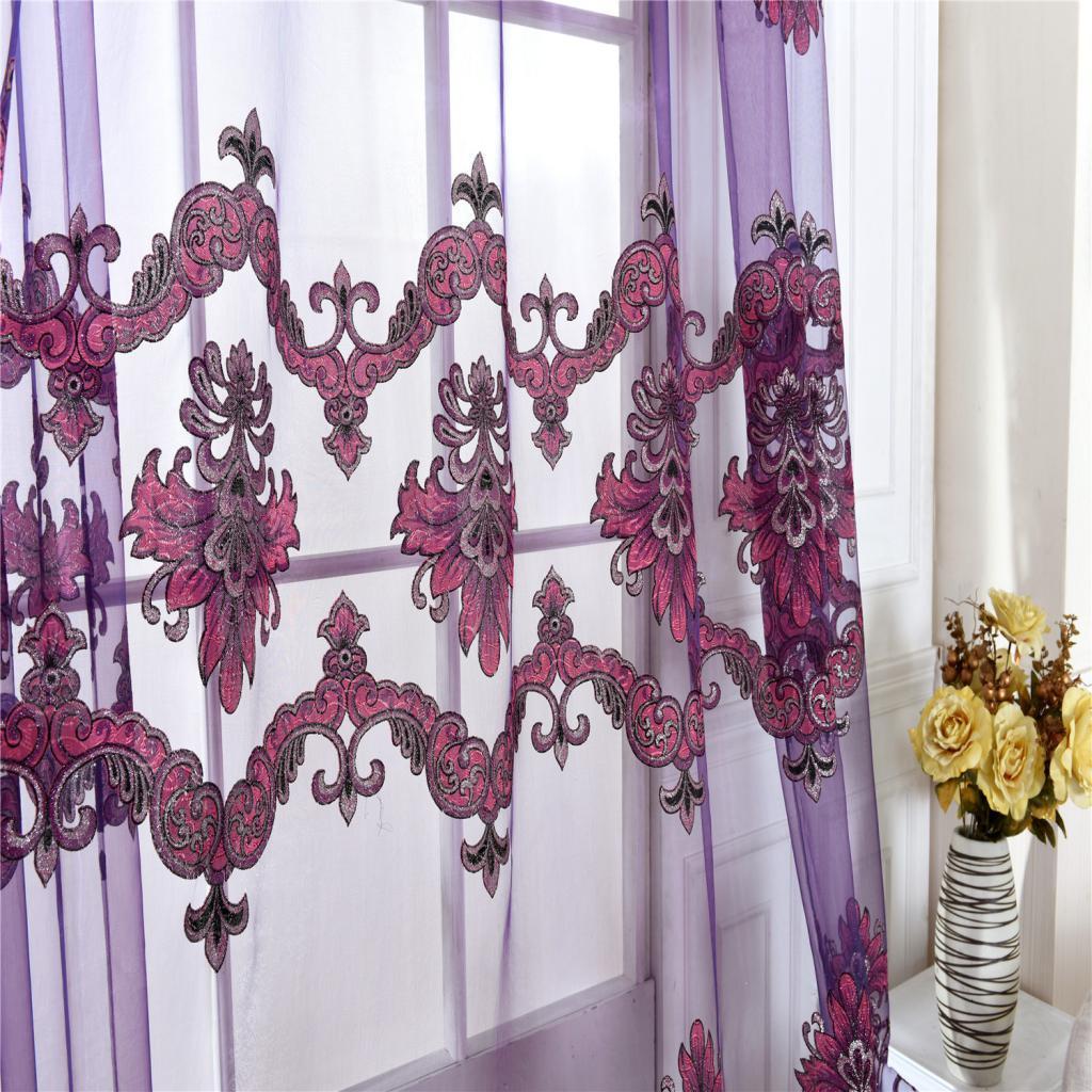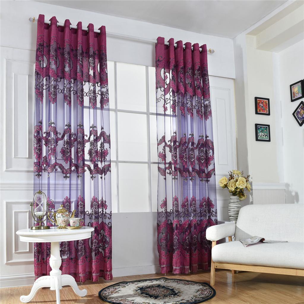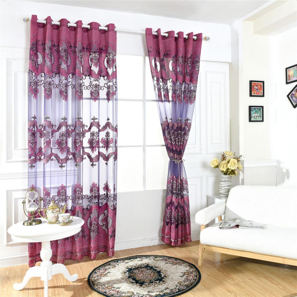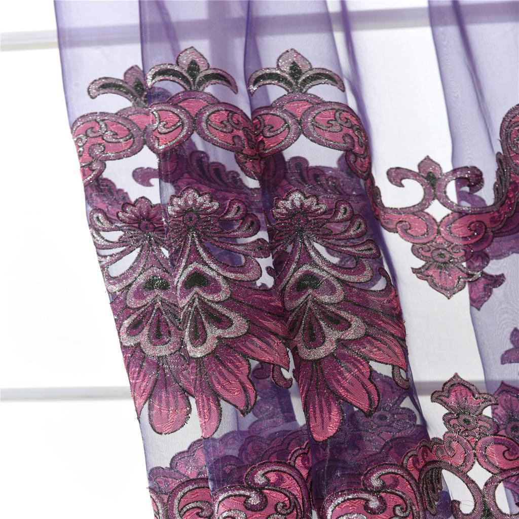 100x250cm Window Curtain Drape Blinds Gauze Voile Curtain Fuchsia with Beads
