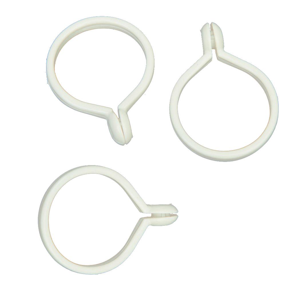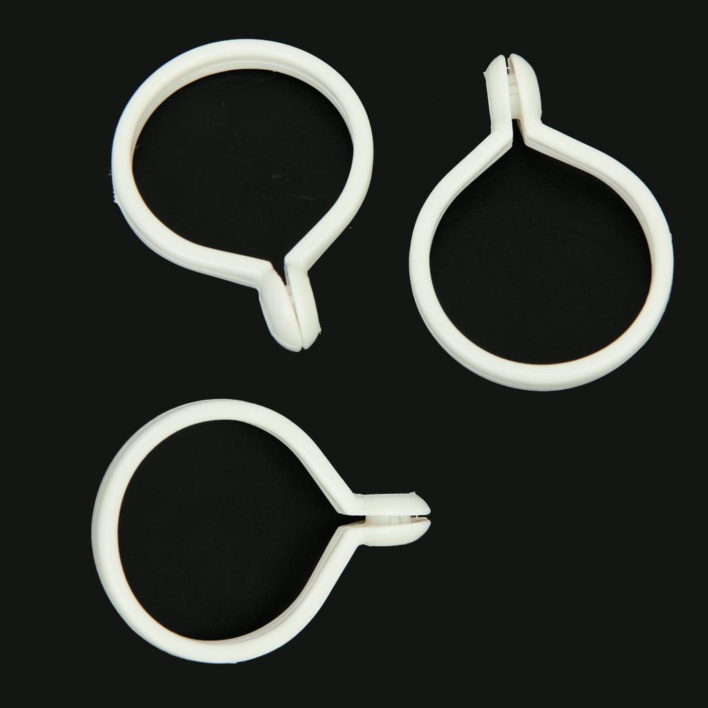 The curtain rod rings are excellent finishing touch to your bathroom decor. Made of durable plastic material, the rod rings with eyelet is easy to install together use with drapery hooks. The curtain rings measure 1.34 inch inside diameter.