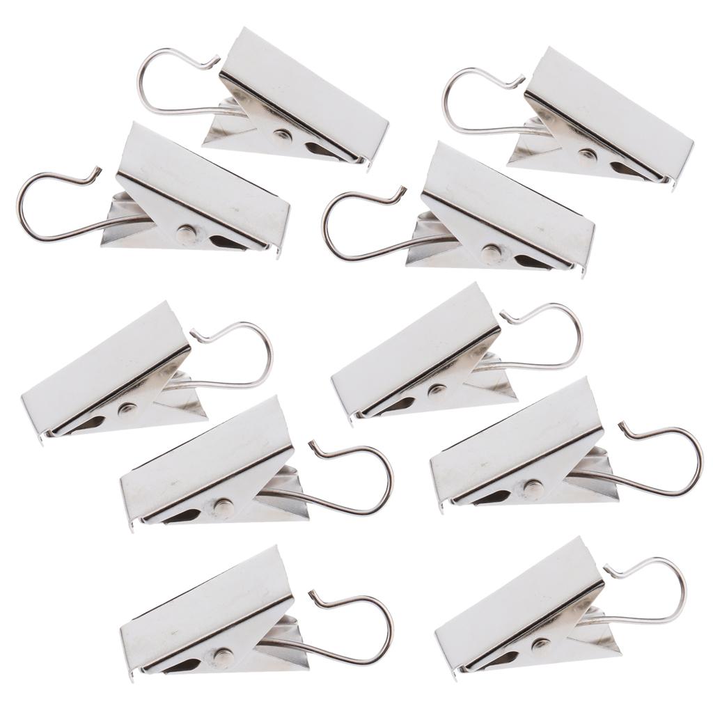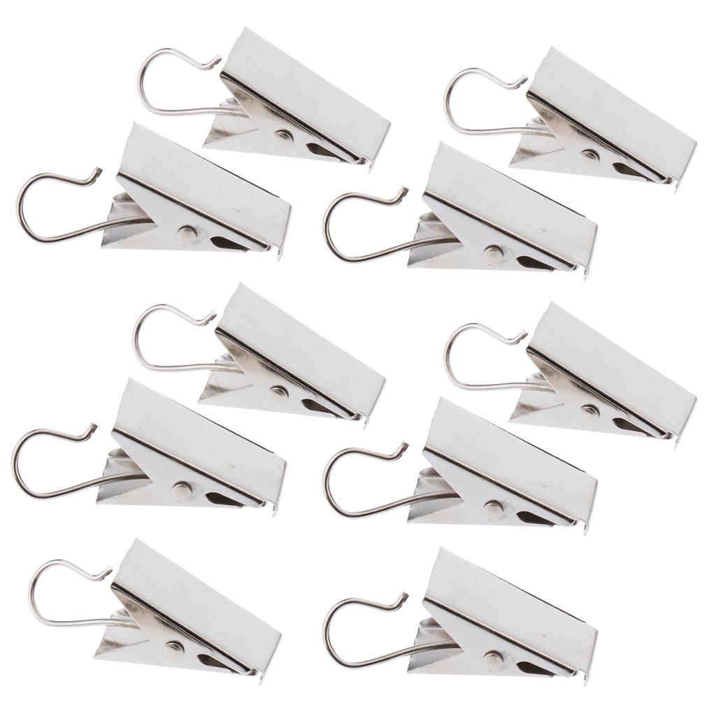10Pcs Heavy Duty Curtain Clips with Hook Spring Clamps Hanger Clips Pegs Pin Silver