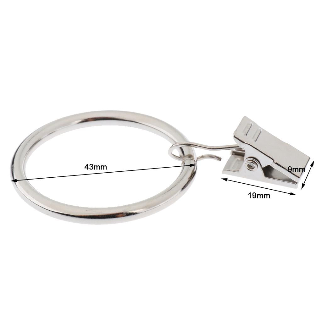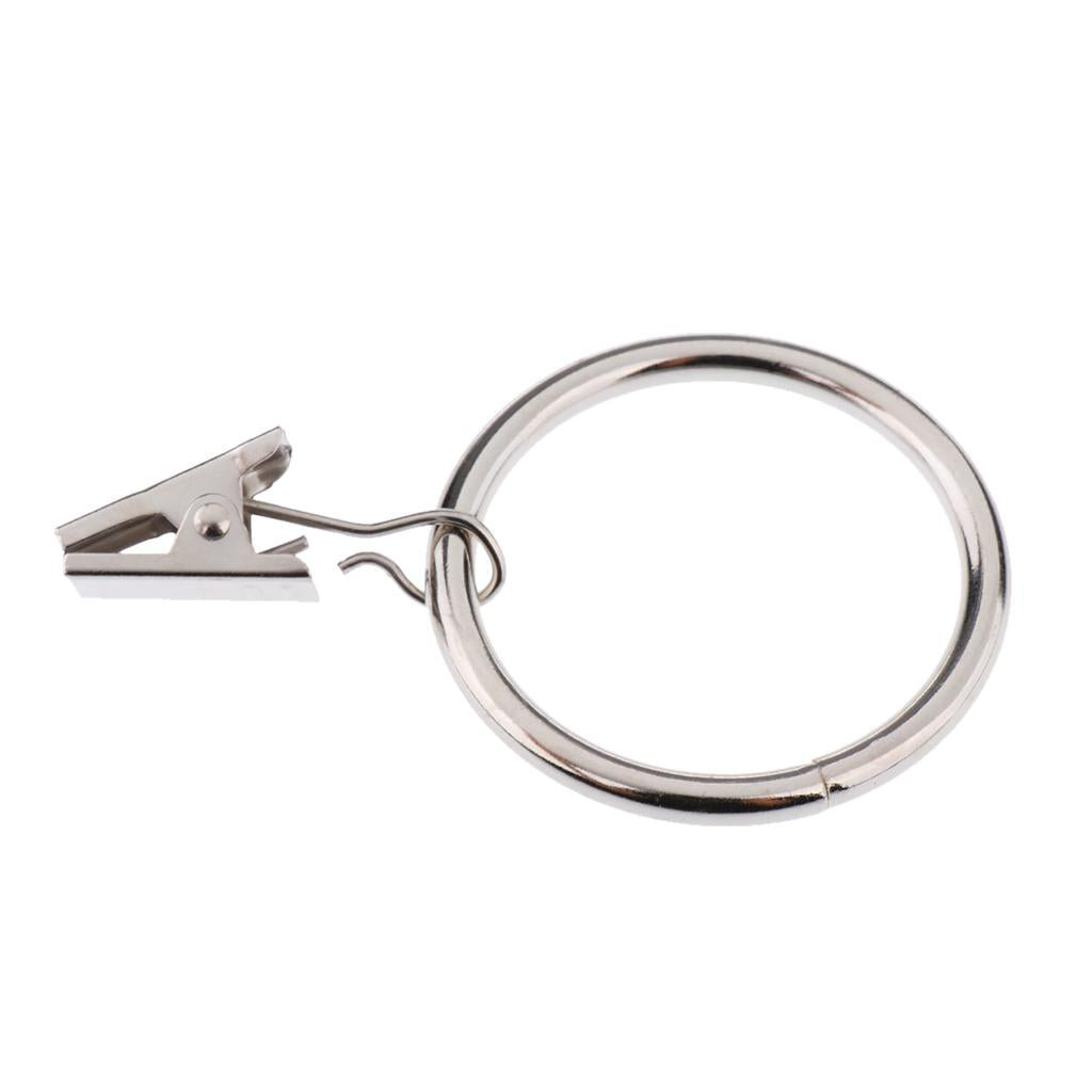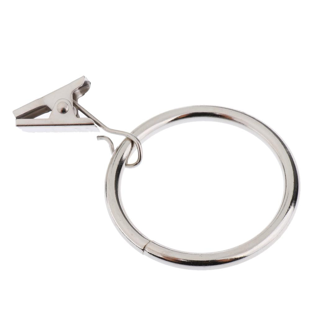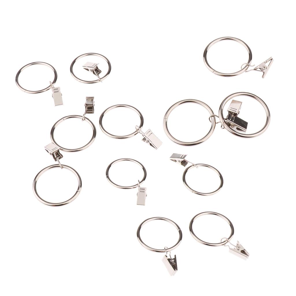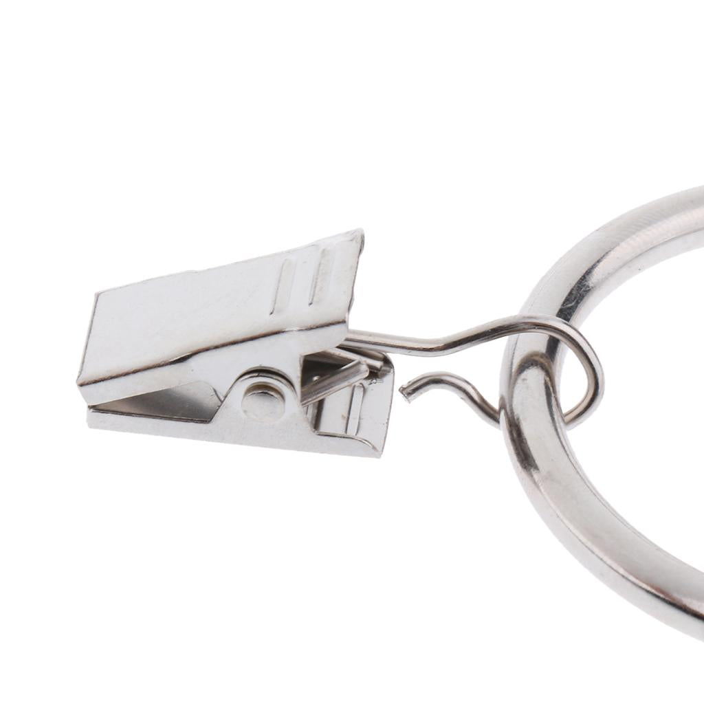 12Pcs Curtain Ring Hook with Clips with Eyes Sliding Shower Curtain Hook Silver