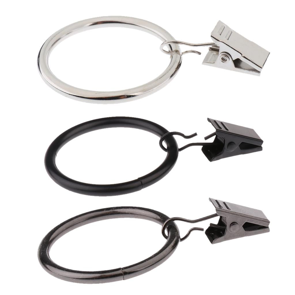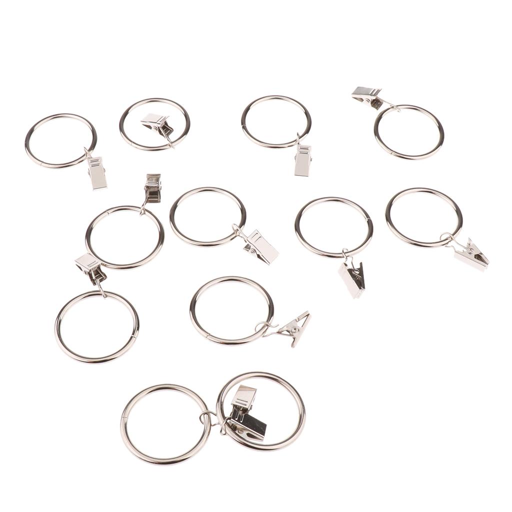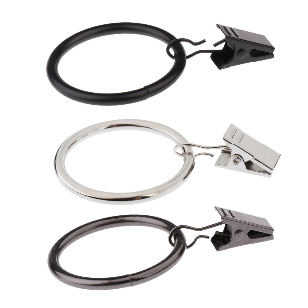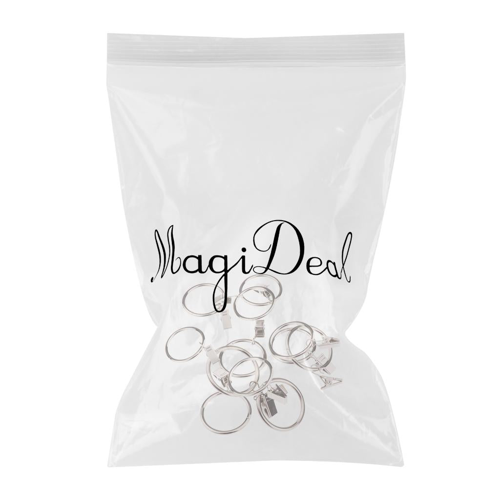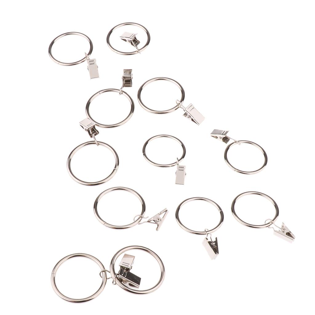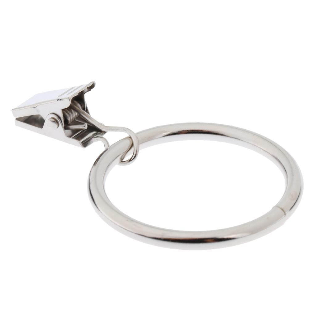 12Pcs Curtain Ring Hook with Clips with Eyes Sliding Shower Curtain Hook Silver