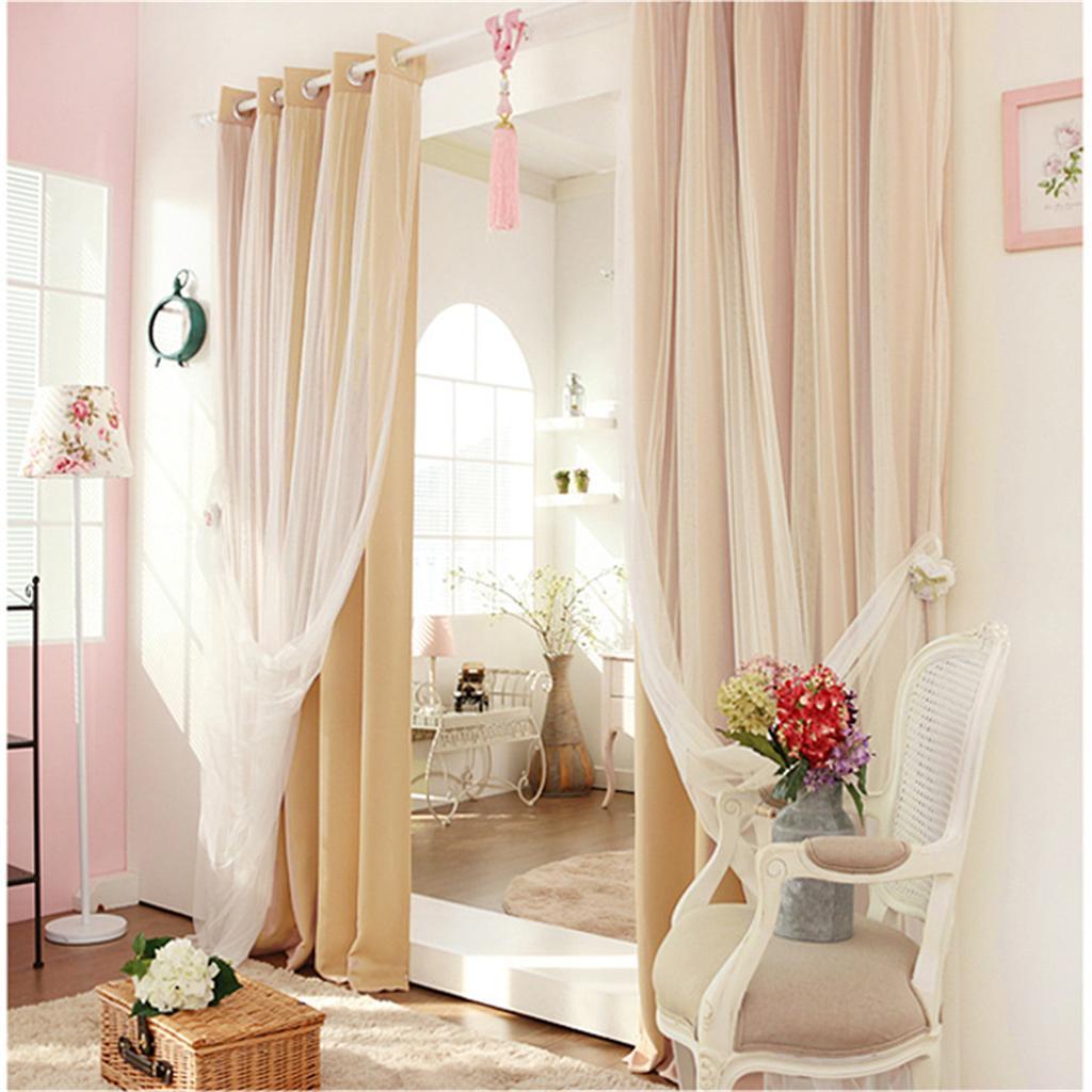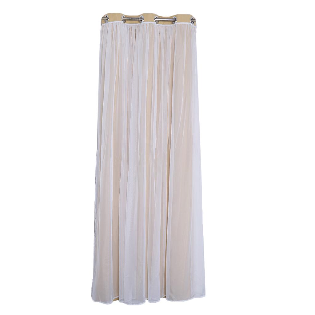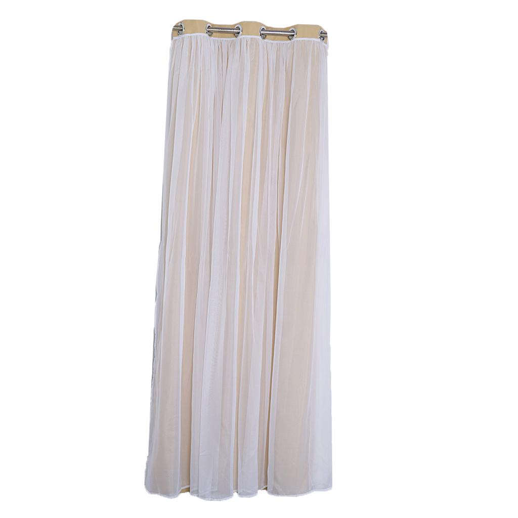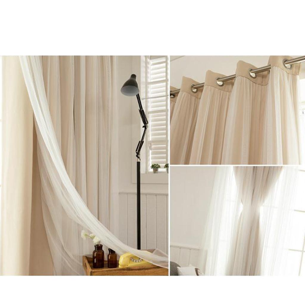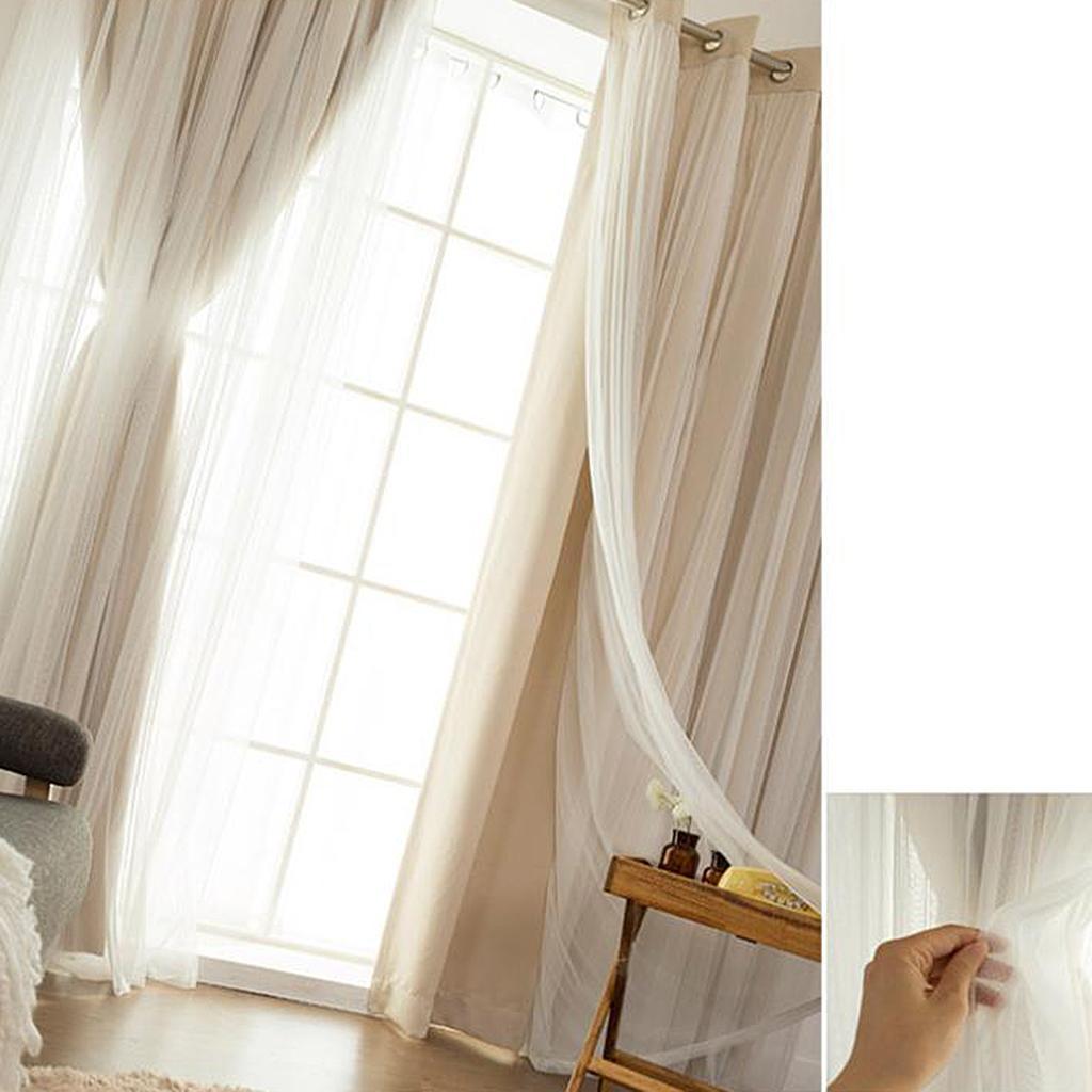 2-in-1 Sheer Curtain Window Blinds Drape with Grommets Top 100x250cm-Beige