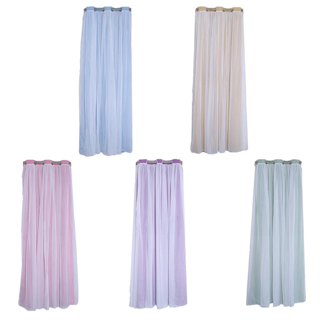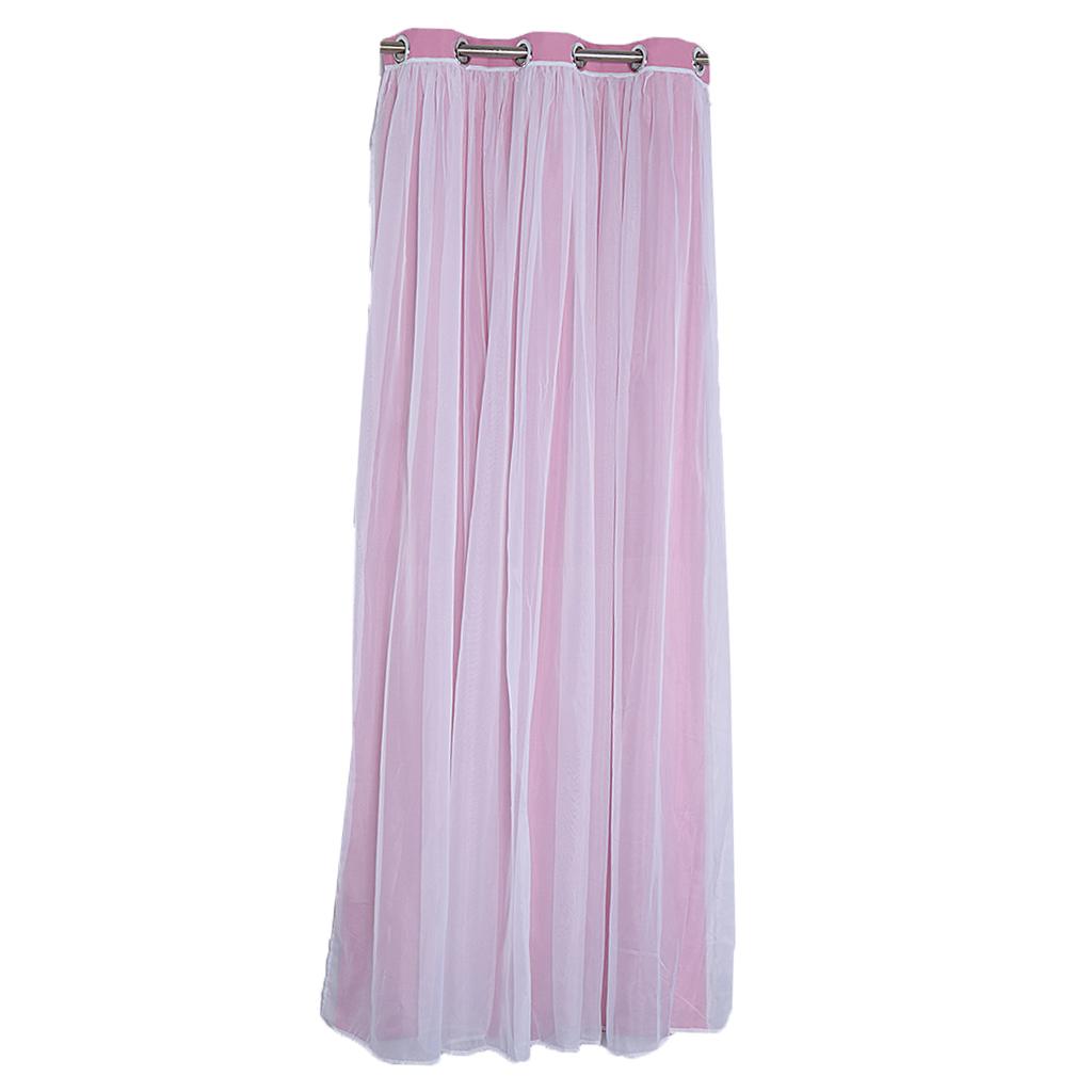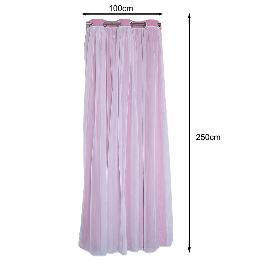 2-in-1 Sheer Curtain Window Blinds Drape with Grommets Top 100x250cm-Pink