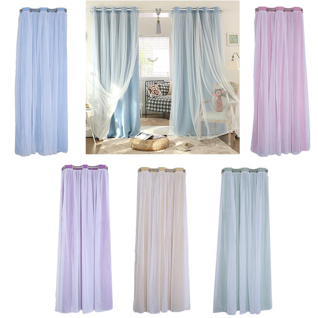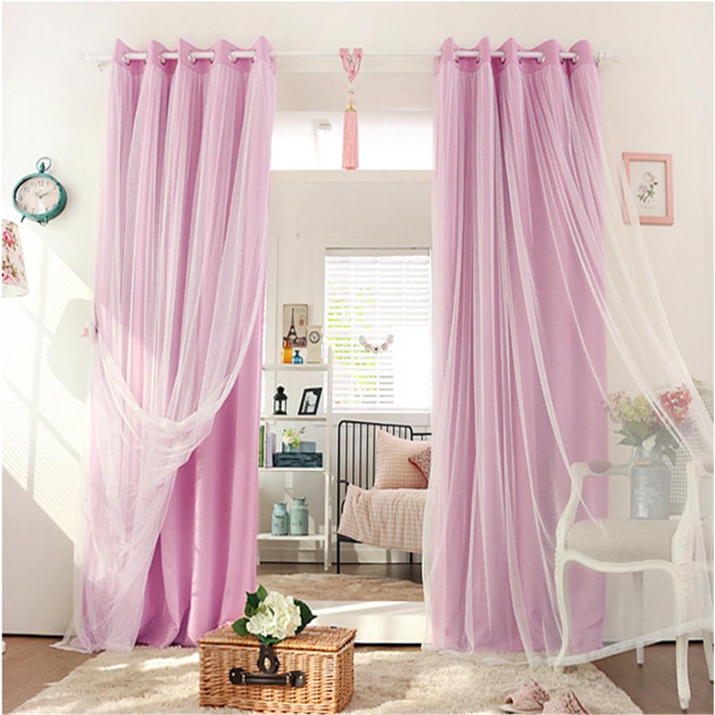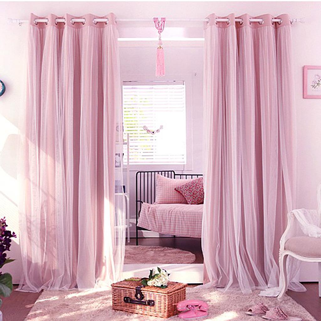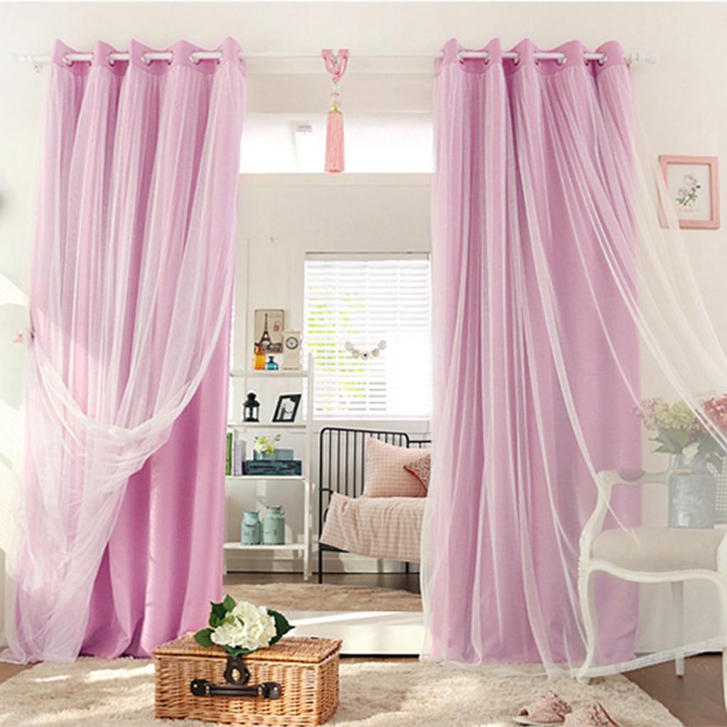 2-in-1 Sheer Curtain Window Blinds Drape with Grommets Top 100x250cm-Pink