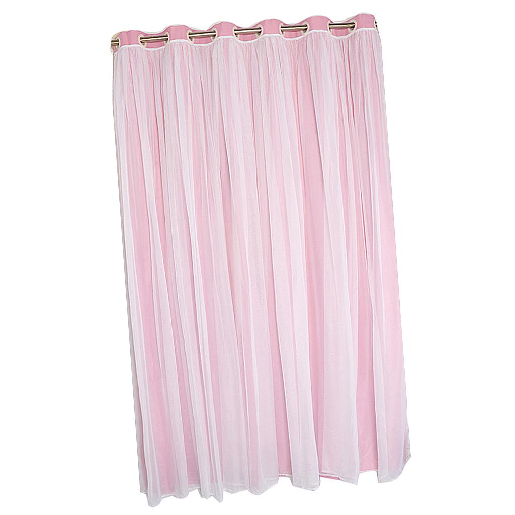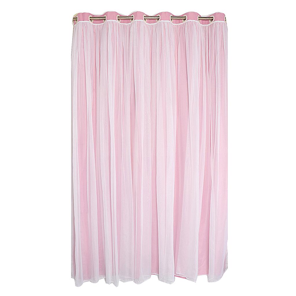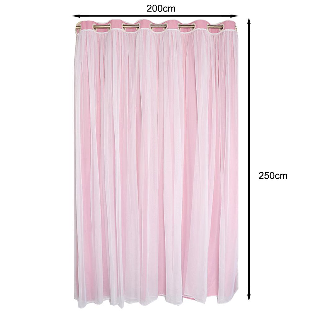 2-in-1 Sheer Curtain Window Blinds Drape with Grommets Top 200x250cm-Pink