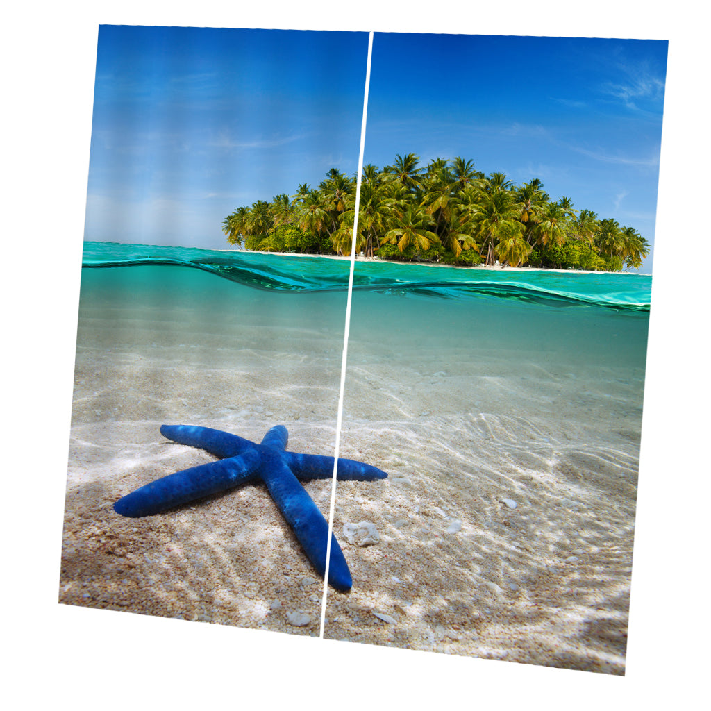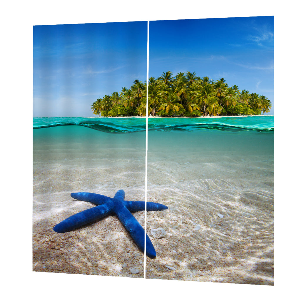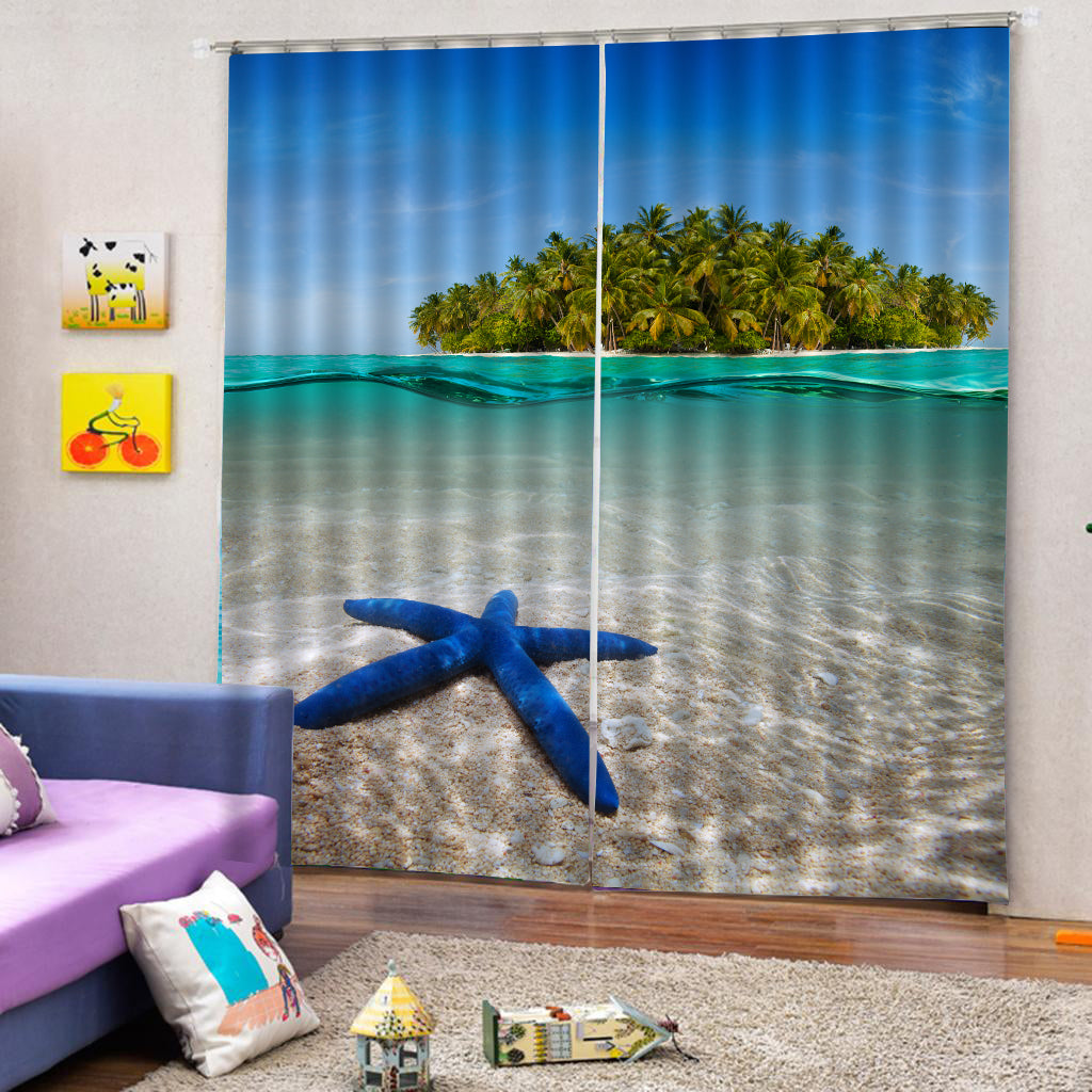 2 Panels Digital Printing Blackout 3D Curtains Window Blue Starfish