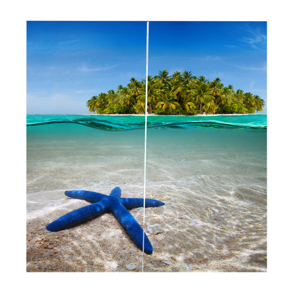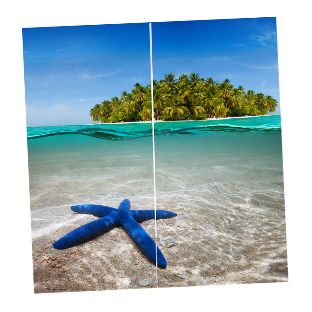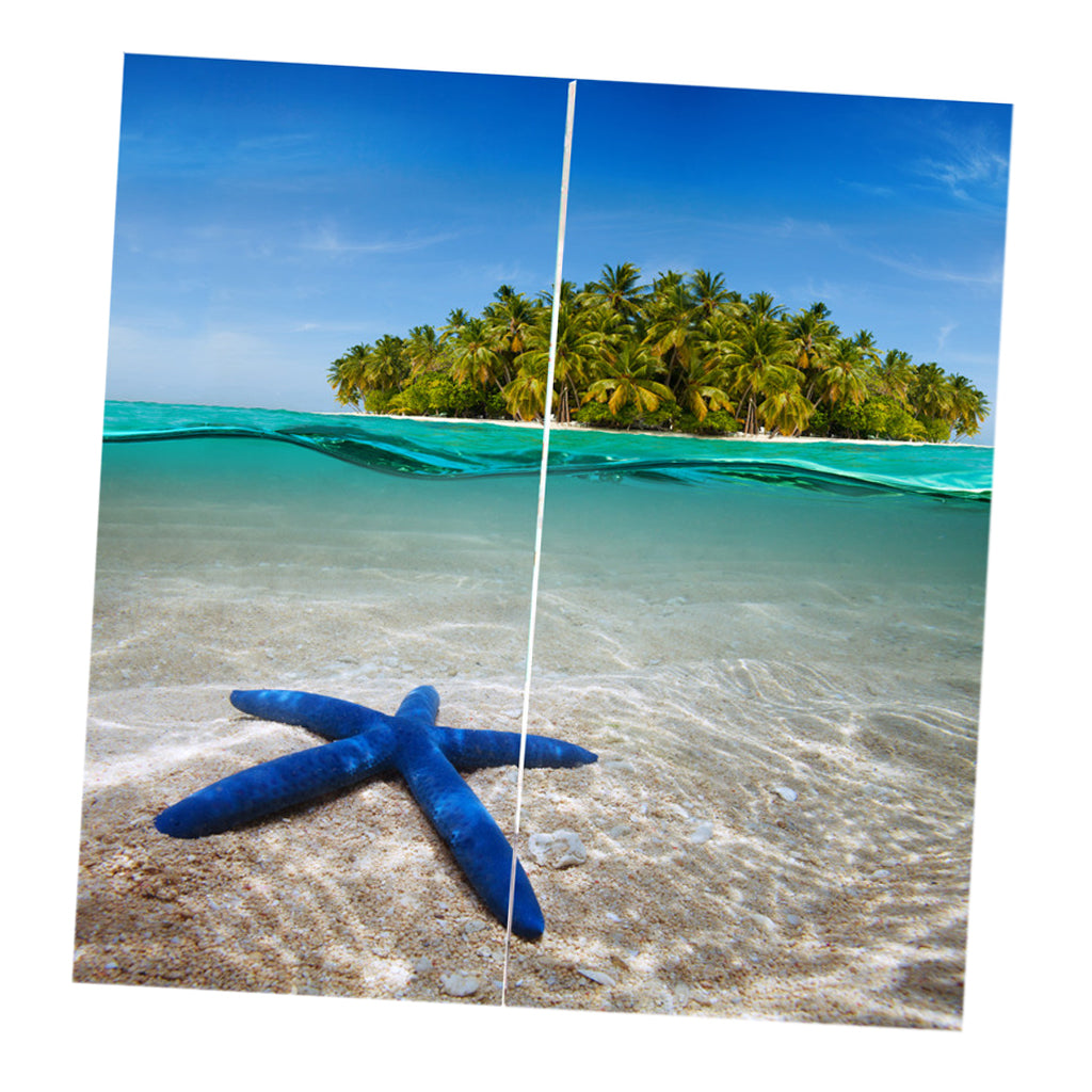 2 Panels Digital Printing Blackout 3D Curtains Window Blue Starfish