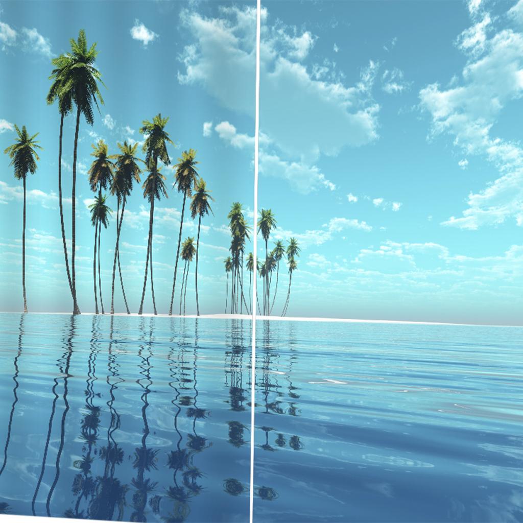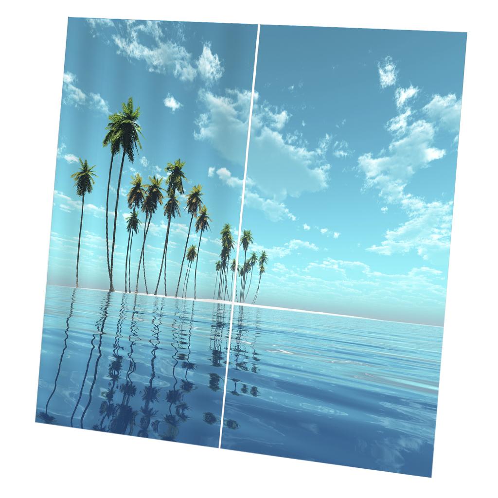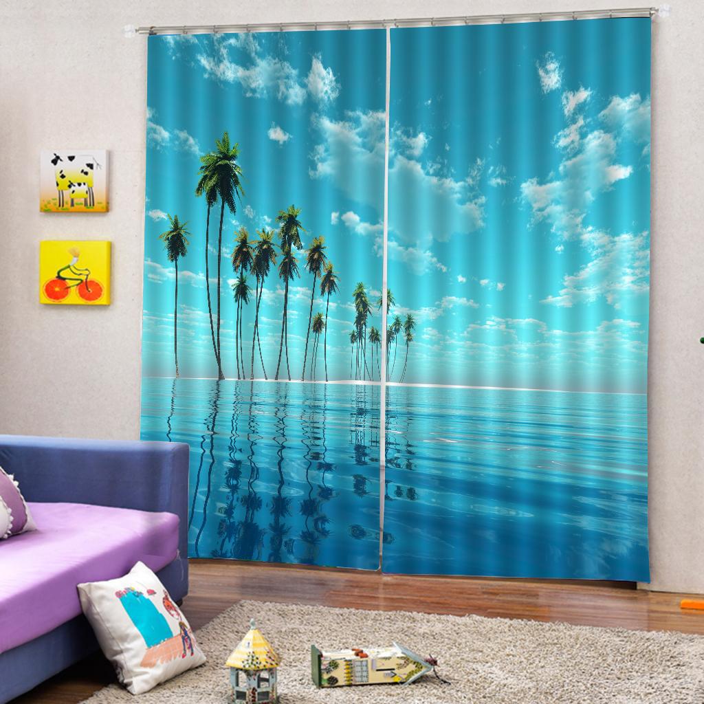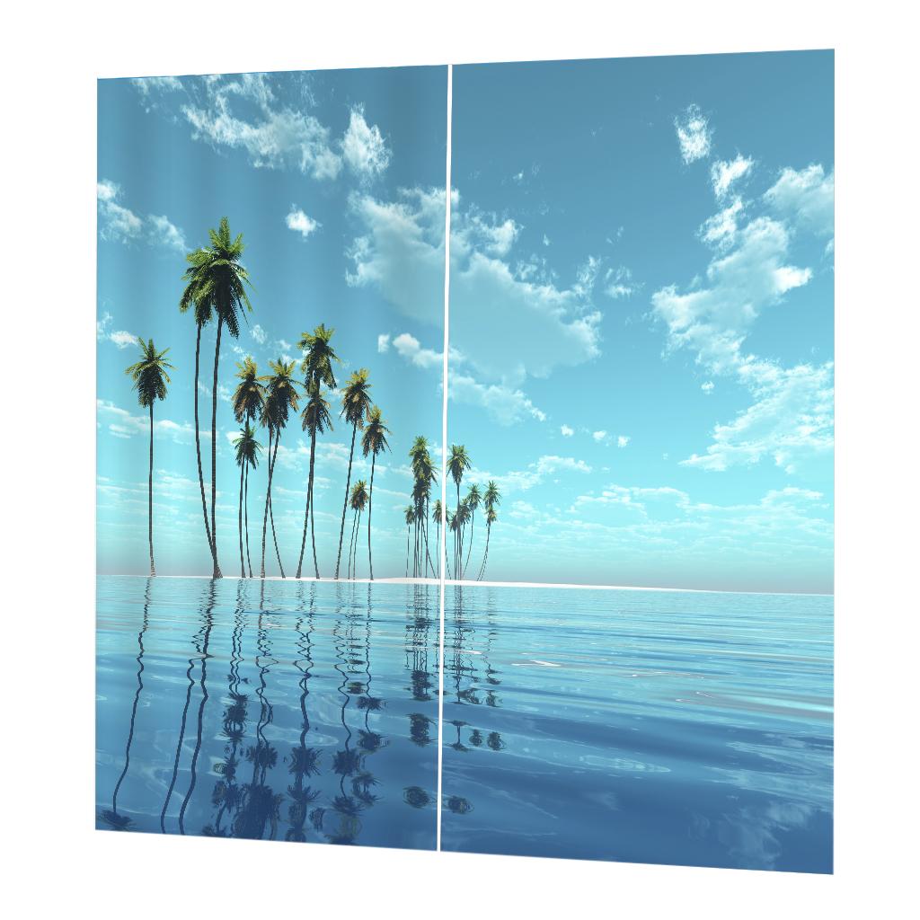 2 Panels Digital Printing Blackout 3D Curtains Window Coconut Tree Sea