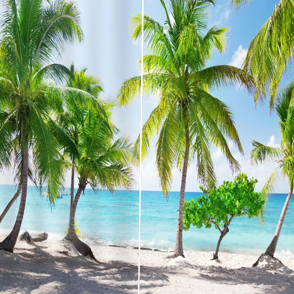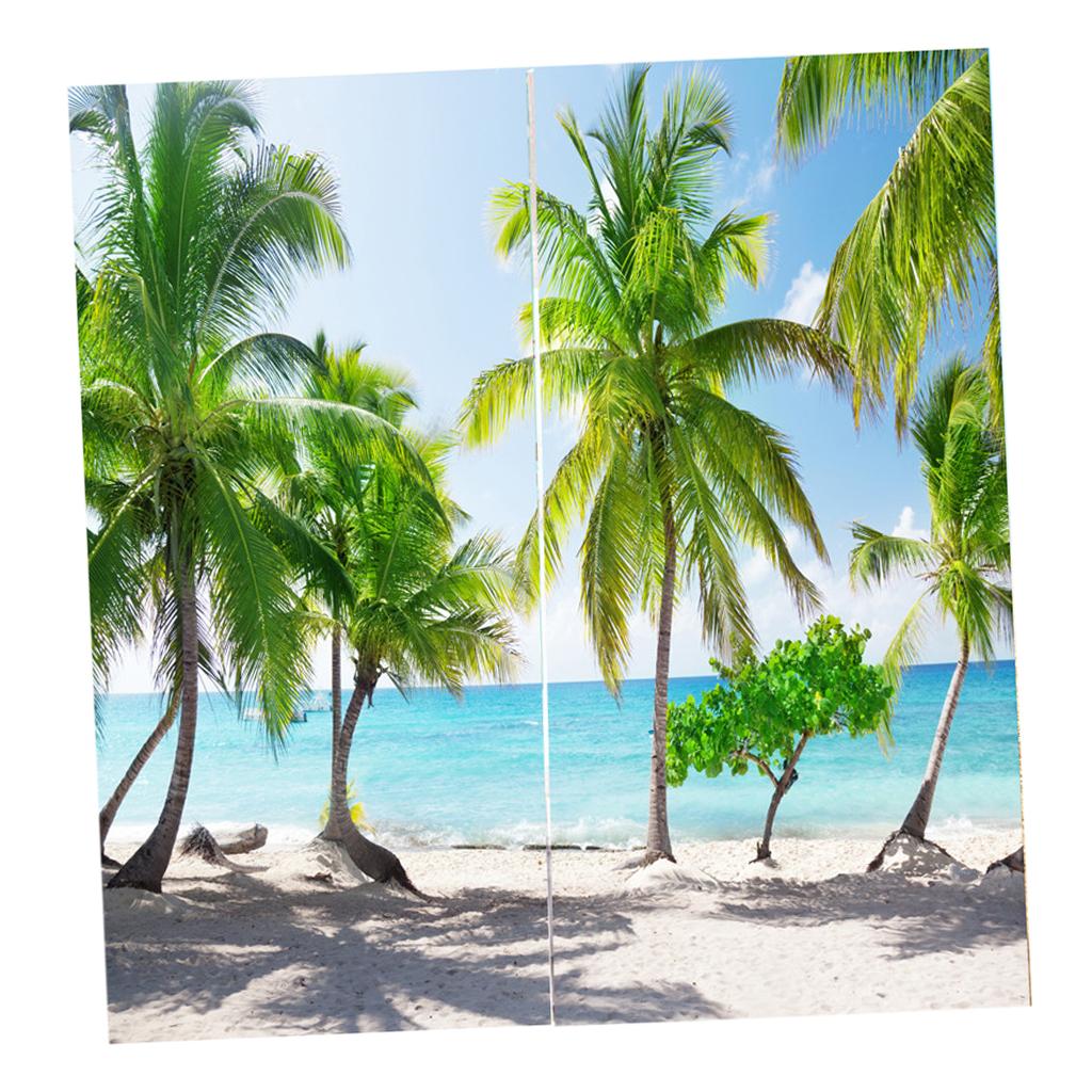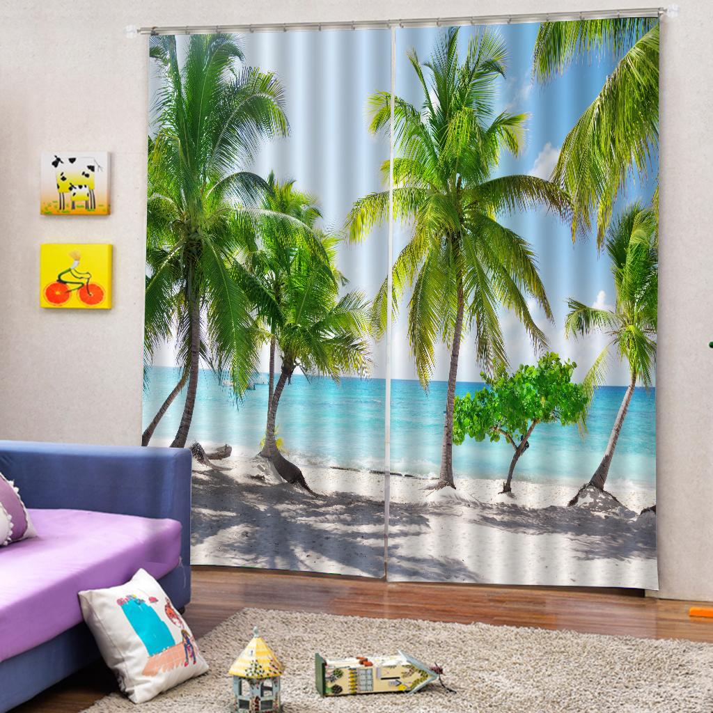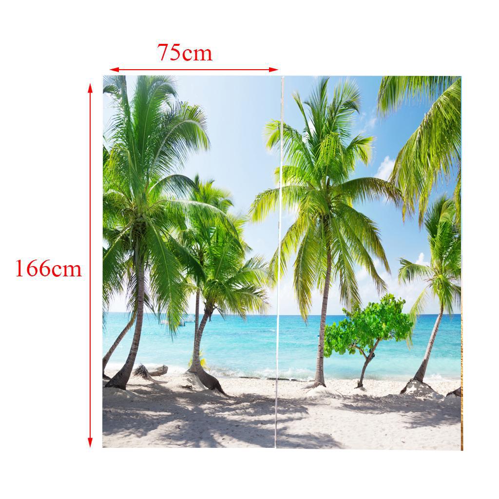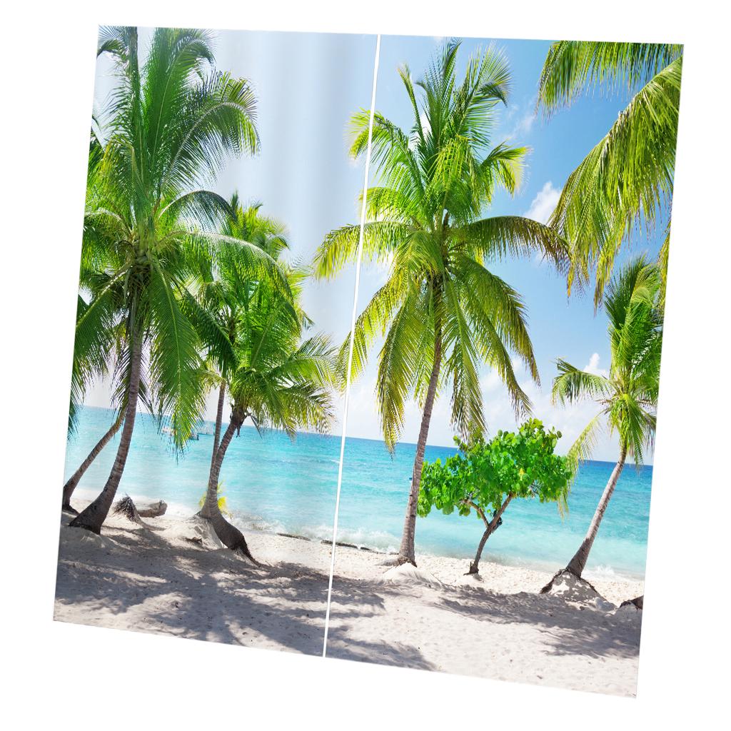 2 Panels Digital Printing Blackout 3D Curtains Window Coconut Tree