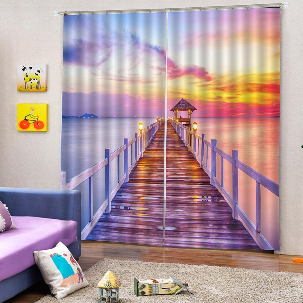 Sea scenery printed window curtain - blackout curtains for home elegant comfort.