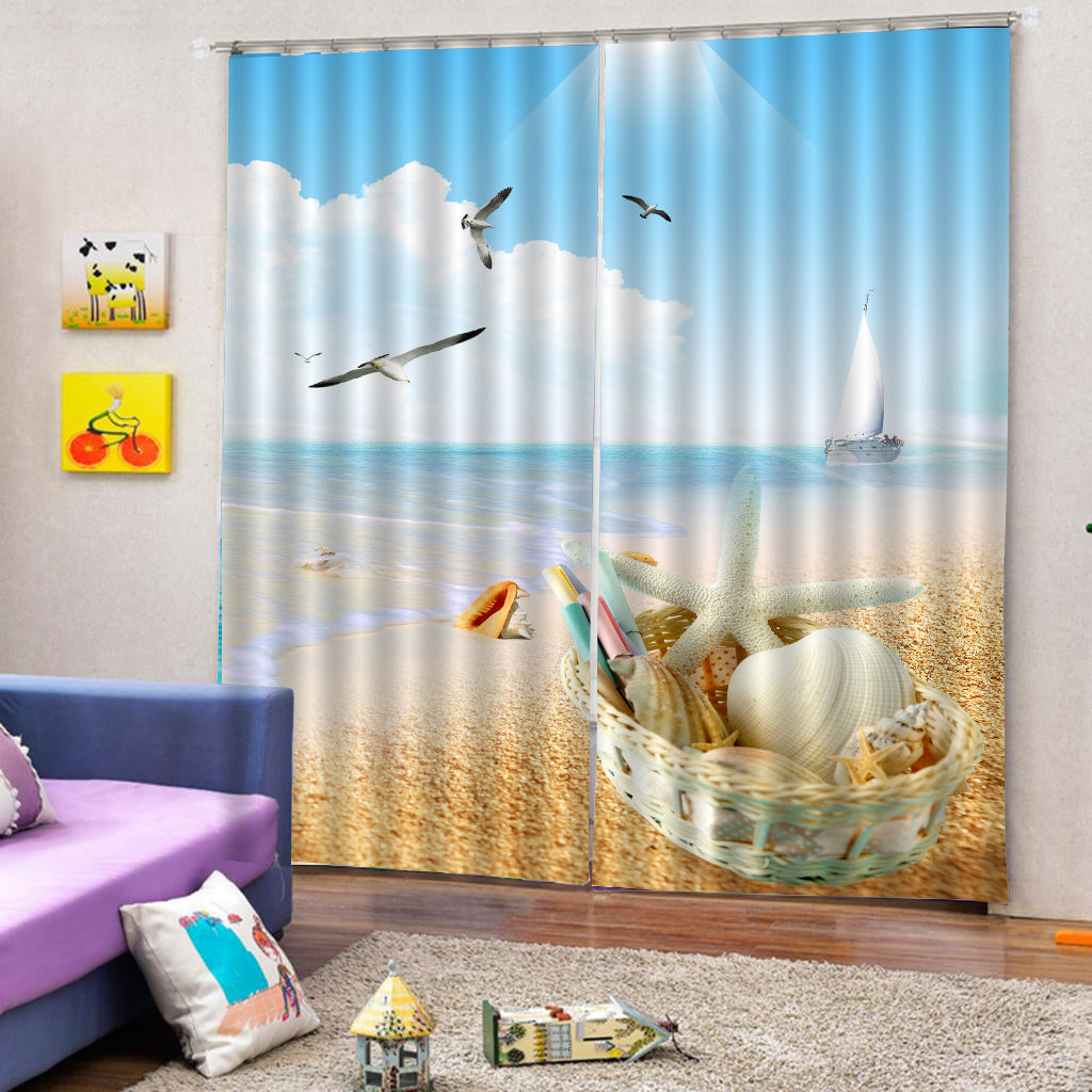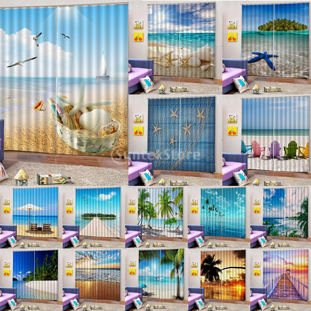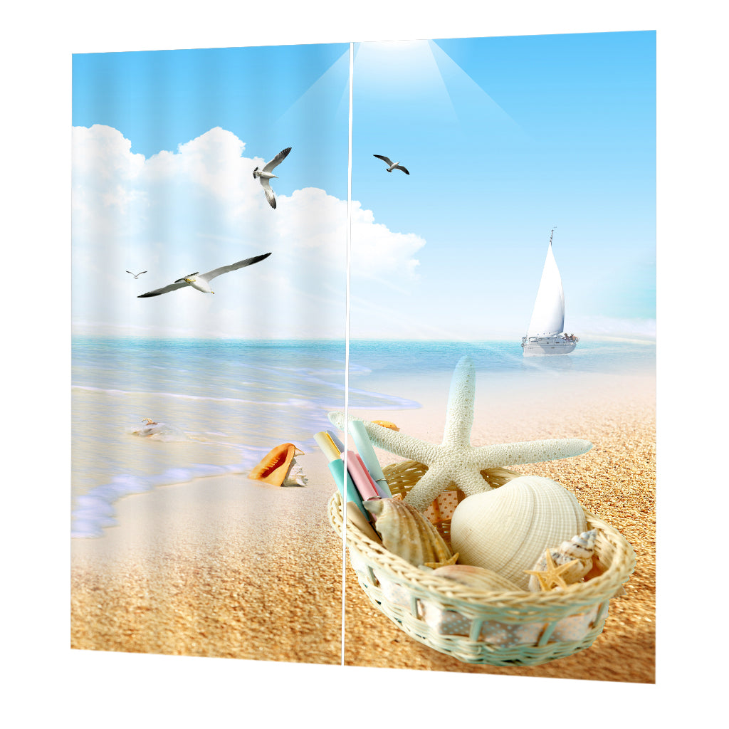Sea scenery printed window curtain - blackout curtains for home elegant comfort.