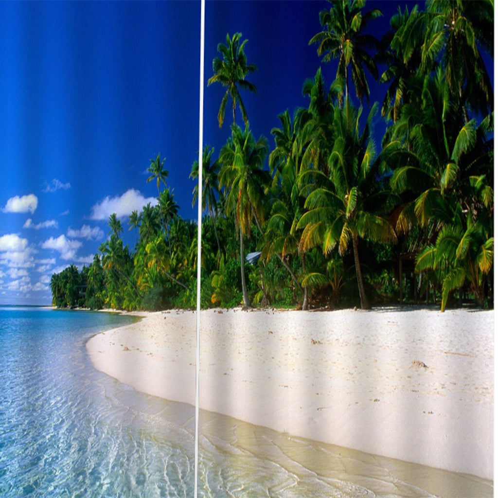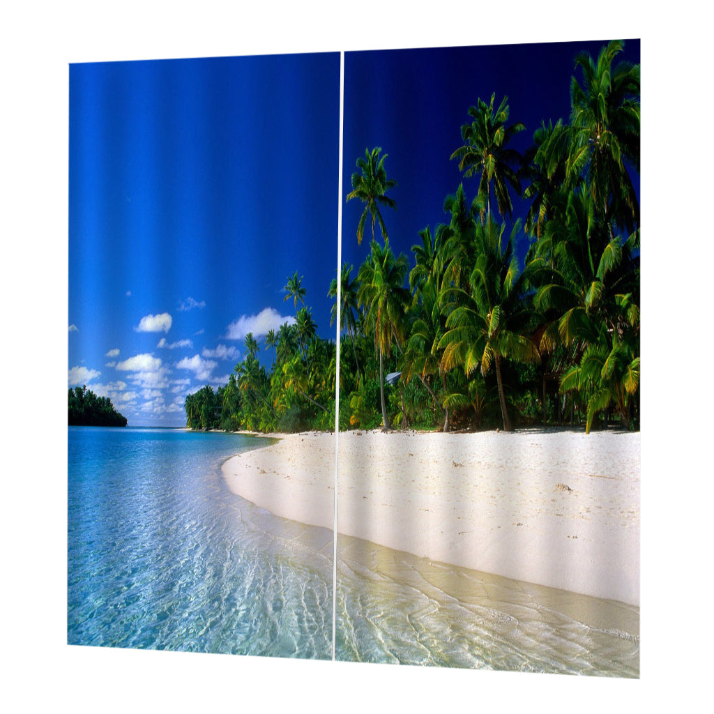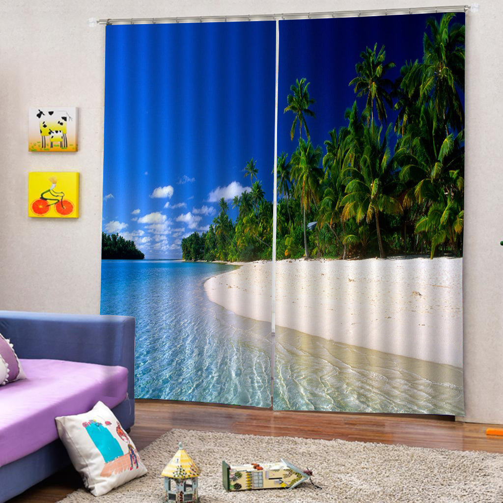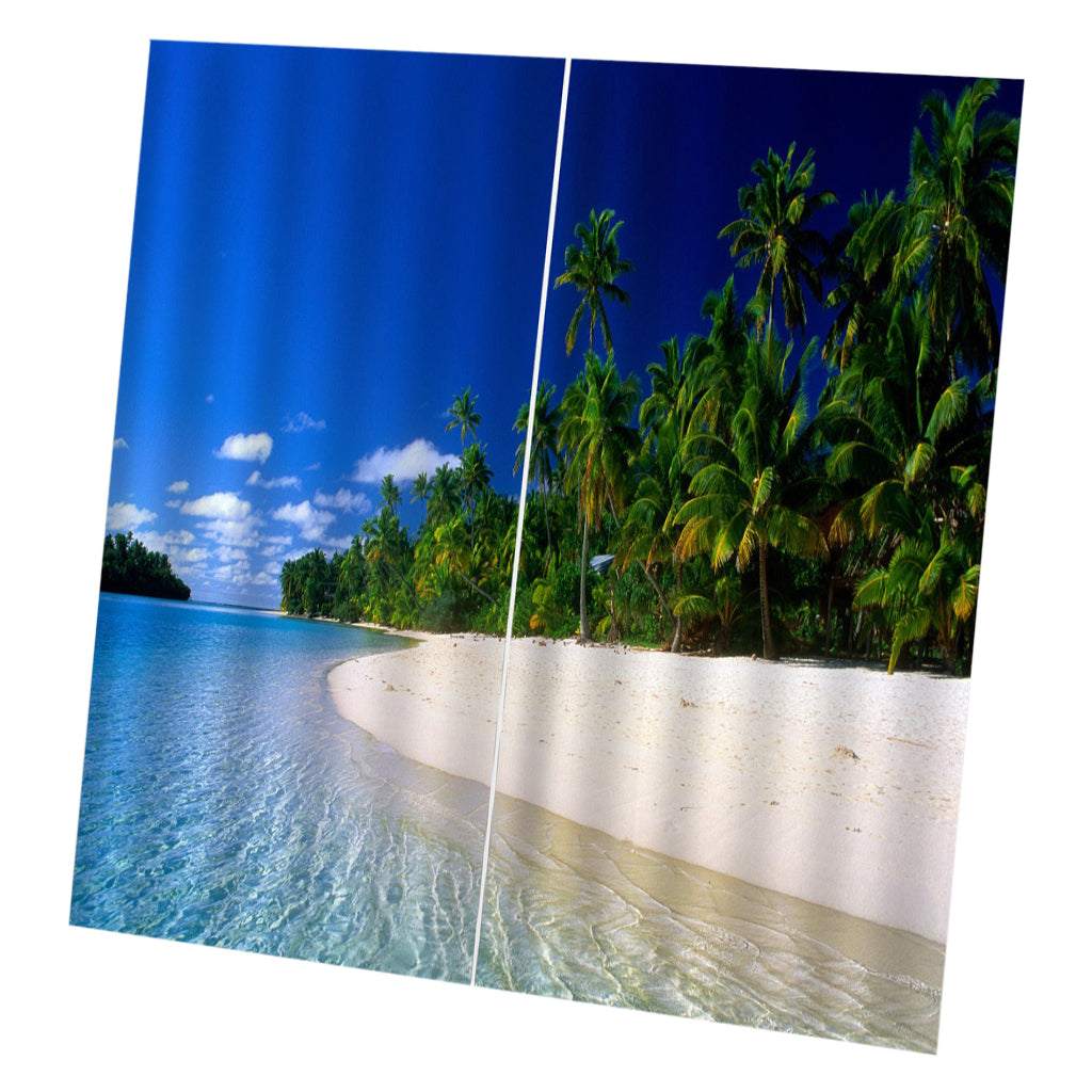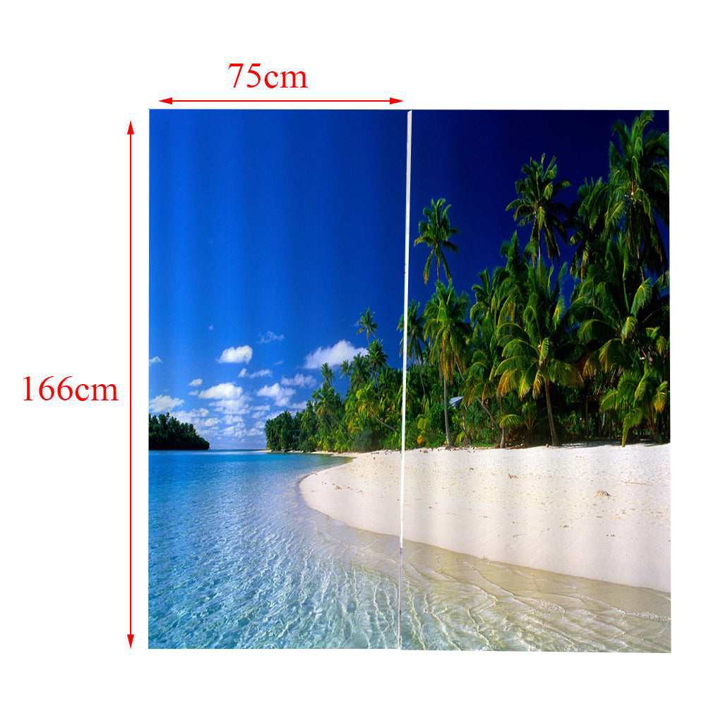 2 Panels Digital Printing Blackout 3D Curtains Window Seaside