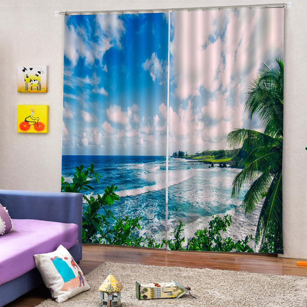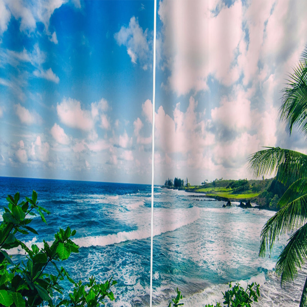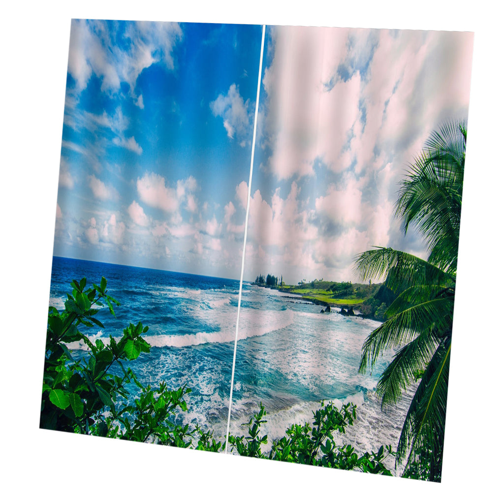 2 Panels Digital Printing Blackout 3D Curtains Window Sky and Sea
