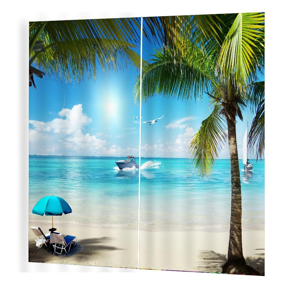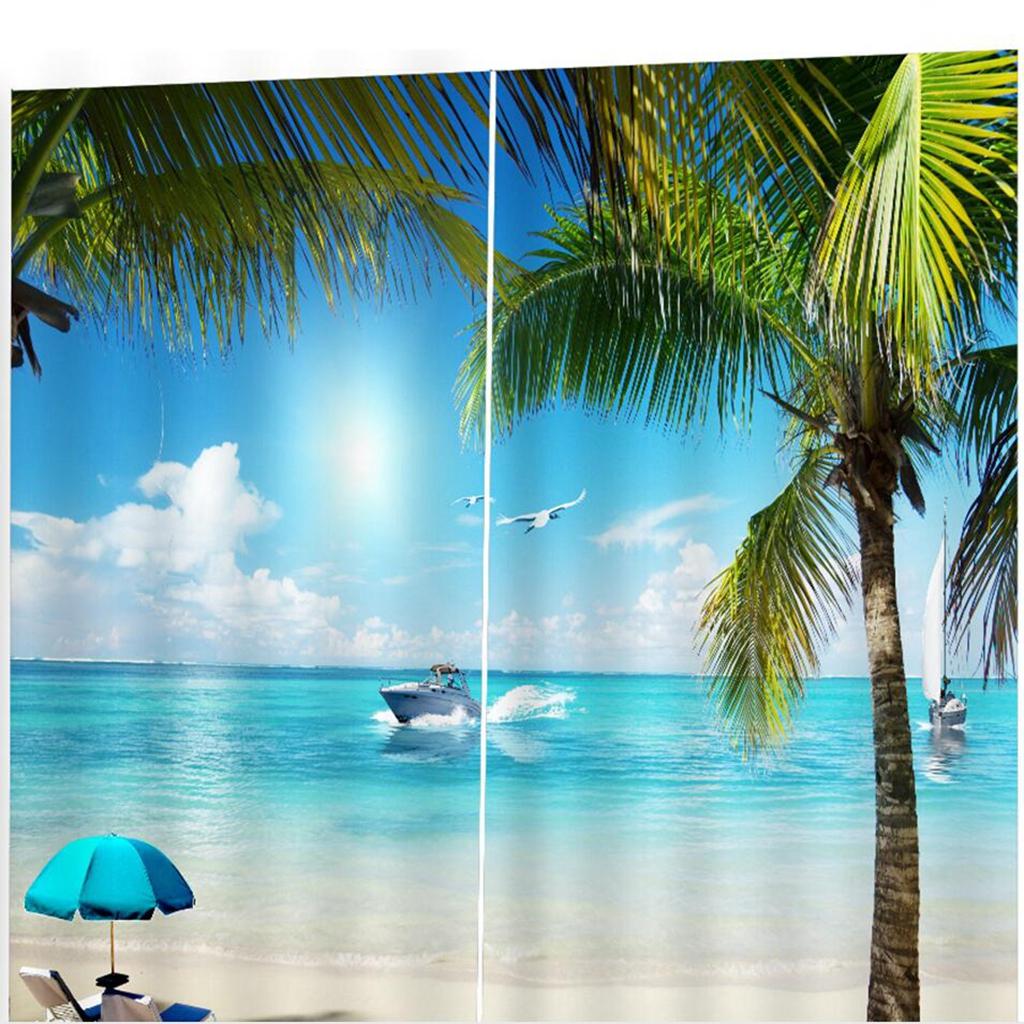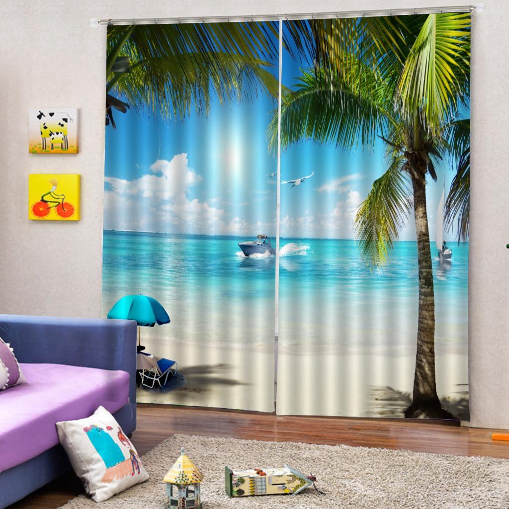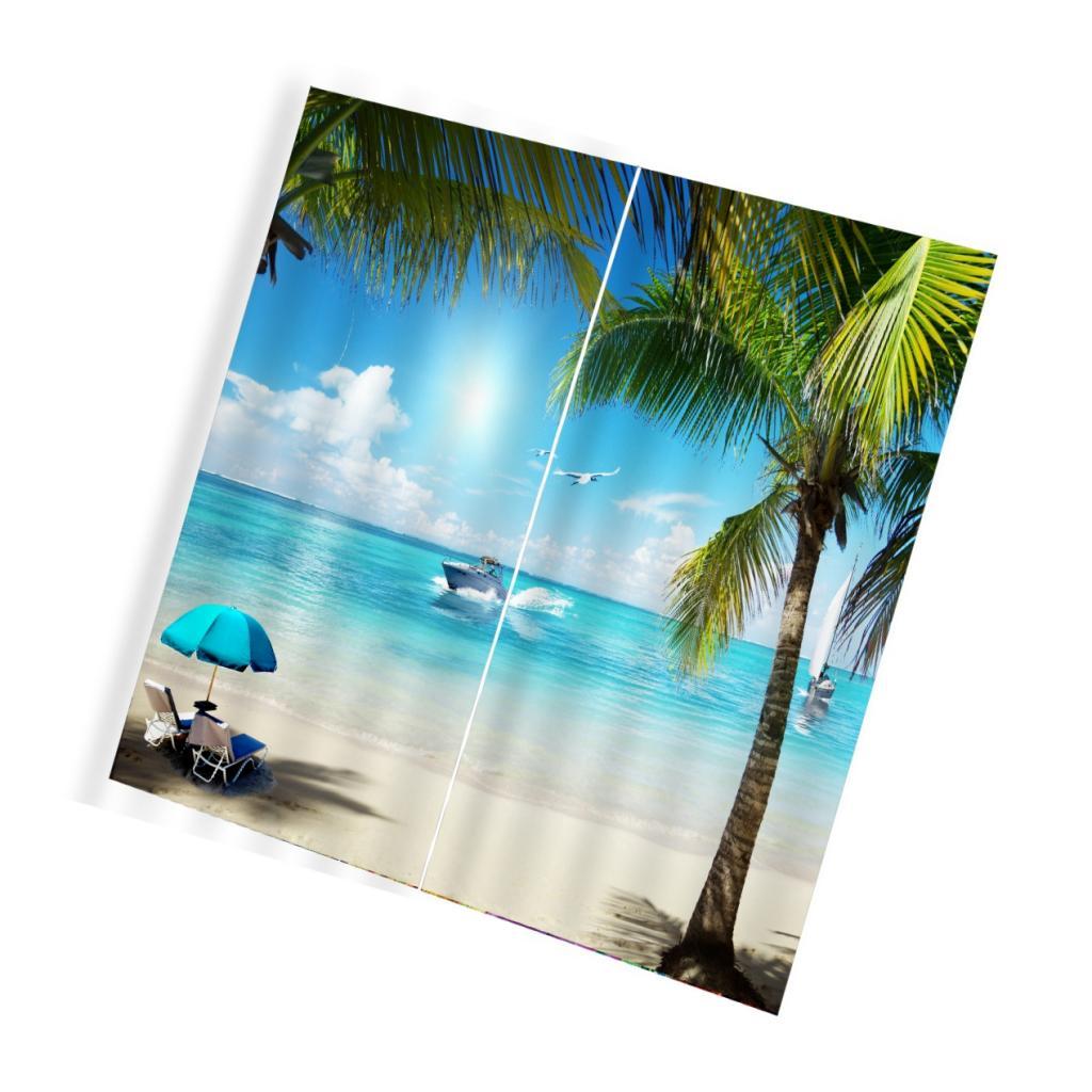 Sea scenery printed window curtain - blackout curtains for home elegant comfort.
