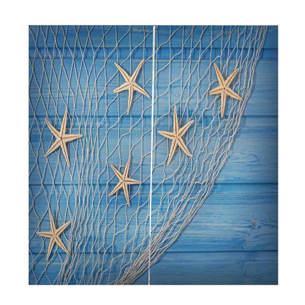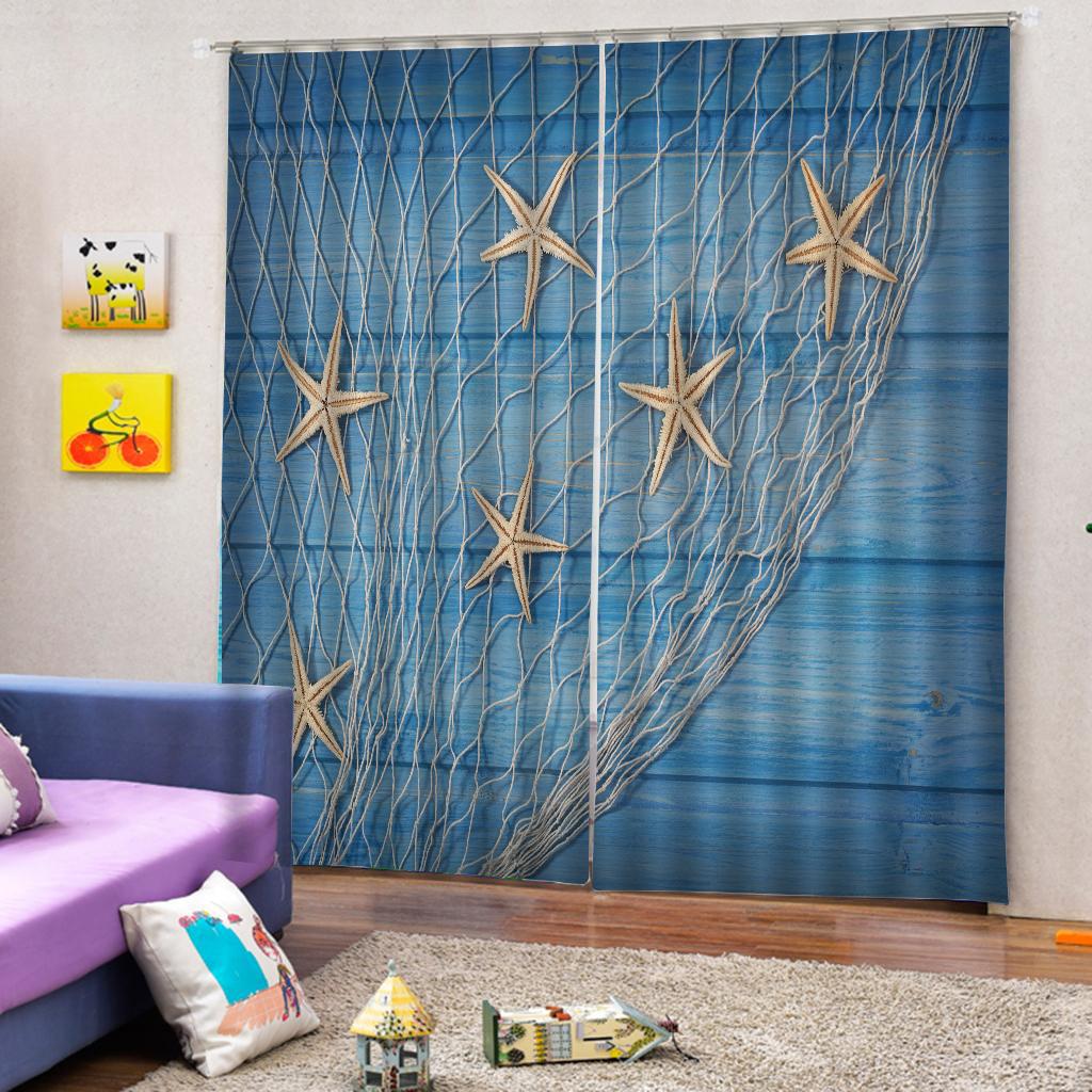 2 Panels Digital Printing Blackout 3D Curtains Window Starfish Net