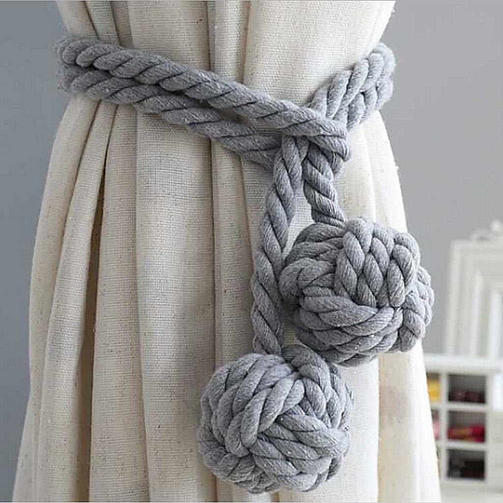 2 Piece Curtain Rope Tie Backs Ball Tiebacks Holdbacks Decor Gray